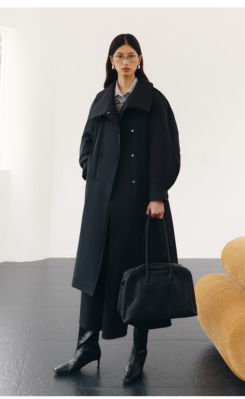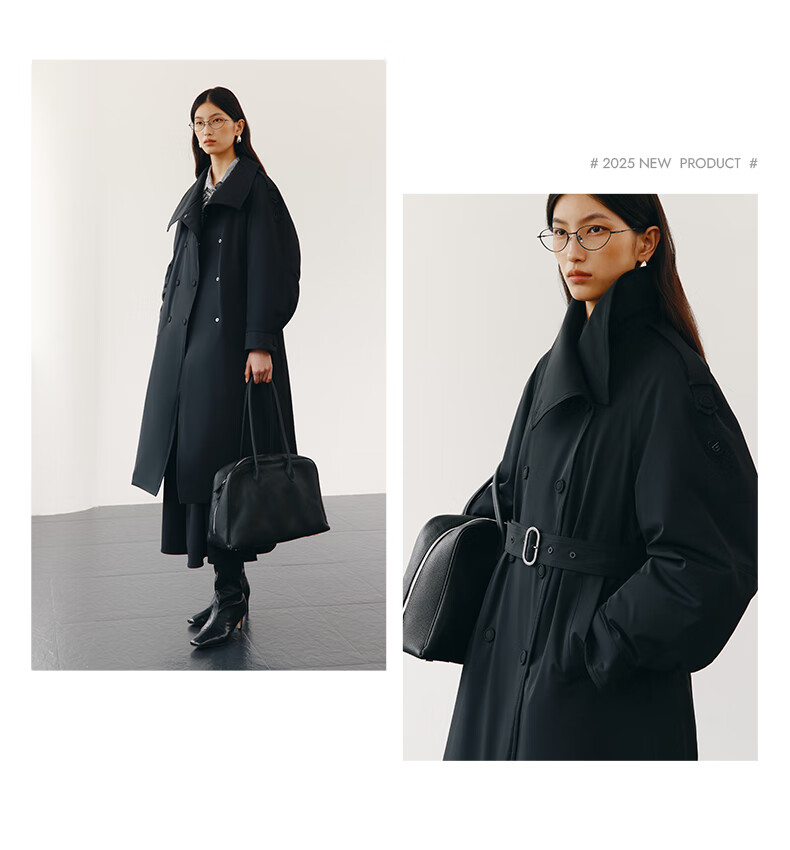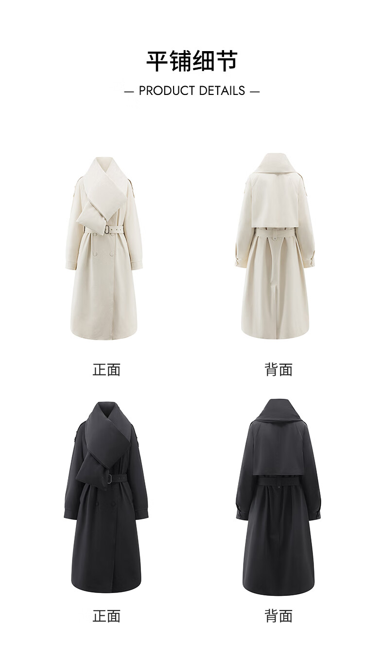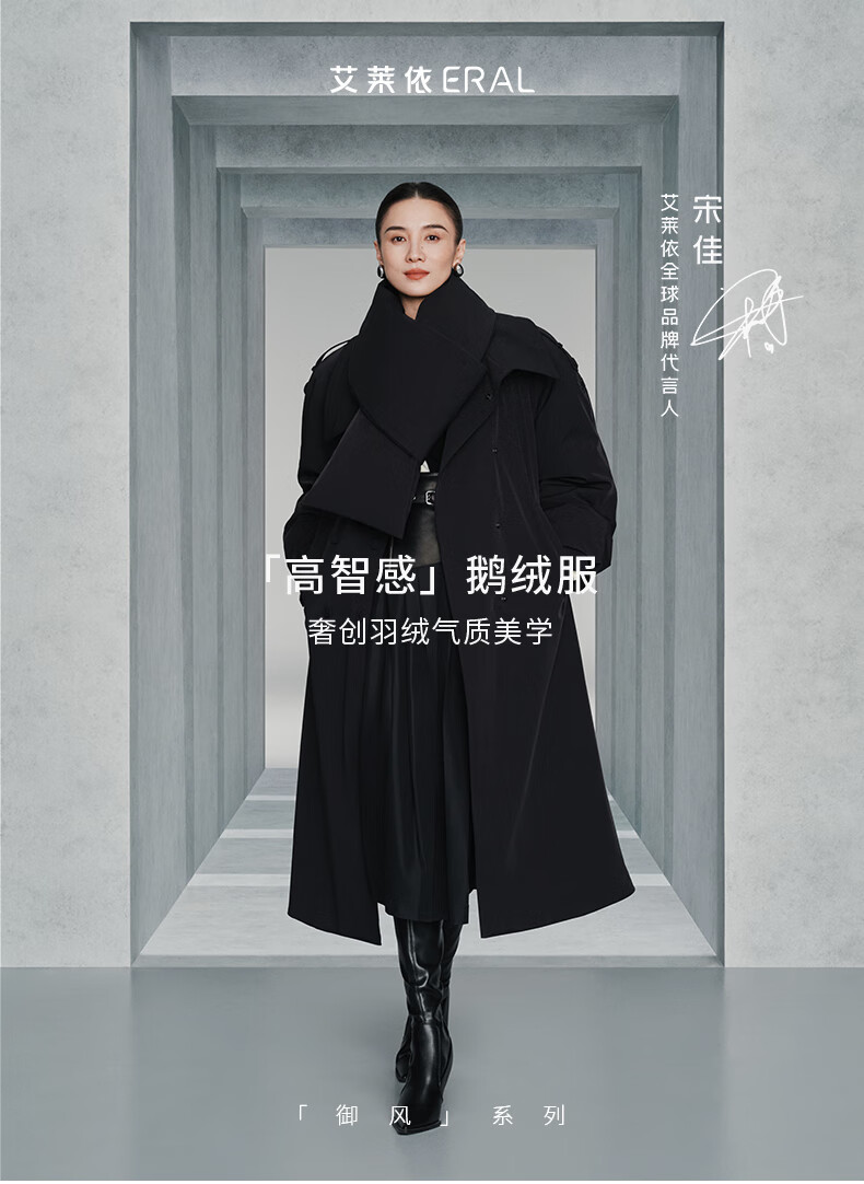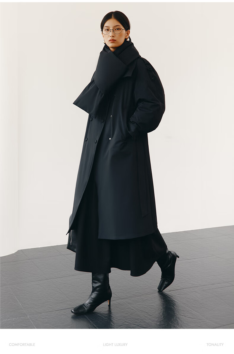 Ai Lai Song Jia same style goose down jacket for women 2025 fashion temperament windbreaker removable scarf long coat carbon black M
