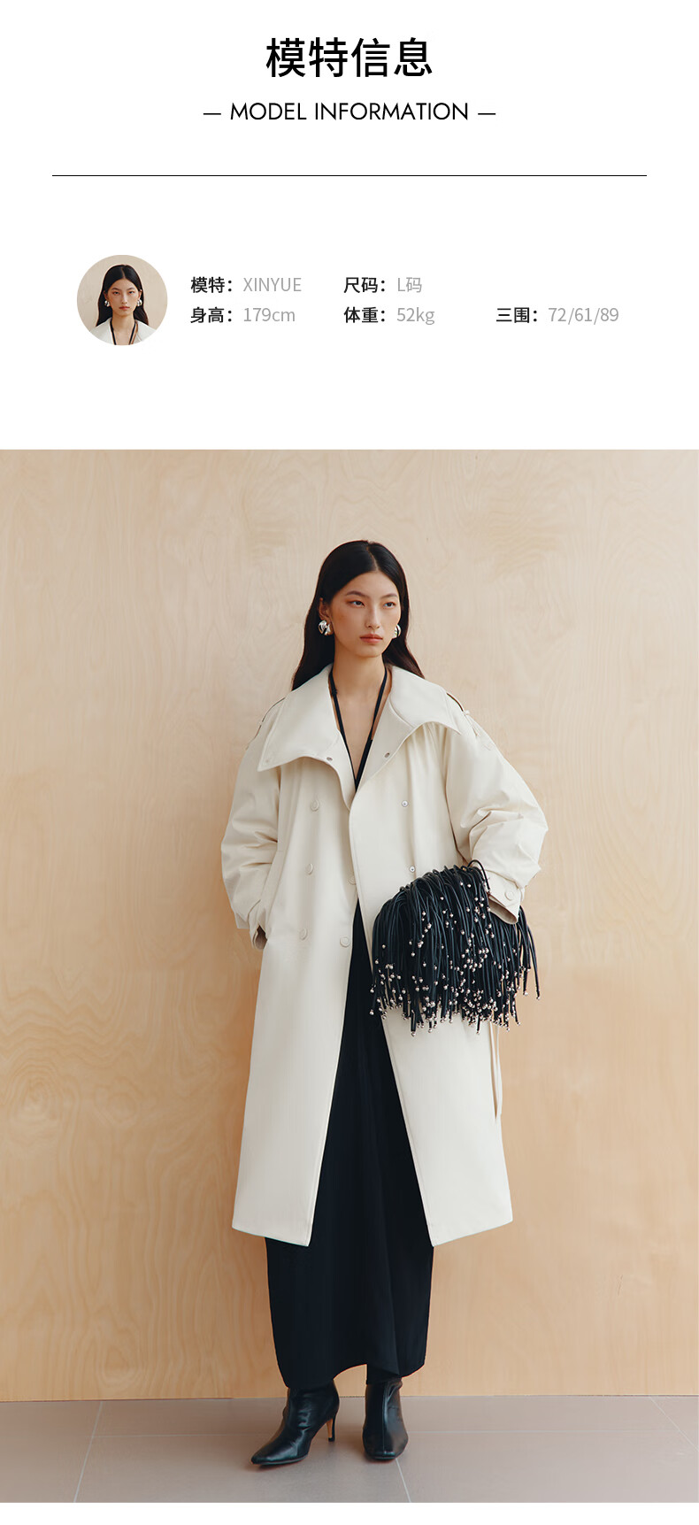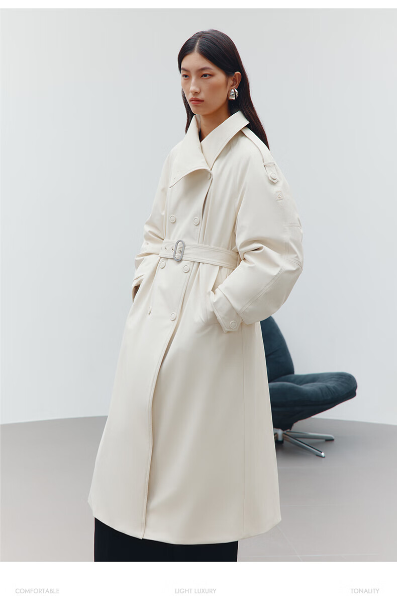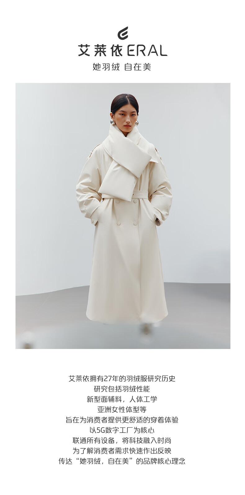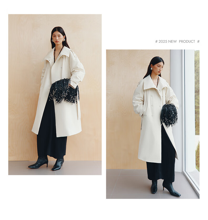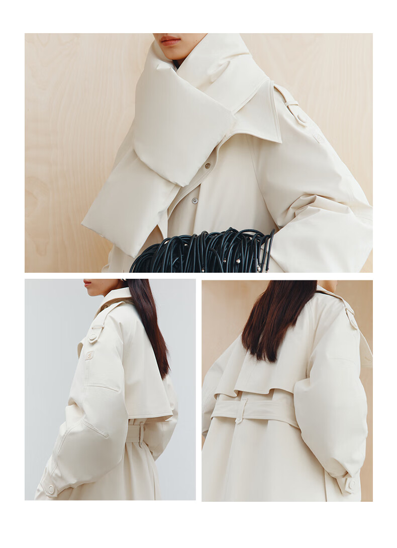 Ai Lai Song Jia same style goose down jacket for women 2025 fashion temperament windbreaker removable scarf long coat carbon black M