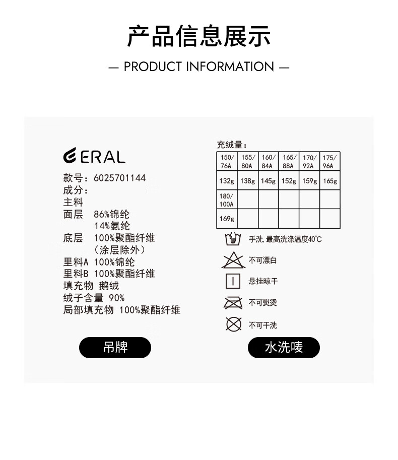 China (cm) 165 / 88-90 170 / 96-98 175 / 108-110 180 / 118-122 185 / 126-130