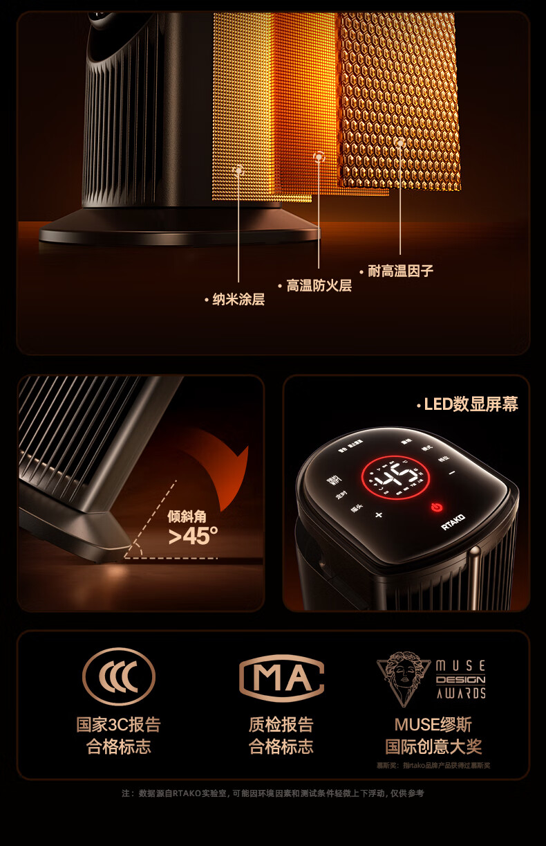 Rtako hot-selling 1 million + large-scale heater graphene heater electric heater bathroom household whole house heating 50 square meters power saving large area fast heating and cooling