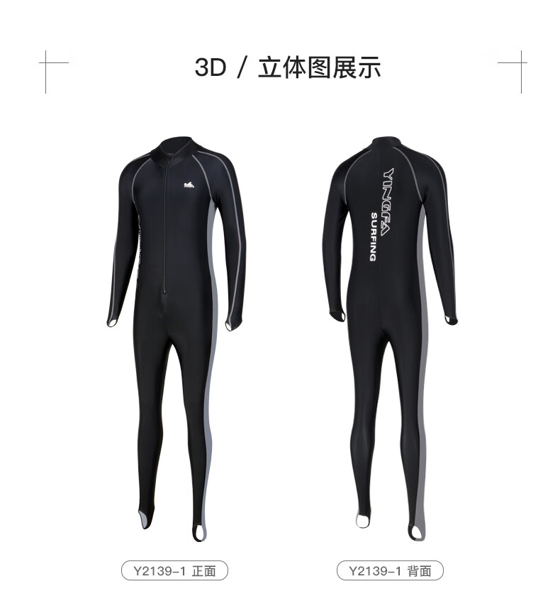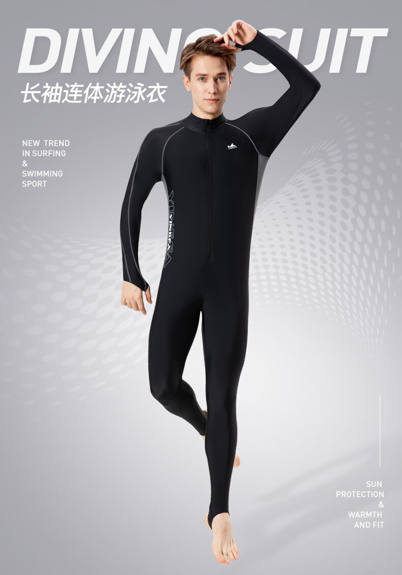 YINGFA swimsuit men's one-piece long-sleeved trousers sun protection warm surfing wetsuit seaside outdoor working swimming jellyfish suit black/grey XL (170-175cm/60-70kg)