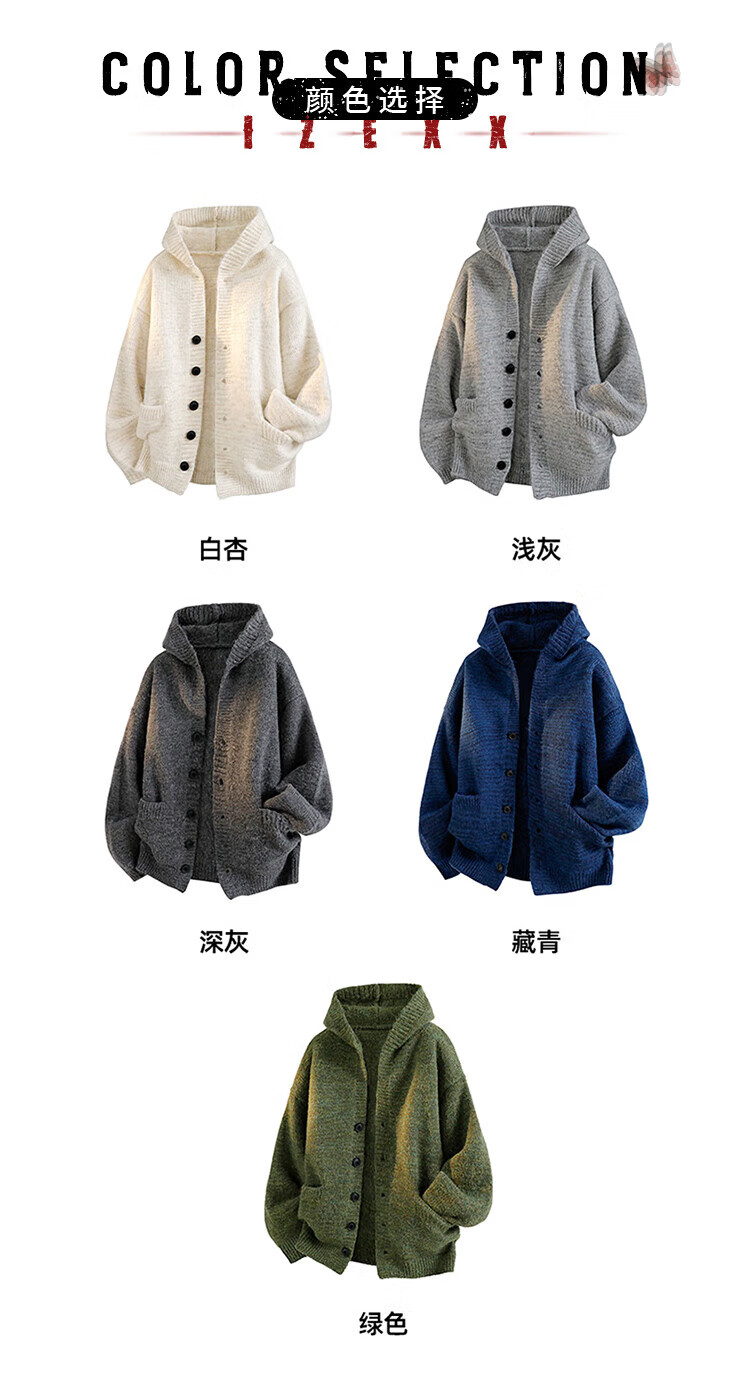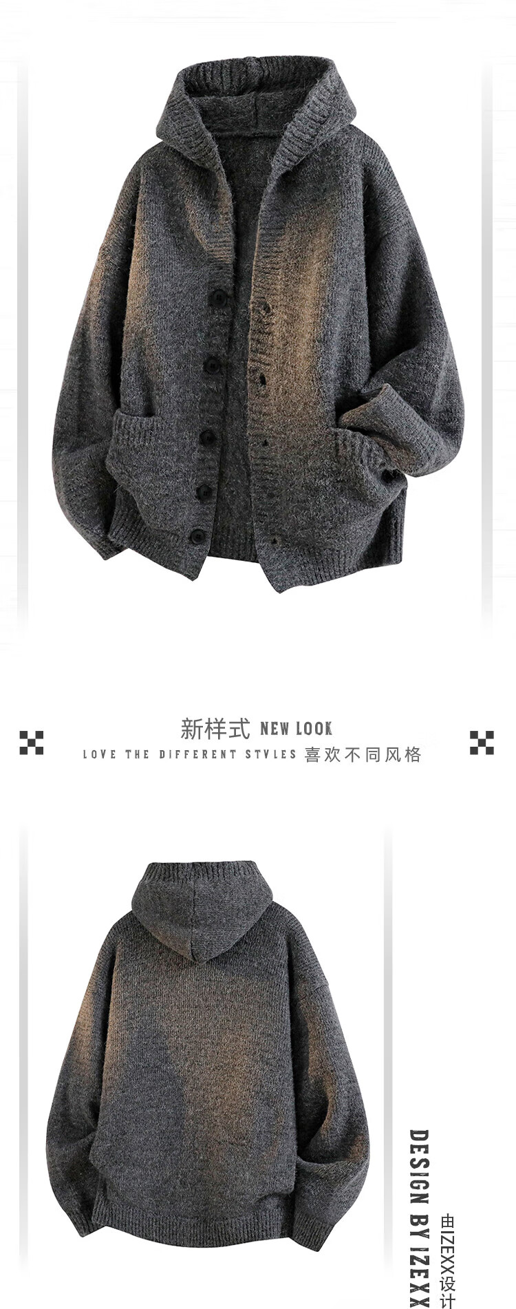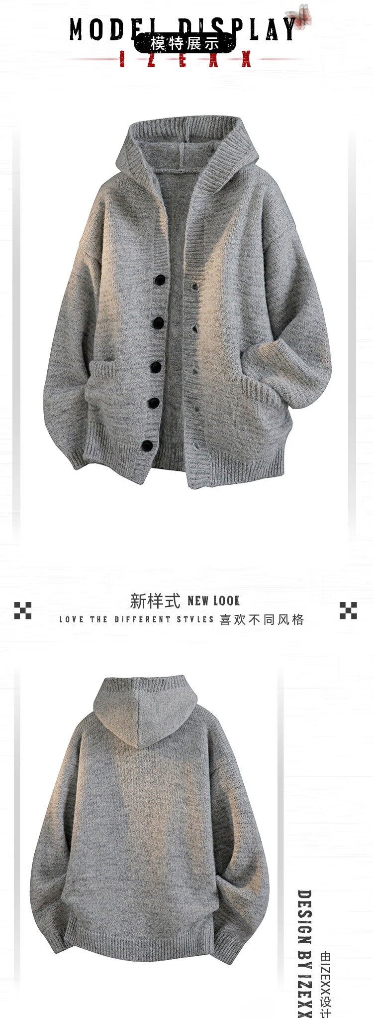 IZEXX high-end cardigan jacket men's autumn lazy style loose versatile hooded sweater sweater ZN97 dark gray 2XL