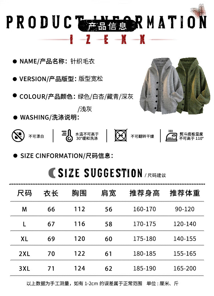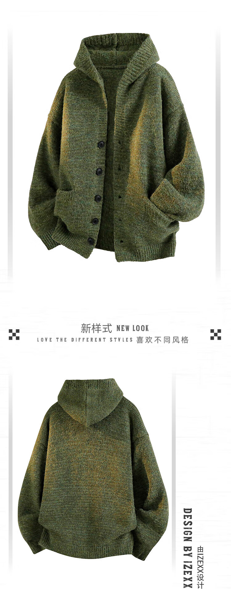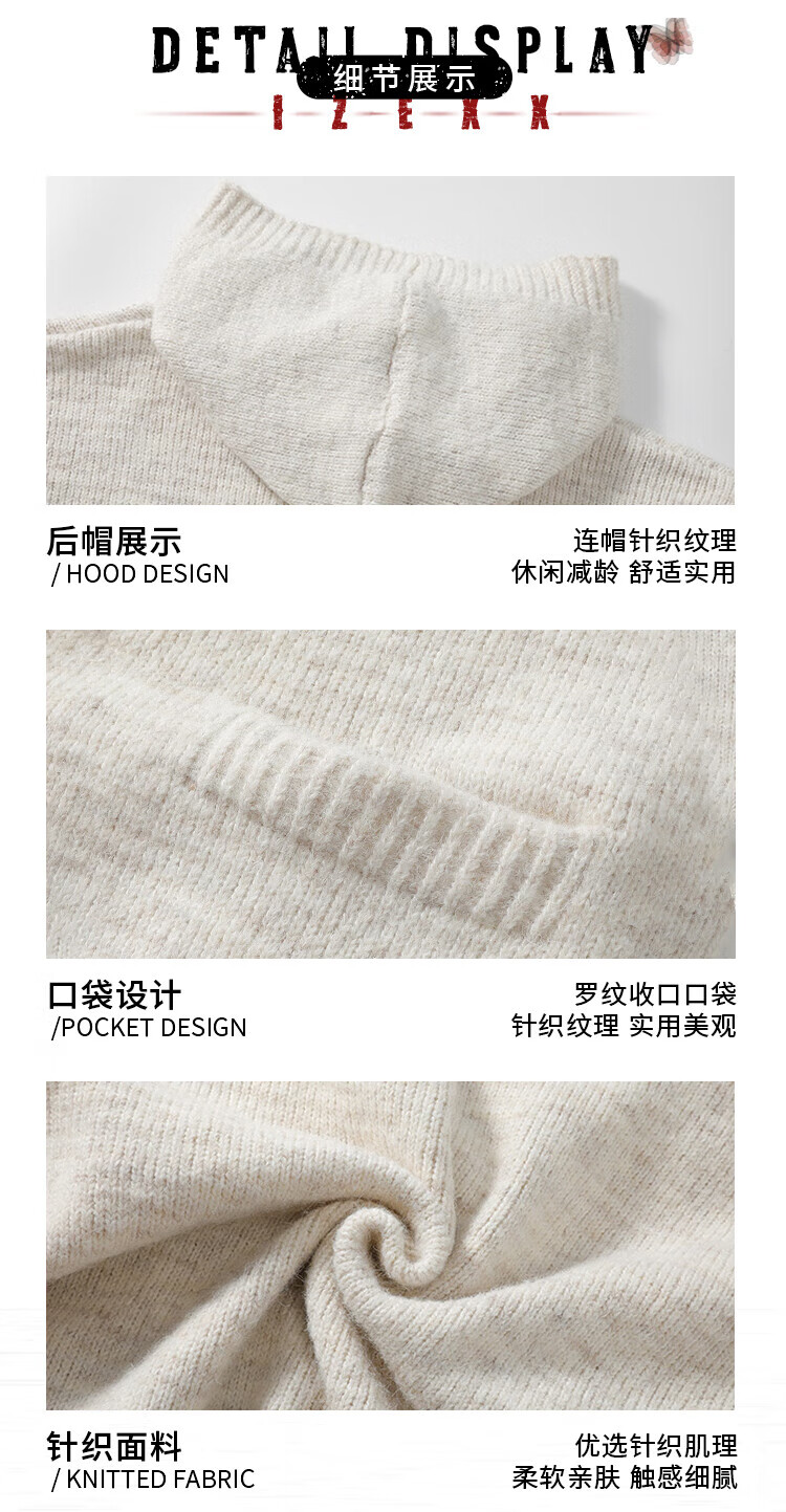 IZEXX high-end cardigan jacket men's autumn lazy style loose versatile hooded sweater sweater ZN97 dark gray 2XL