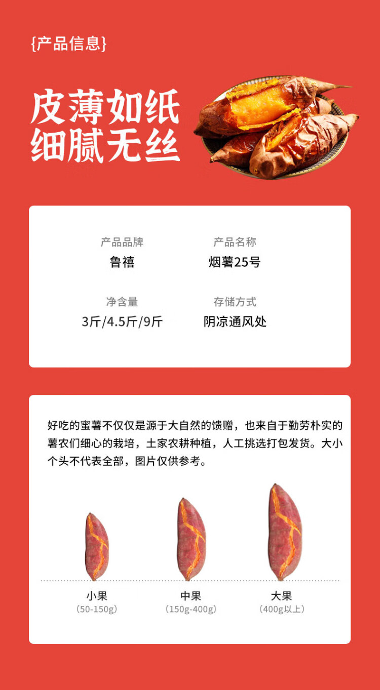 Luxi Coast Authentic Shandong Tobacco Potato No. 25 Super Sweet Sweet Potato Candied Tobacco Potato Fresh Sweet Potato Sweet Potato Baked Potato Straight from the Source Selected Medium Fruit Net Weight 4.5 Jin Jin equals 0.5 kg Single fruit 3-8 taels