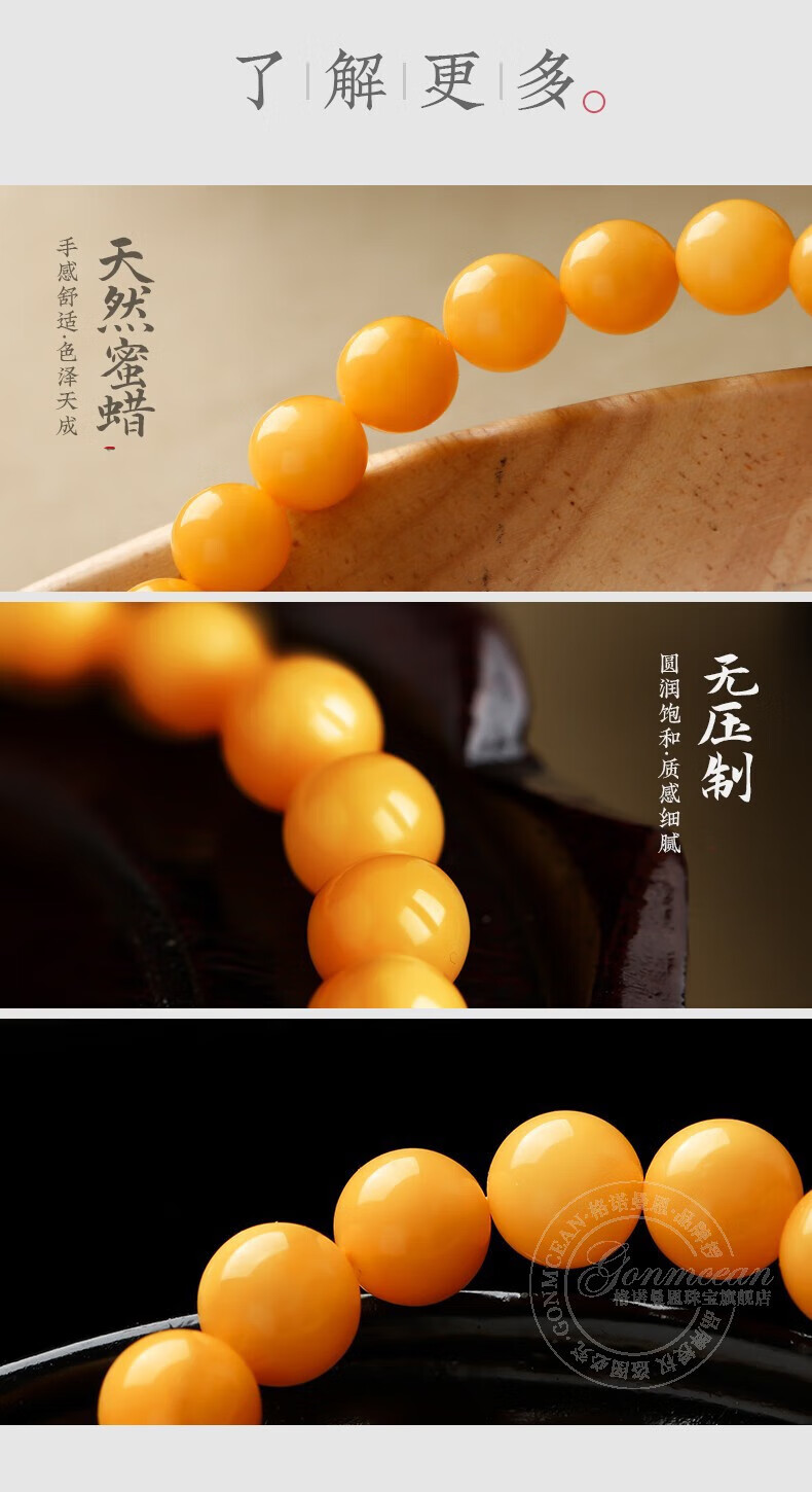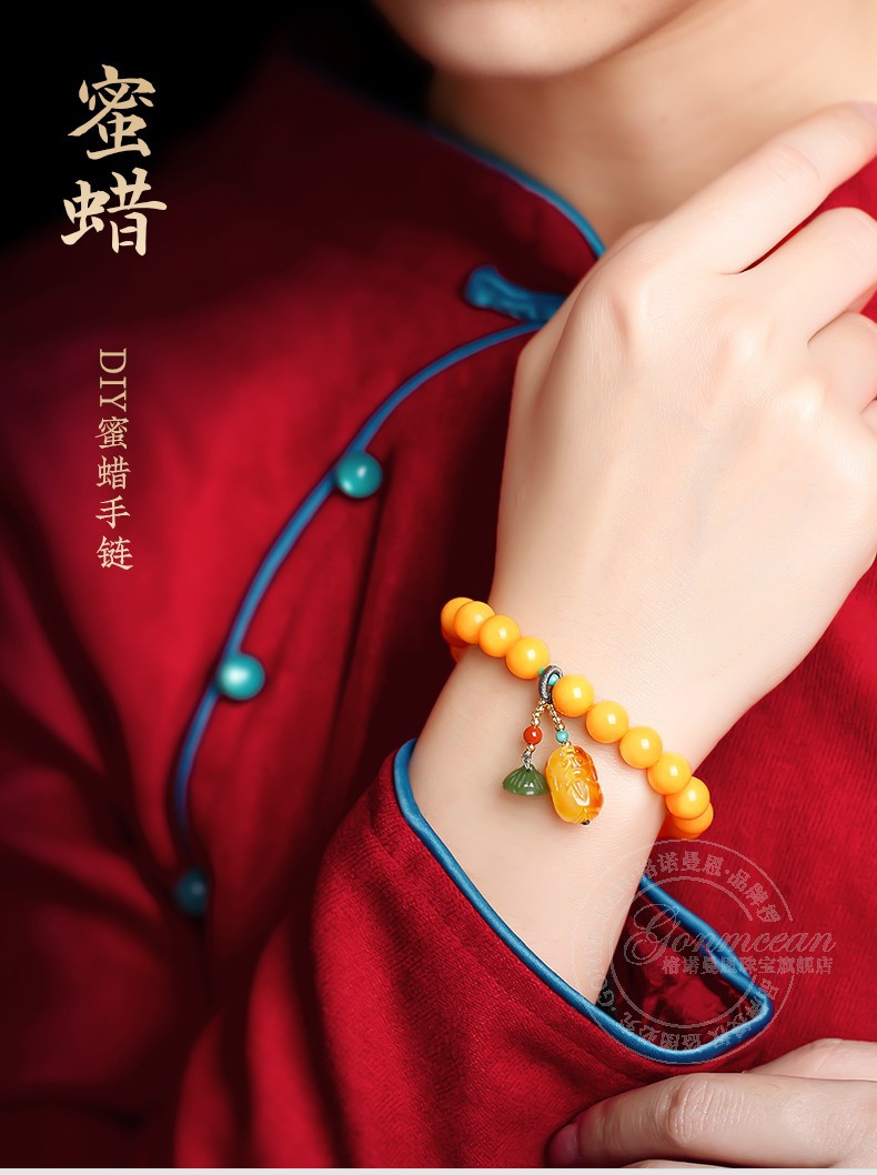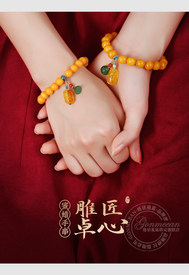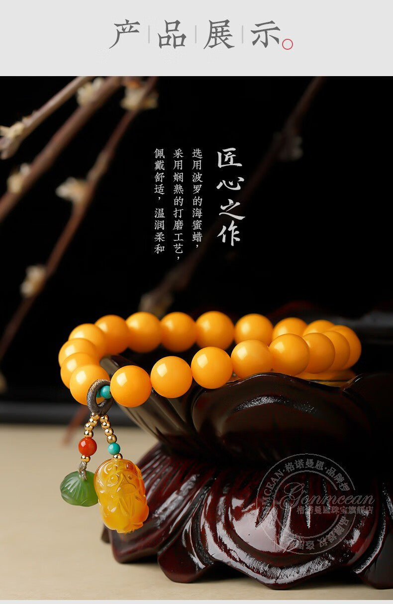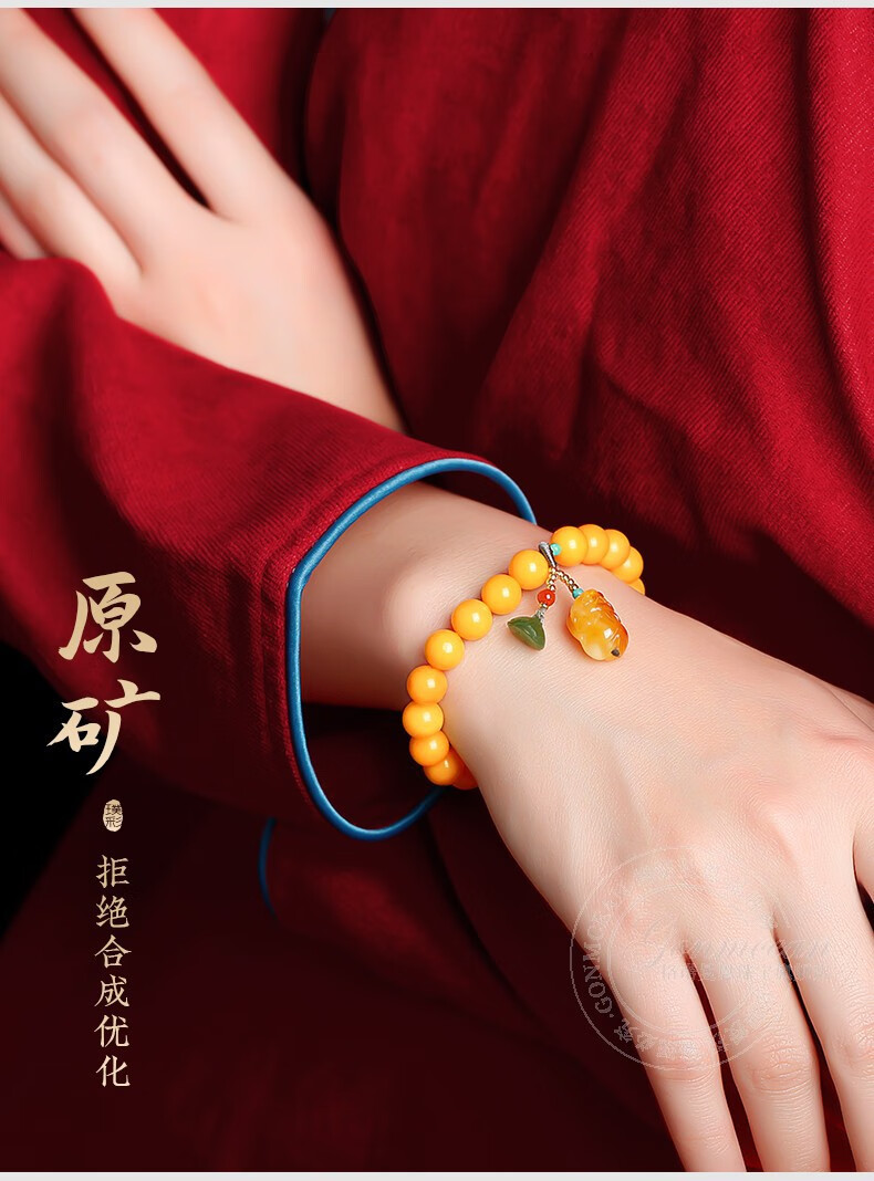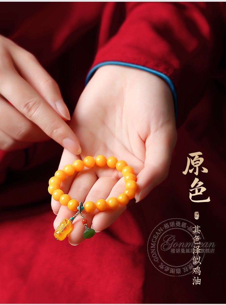 GONMCEAN amber beeswax chicken fat yellow round beads single circle multi-treasure bracelet Pixiu accessories Laomi bracelet women's gift 8.5 mm