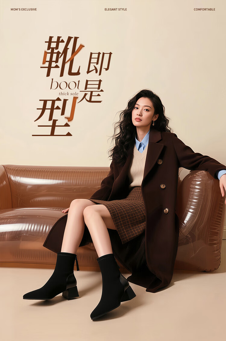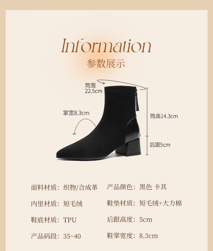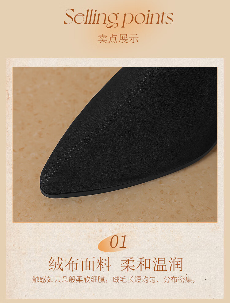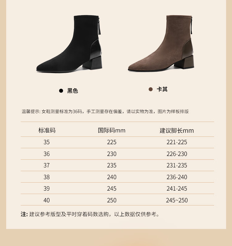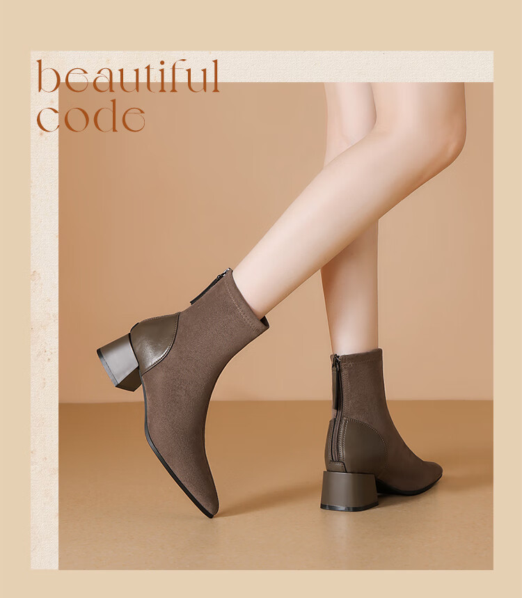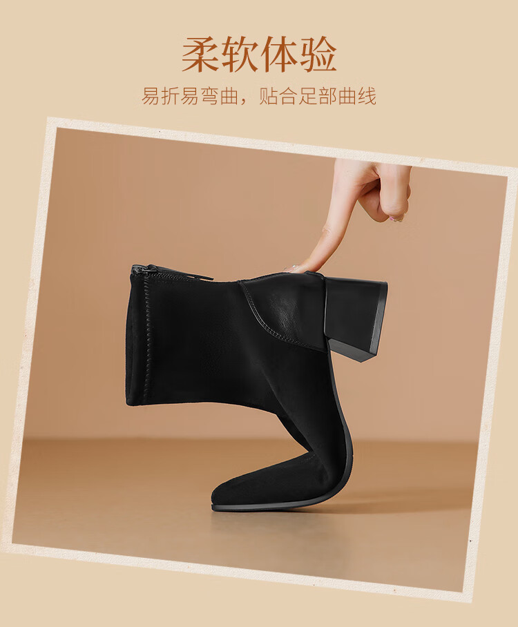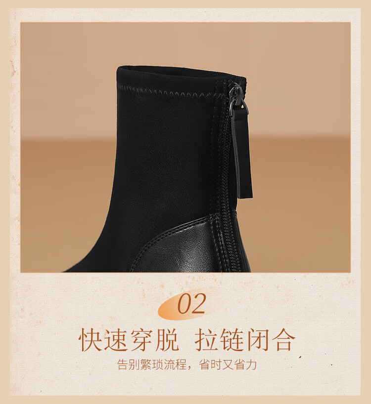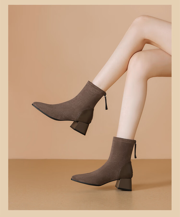 ZHR short boots women's retro thin women's boots winter plus velvet thick high heel suede ankle boots pointed toe elastic boots BL652A black 38