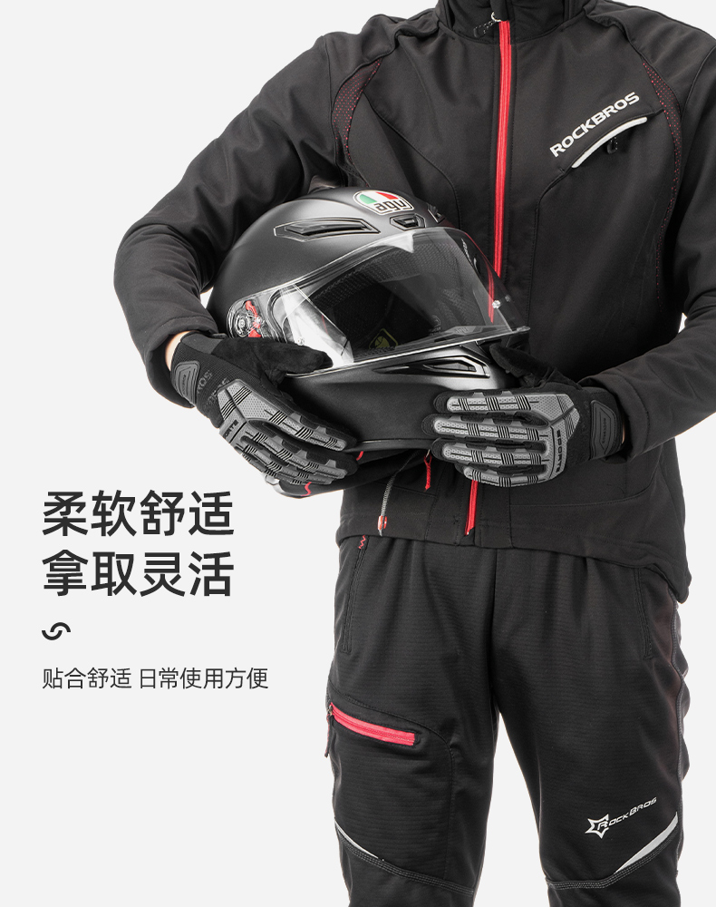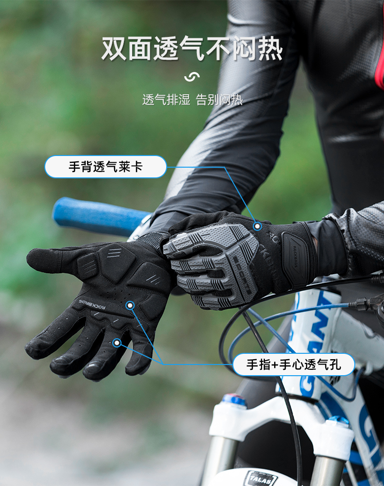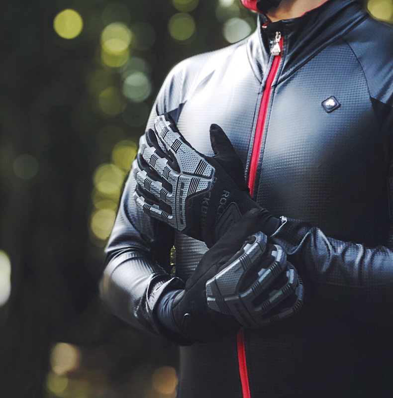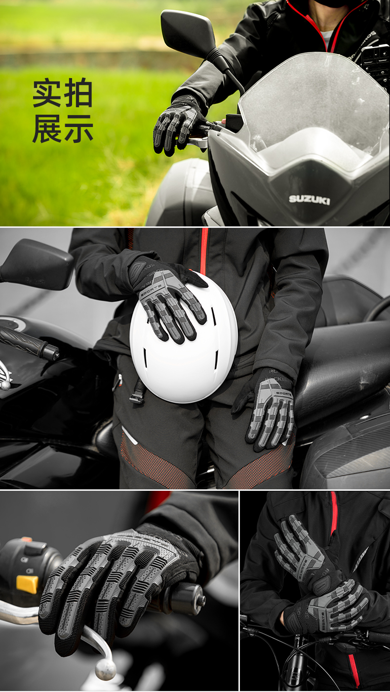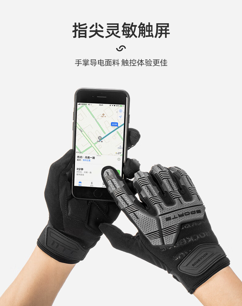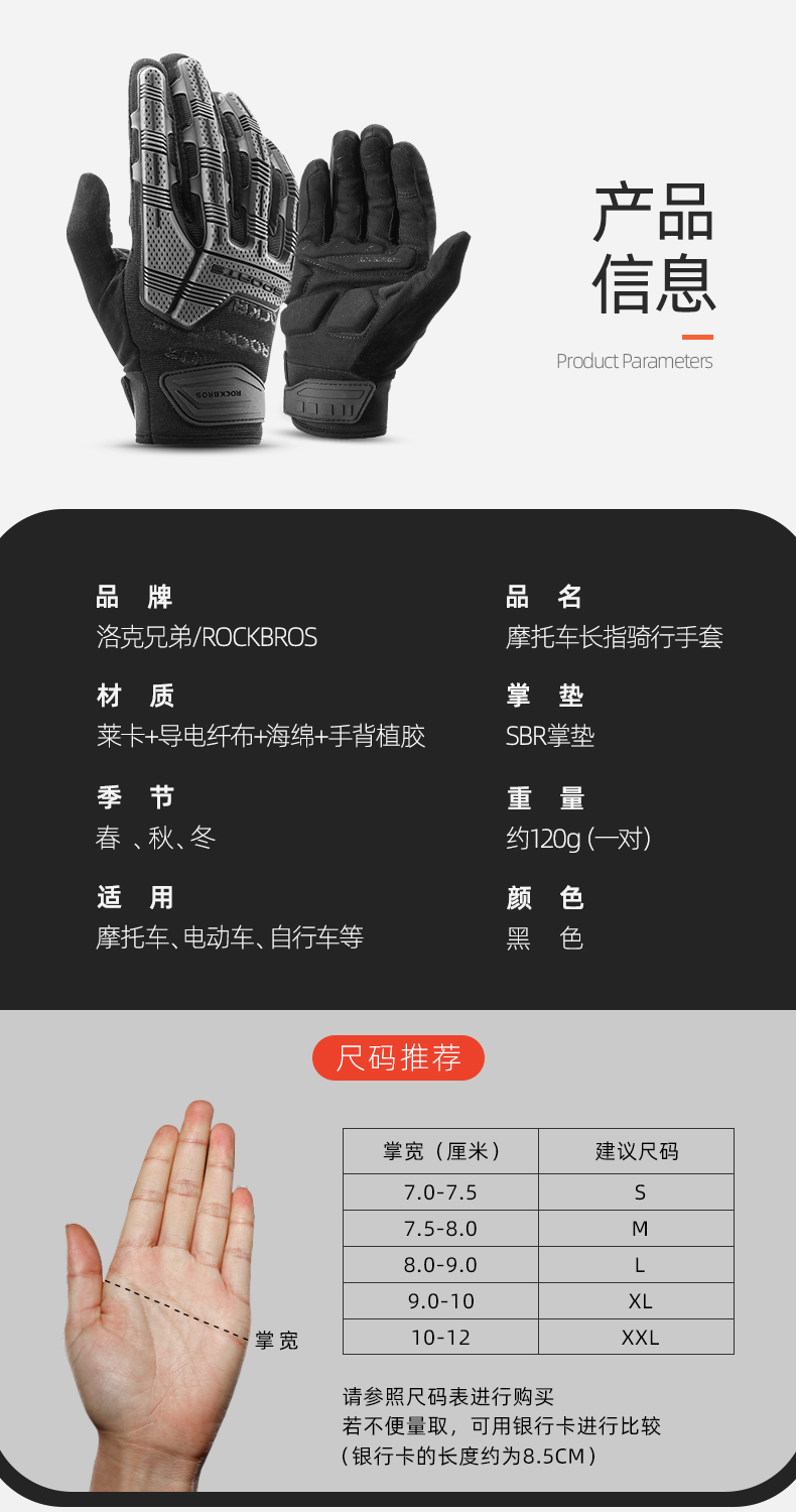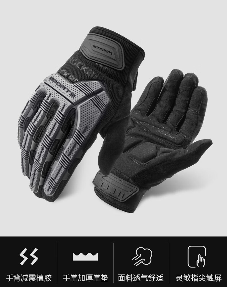 ROCKBROS Cycling Gloves Motorcycle Bike Electric Motorcycle Long Finger Men's Silicone Warm Spring and Autumn Winter Rider Equipment Black Spring and Autumn (Fingertip Touch Screen/SBR Palm Rest/Back Elastic Glue) XL