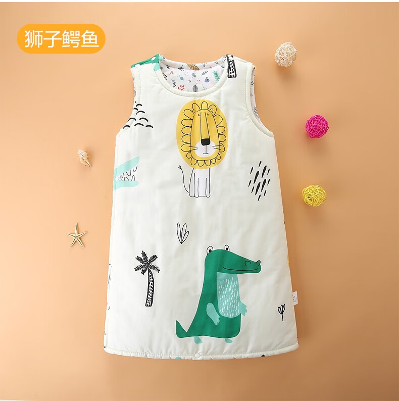 Lumiko Baby Sleeping Bag Pure Cotton Autumn and Winter Thick Anti-Kick Quilt for Medium and Large Children Baby Vest Split-leg Pajamas for All Seasons Lion Crocodile (Back and Front Quilted) Clothes Length 1 Meter Recommended Height 100-120cm