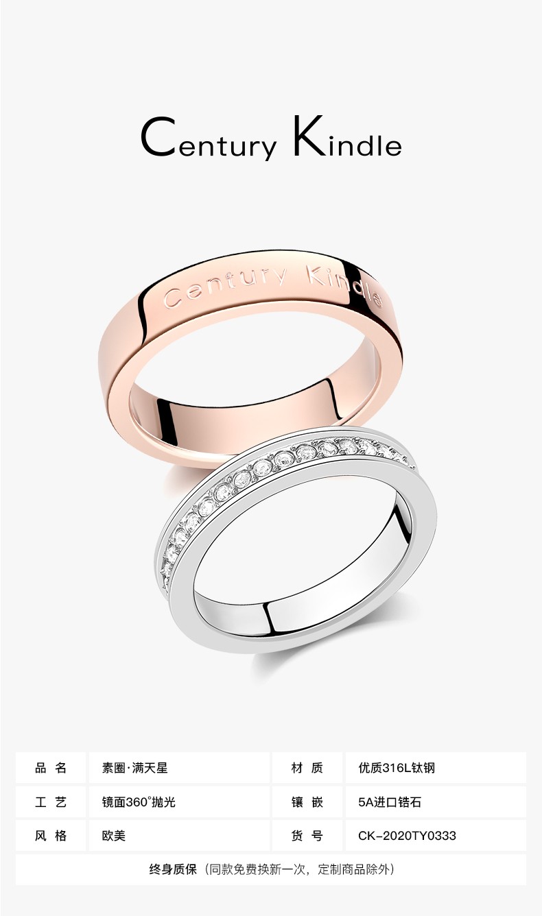 CENTURY& KINDLE baby's breath couple rings, a pair of rings with engraving, niche design, simple, fashionable and trendy birthday gift for girlfriend (rose gold), plain circle + baby's breath, a pair, please note the color and ring number
