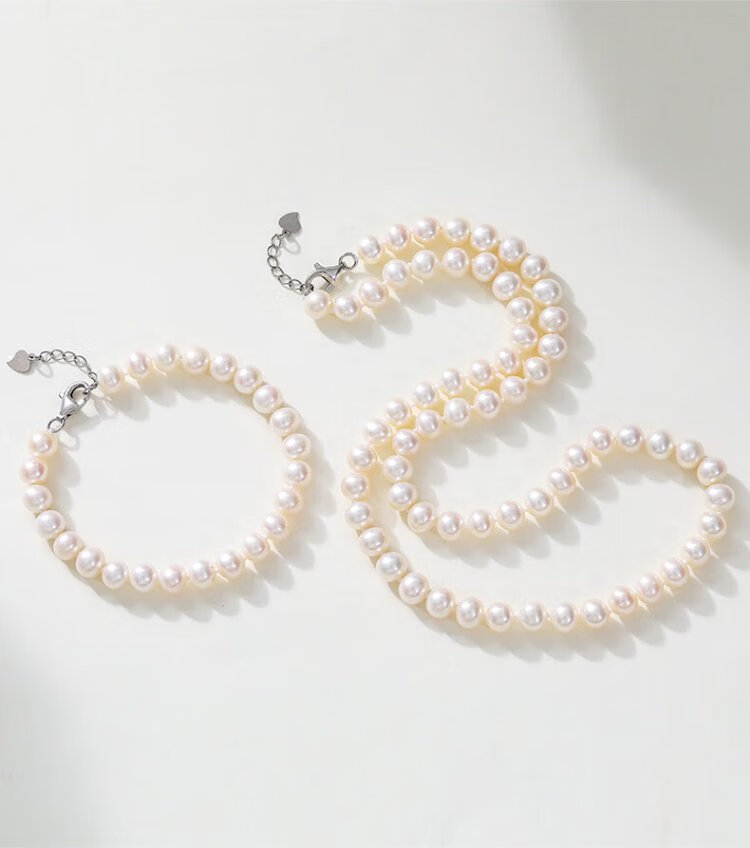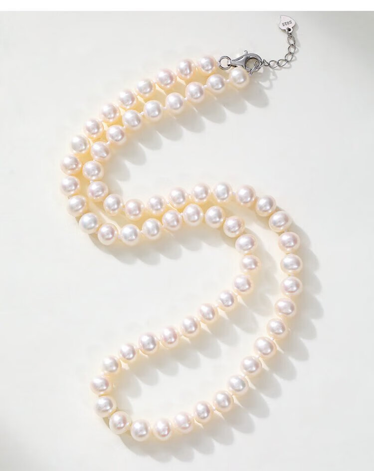 Demi S925 silver seedless freshwater pearl necklace 8.3-9.3mm 45cm round beads birthday gift for wife and mother