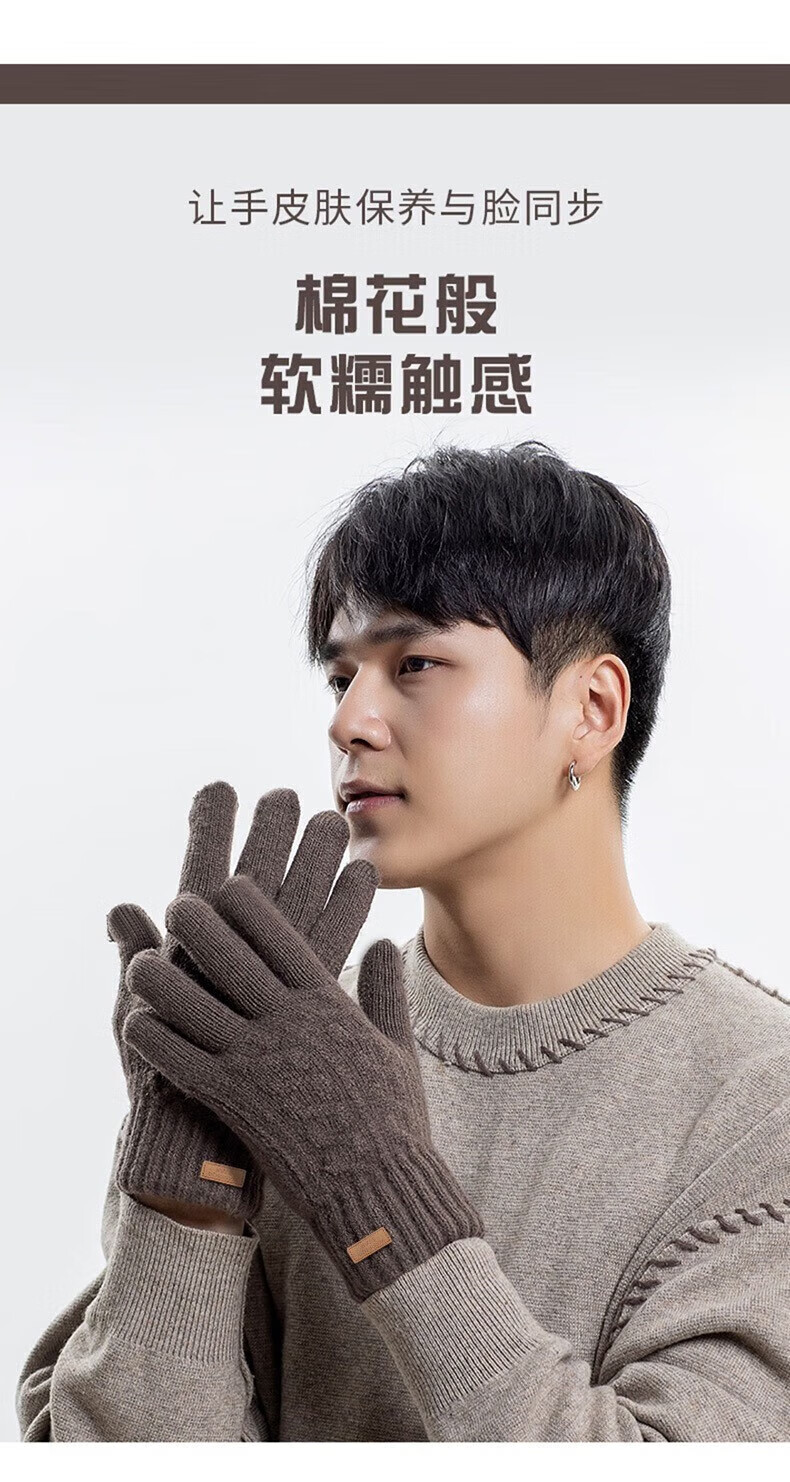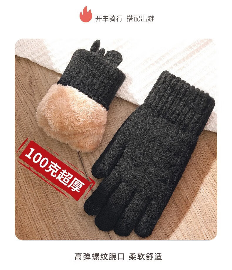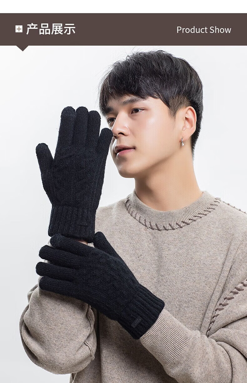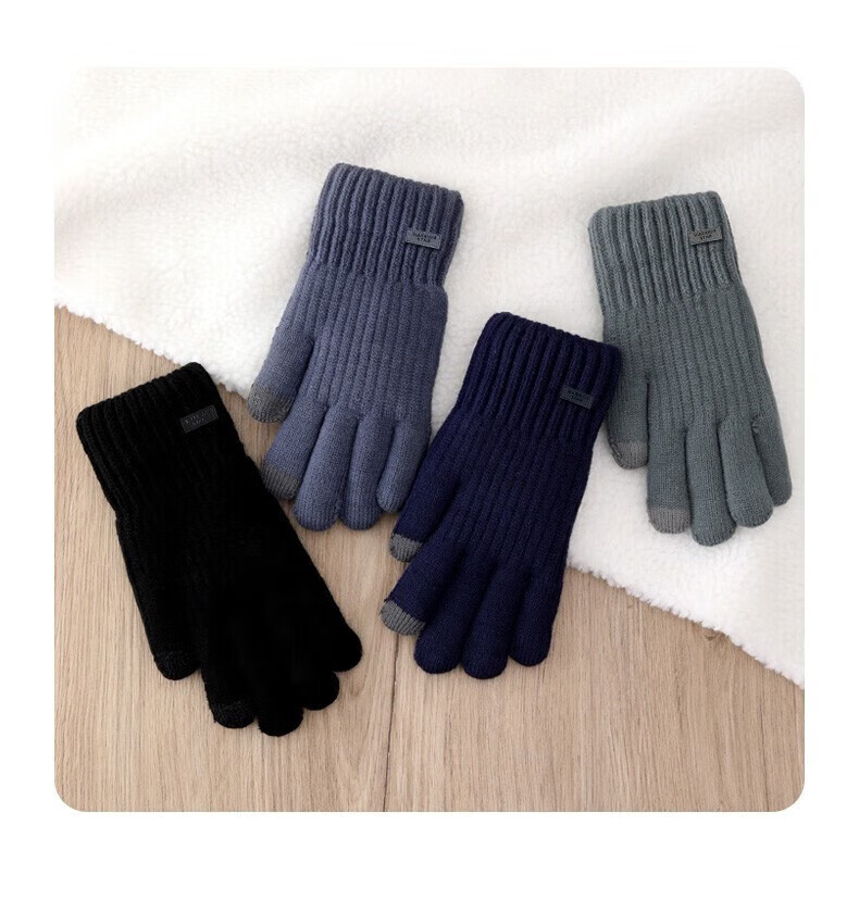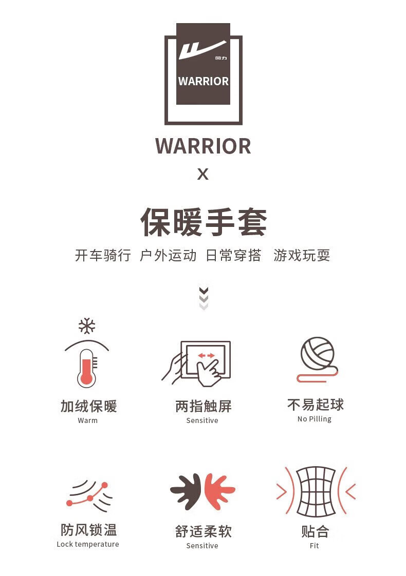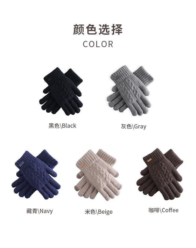 Warrior knitted gloves men's winter cycling wool gloves plus velvet thickened warm gloves women's cold wind touch screen driving cotton