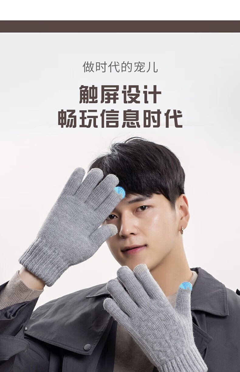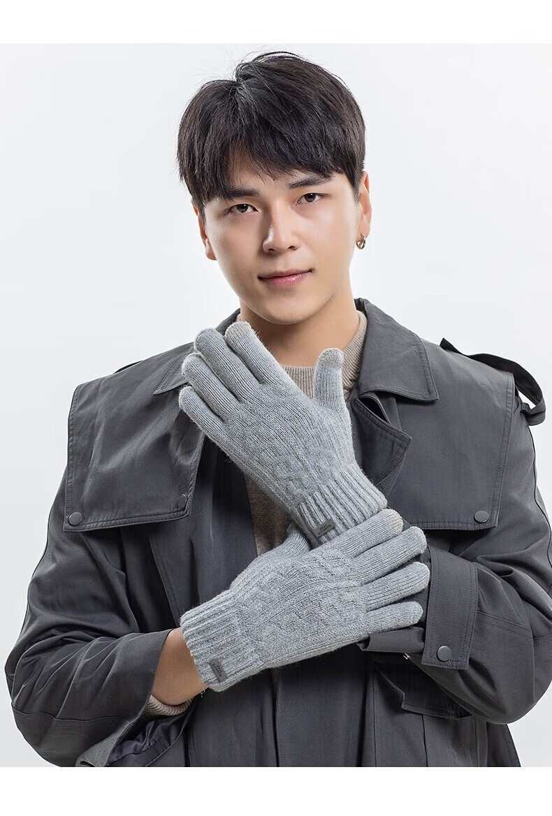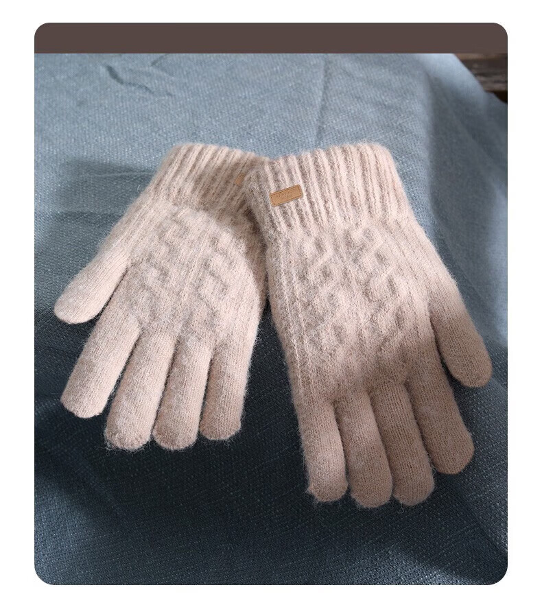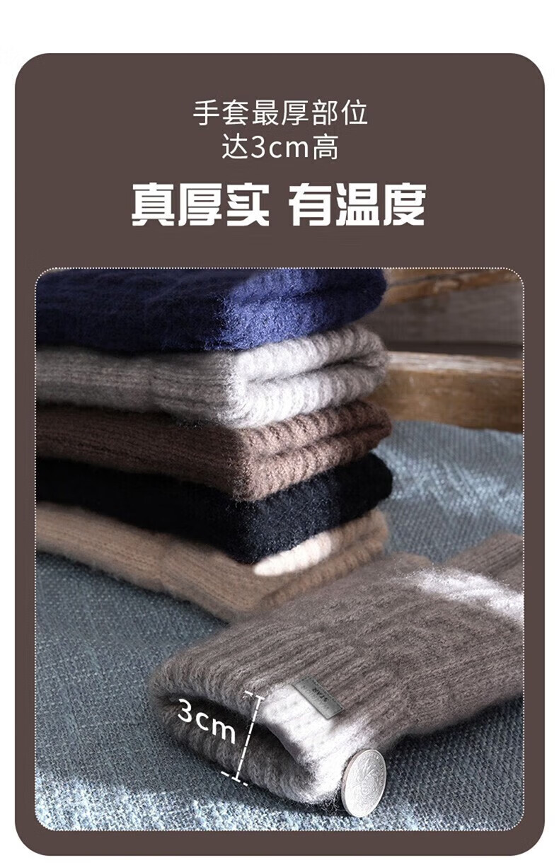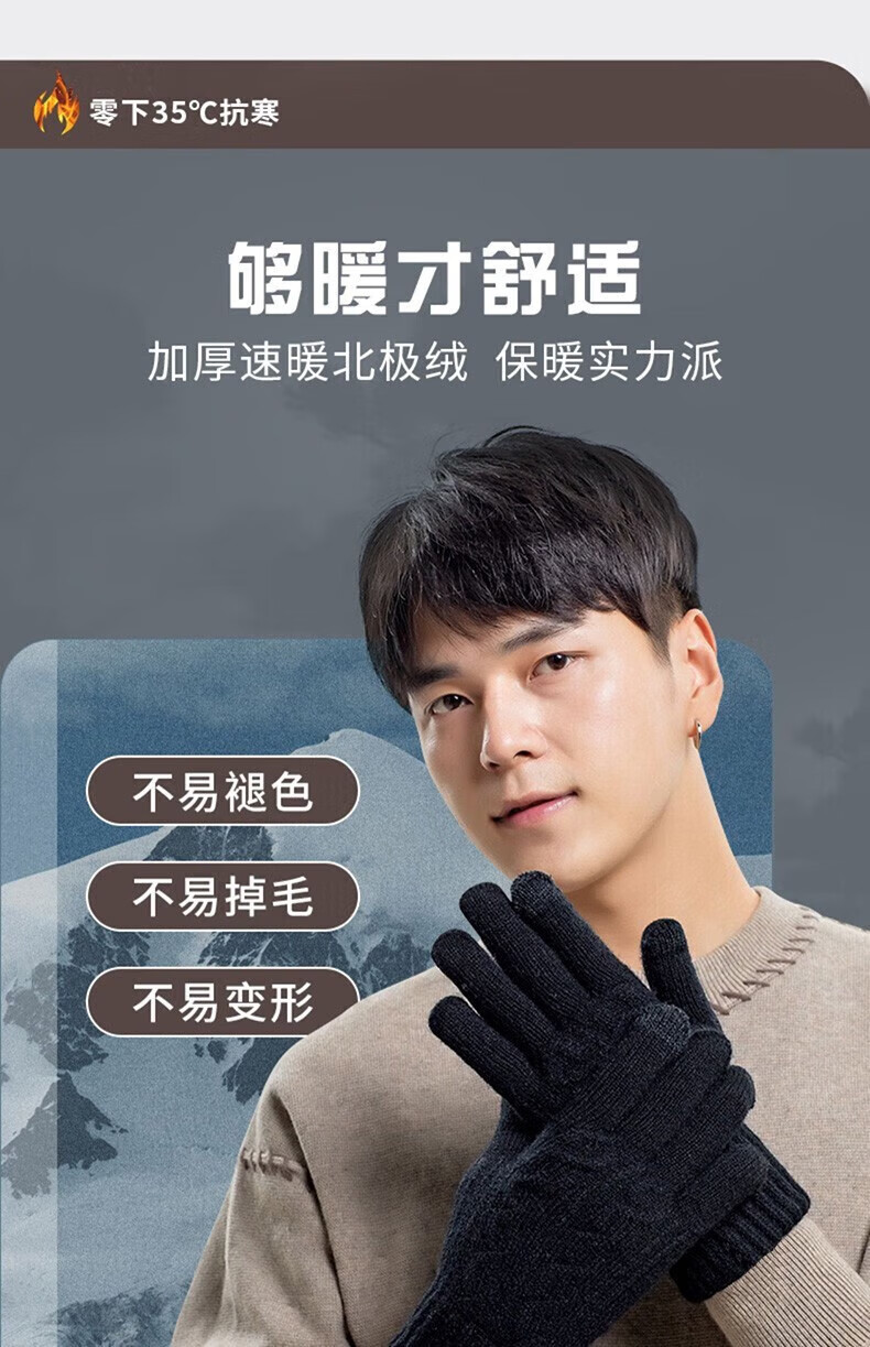 Warrior knitted gloves men's winter cycling wool gloves plus velvet thickened warm gloves women's cold wind touch screen driving cotton