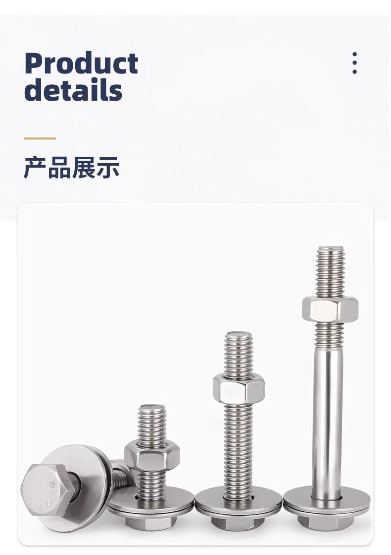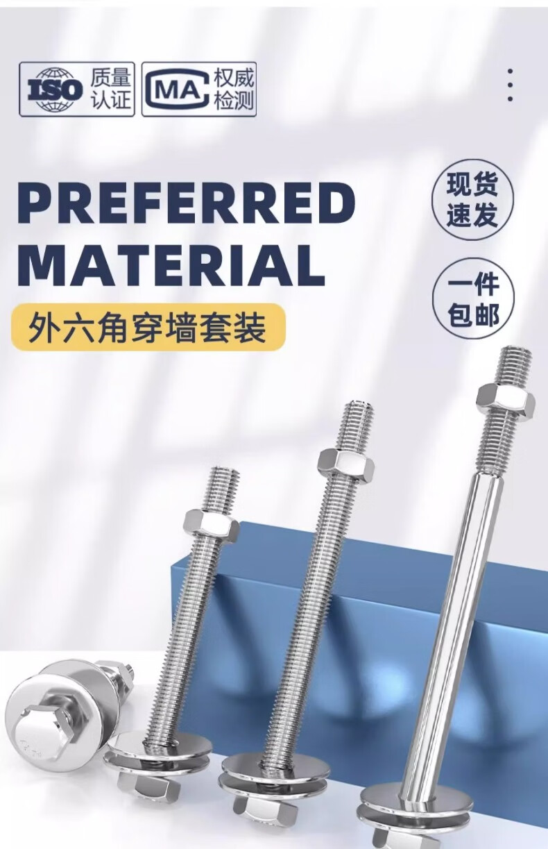 Fengji 304 stainless steel external hexagonal wall screw and nut set complete accessories screw extension bolt to threaded screw M4*60 10 sets