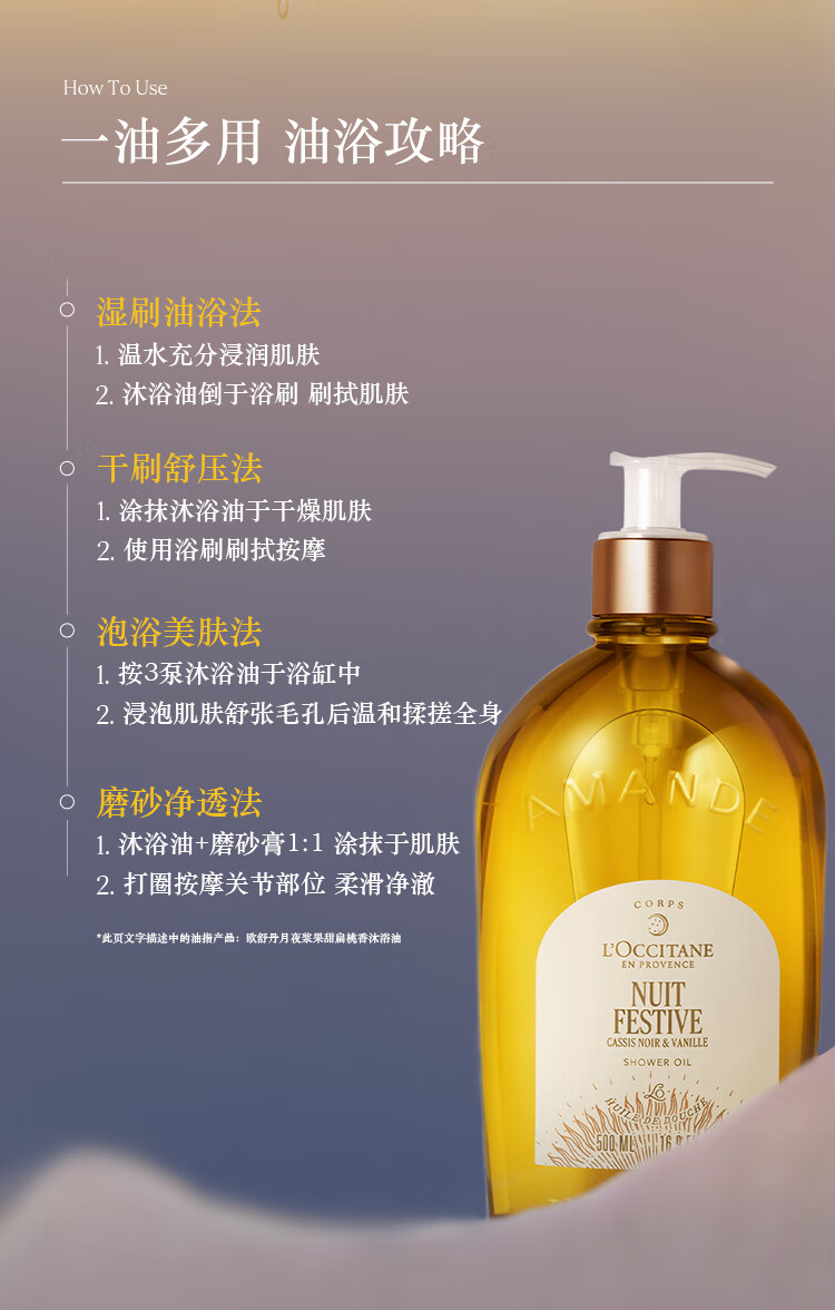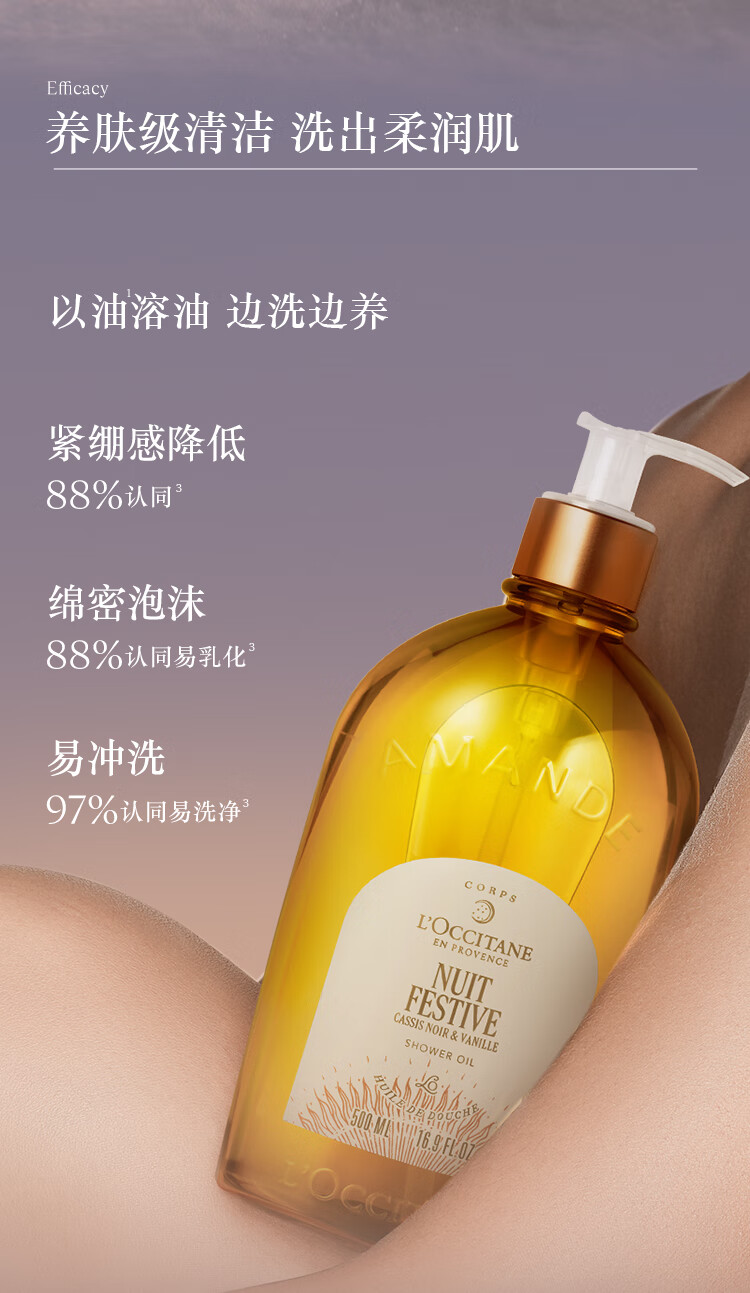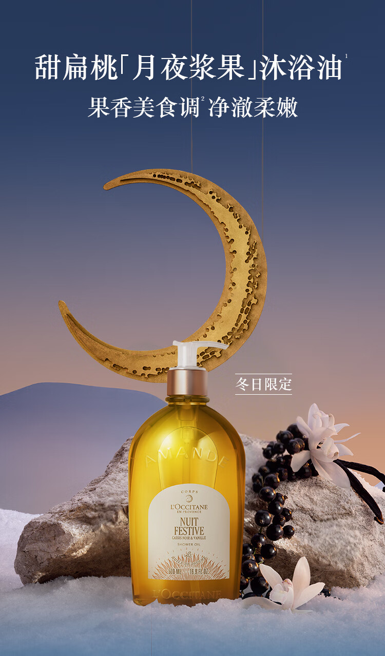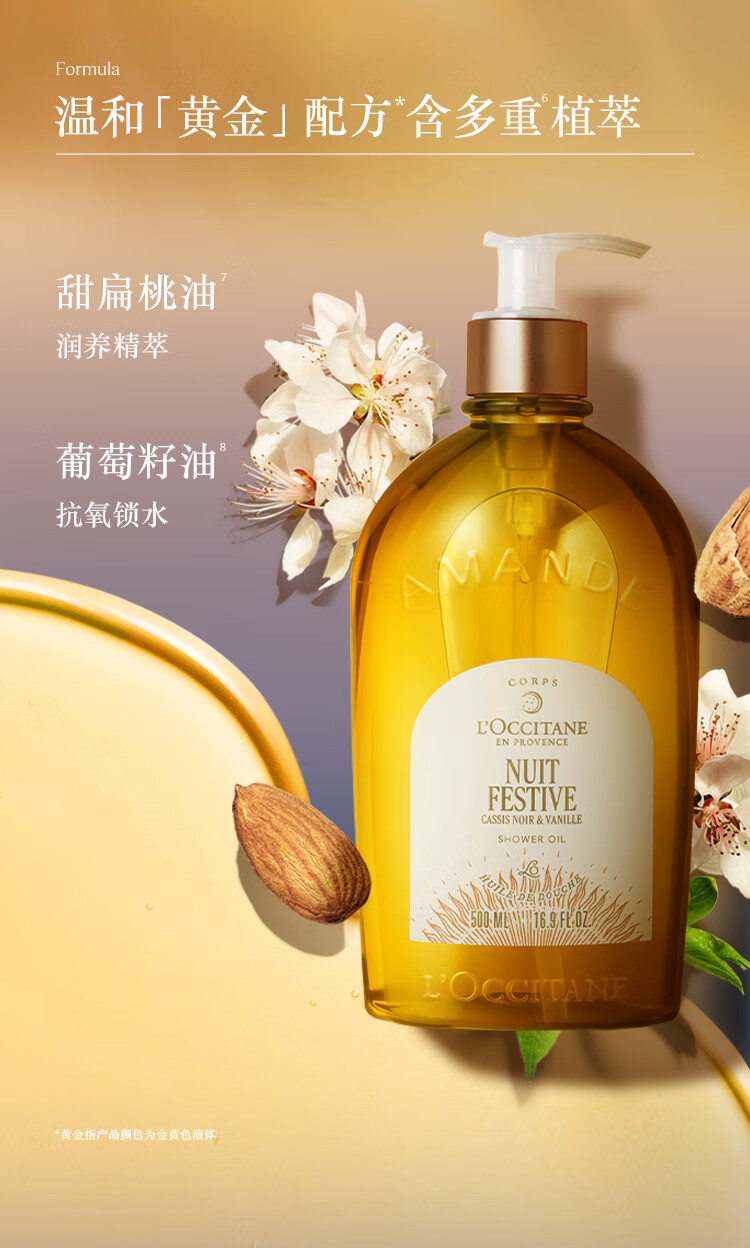 L'Occitane Moonlight Berry Sweet Almond Shower Oil 500ML Cleansing, Moisturizing, Firming and Nourishing Birthday Gift for Boyfriend and Girlfriend