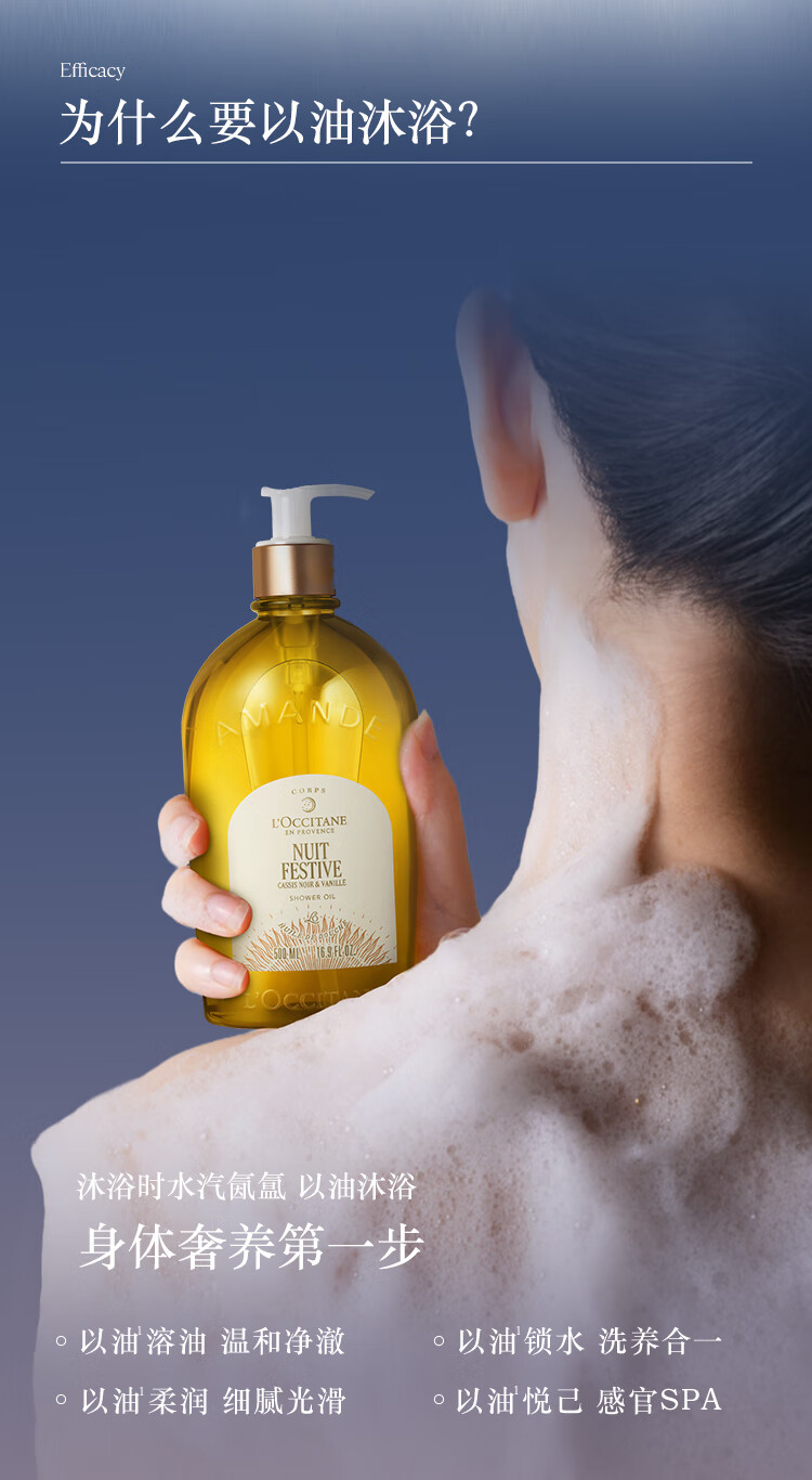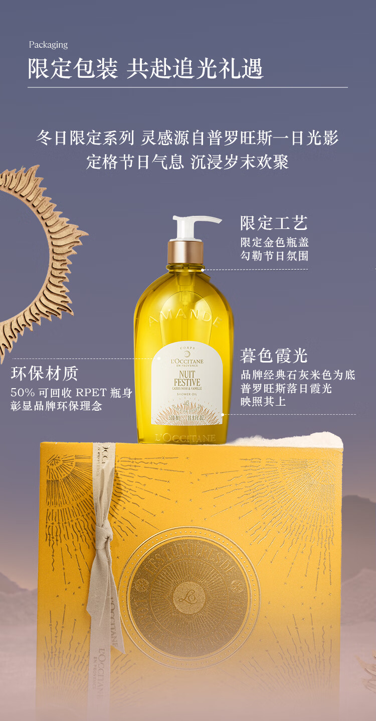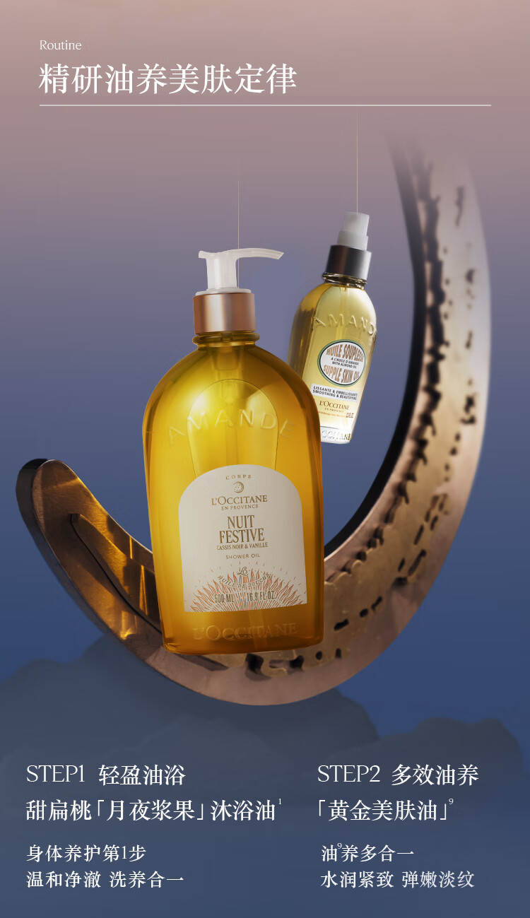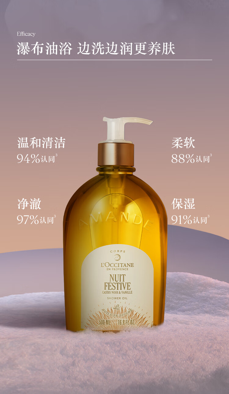 L'Occitane Moonlight Berry Sweet Almond Shower Oil 500ML Cleansing, Moisturizing, Firming and Nourishing Birthday Gift for Boyfriend and Girlfriend
