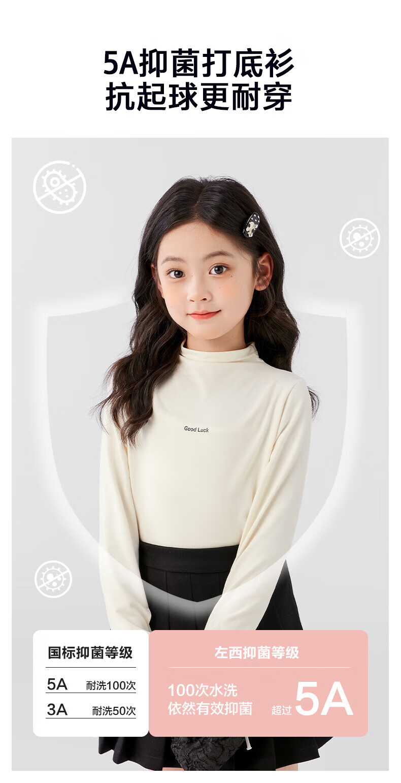 Zuoxi Girls Half Turtle Collar Bottoming Shirt 2025 New Children's Autumn and Winter Girls Warm Clothes Autumn Clothes White 120