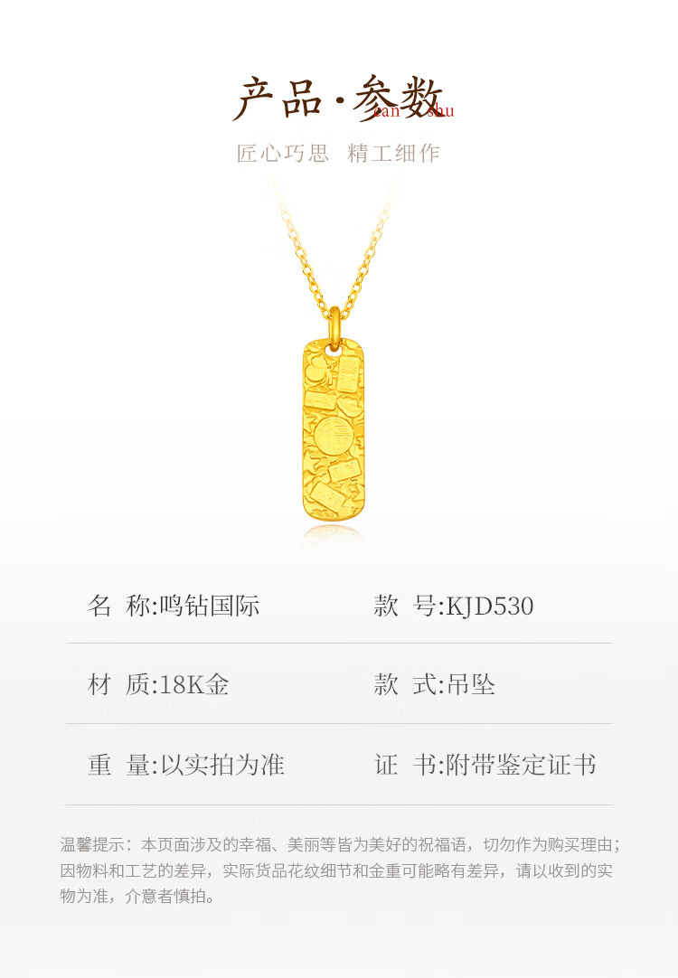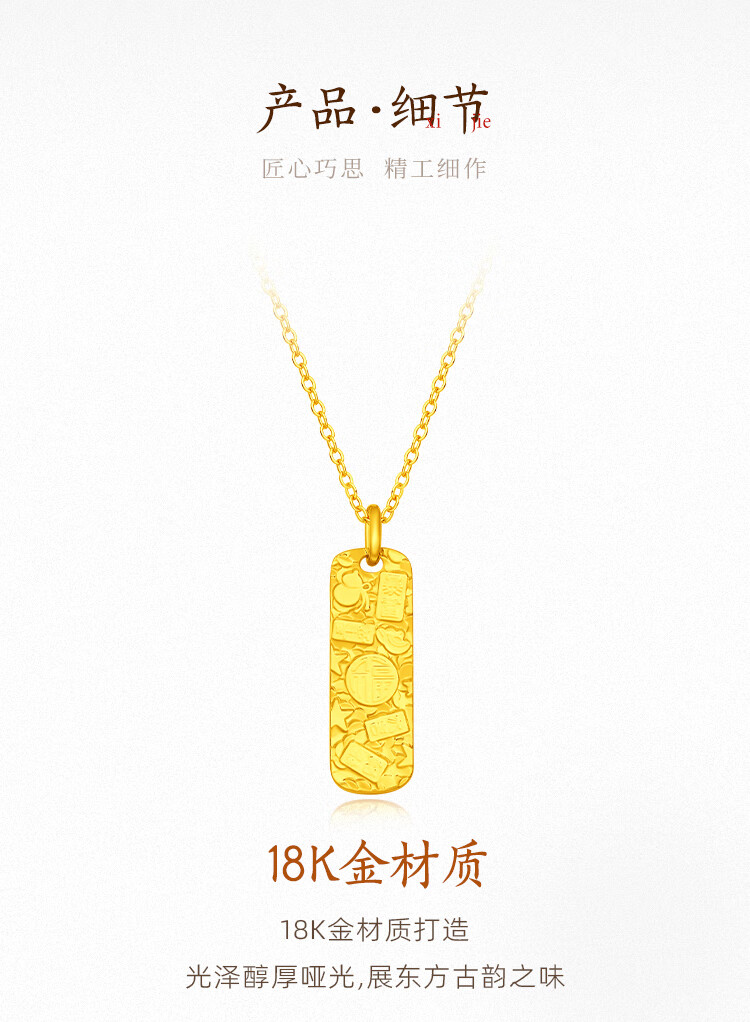 Mingzuan International 18K Gold Lucky Pendant Women's au750 Jiyanfu Brand Pendant Necklace New Birthday Gift for Girlfriend