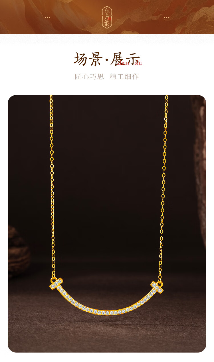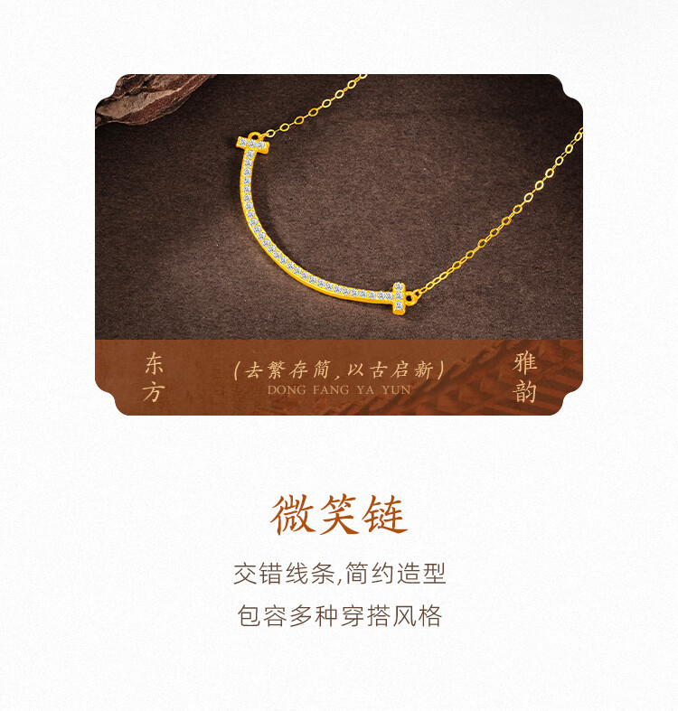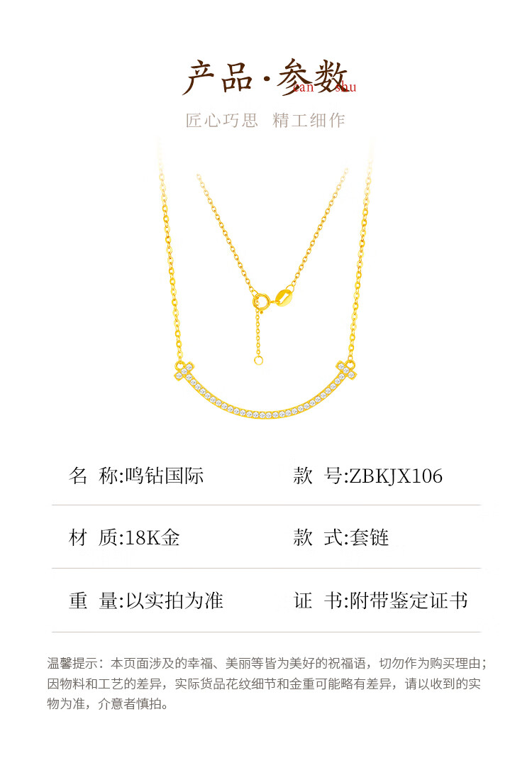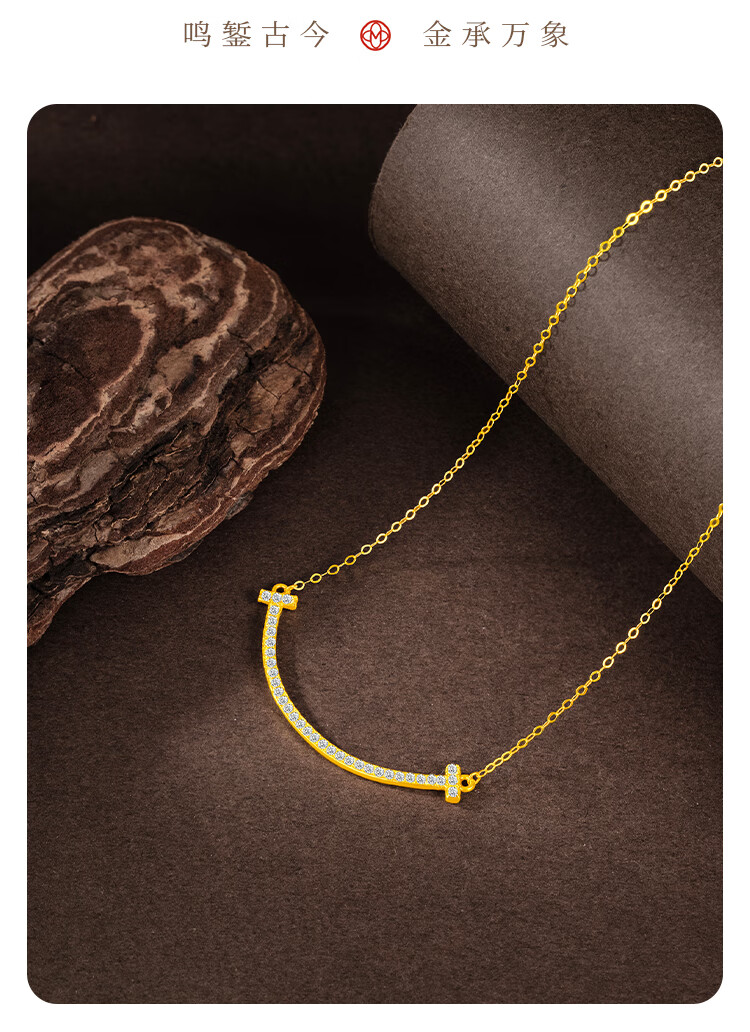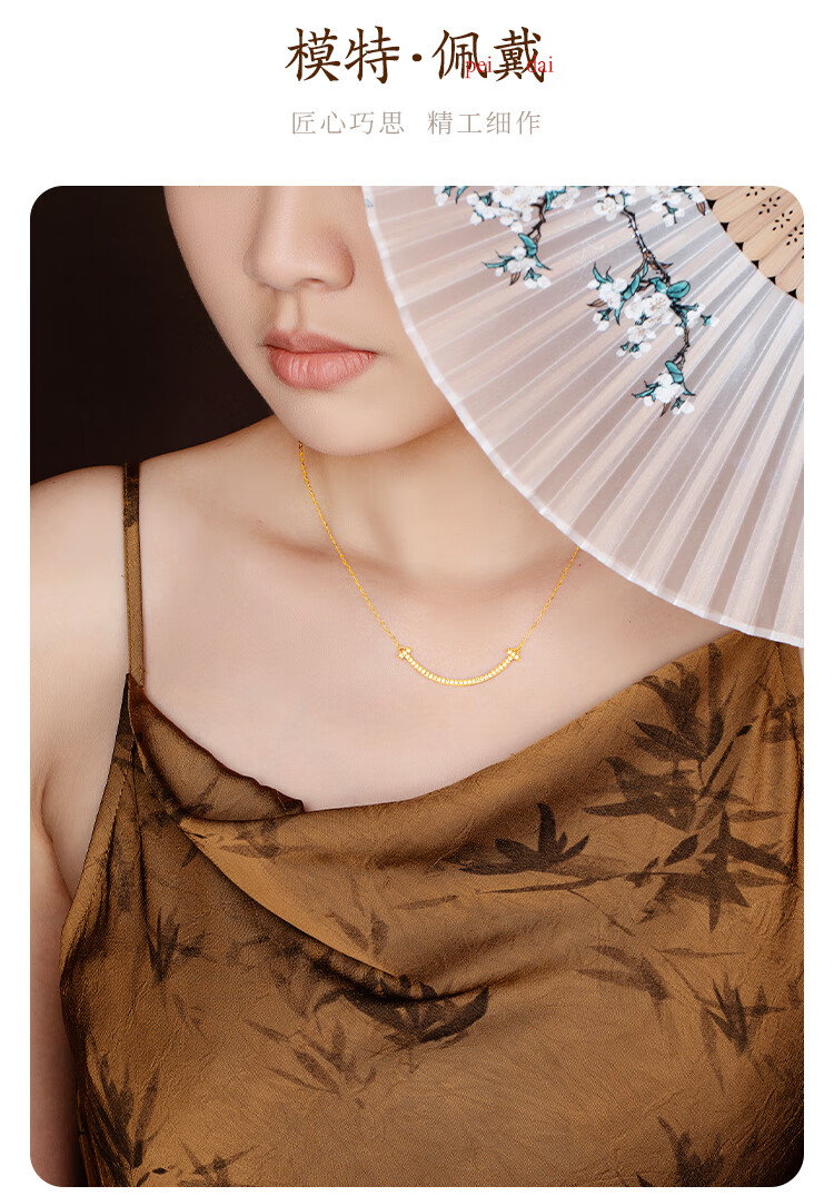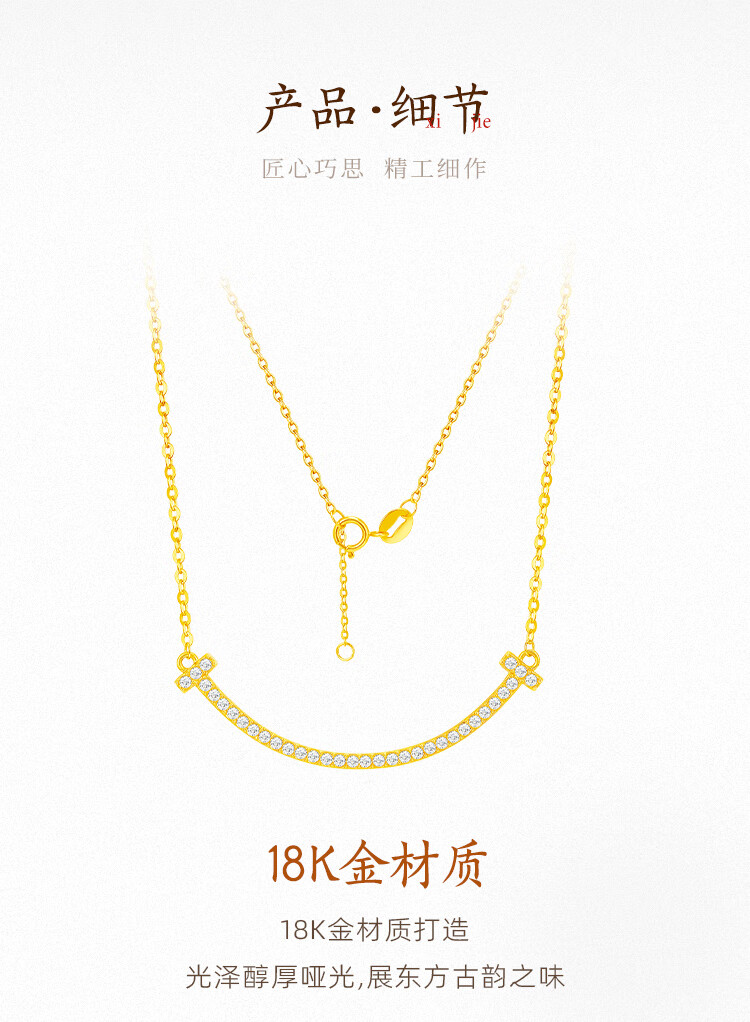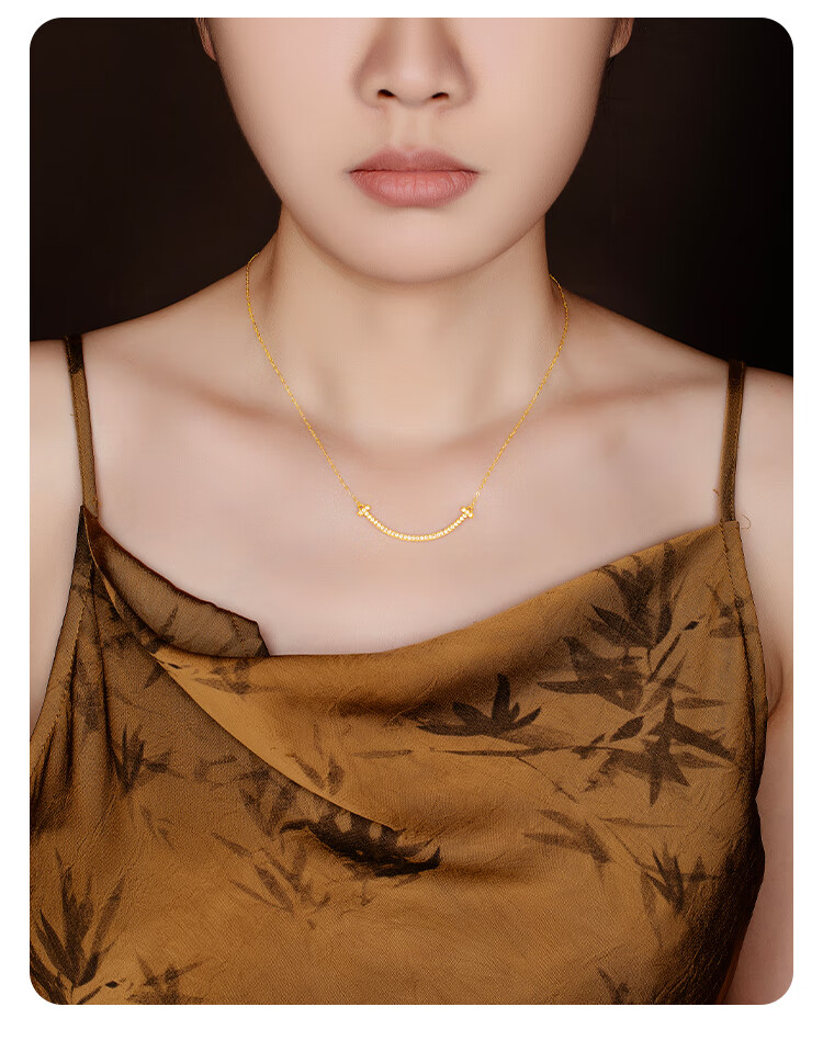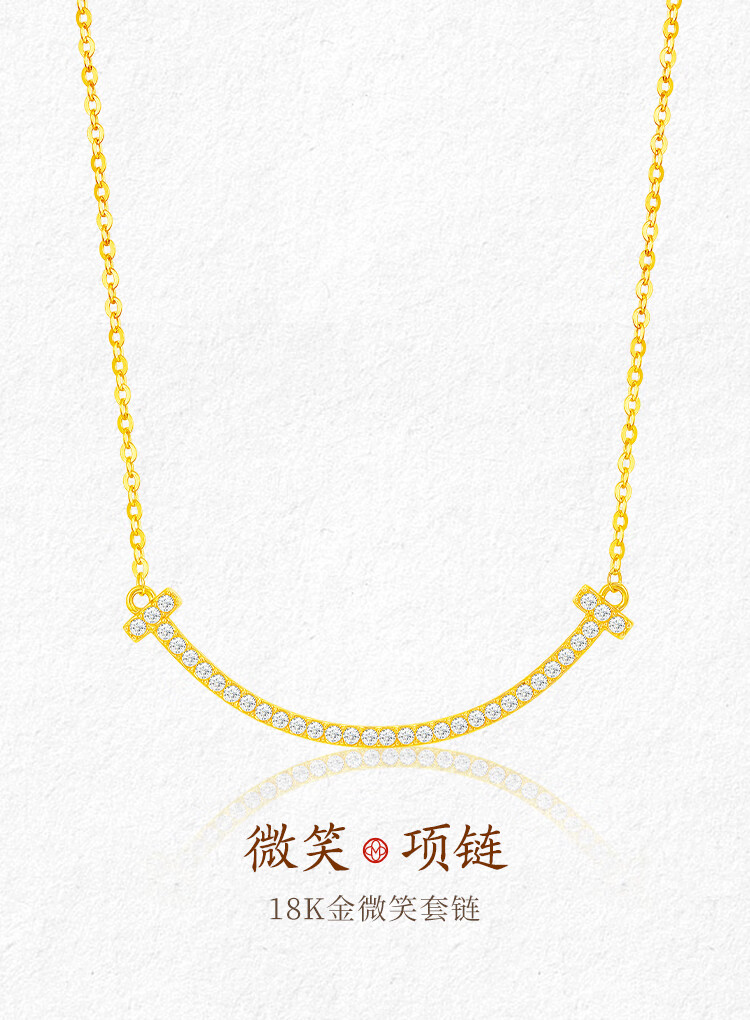 Mingzuan International 18k gold smile set chain inlaid with zircon design women's au750 simple clavicle chain birthday gift for girlfriend