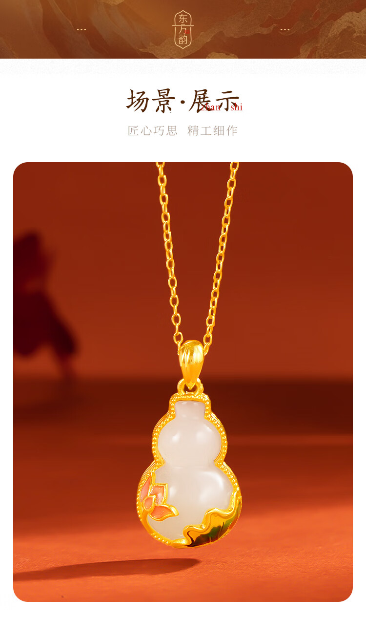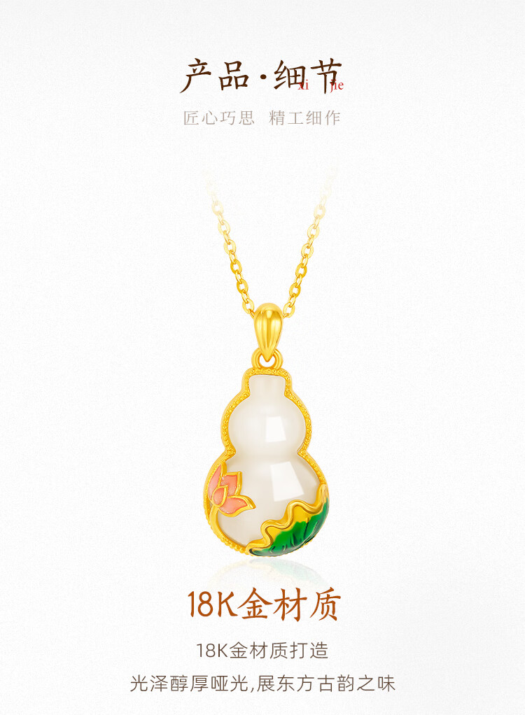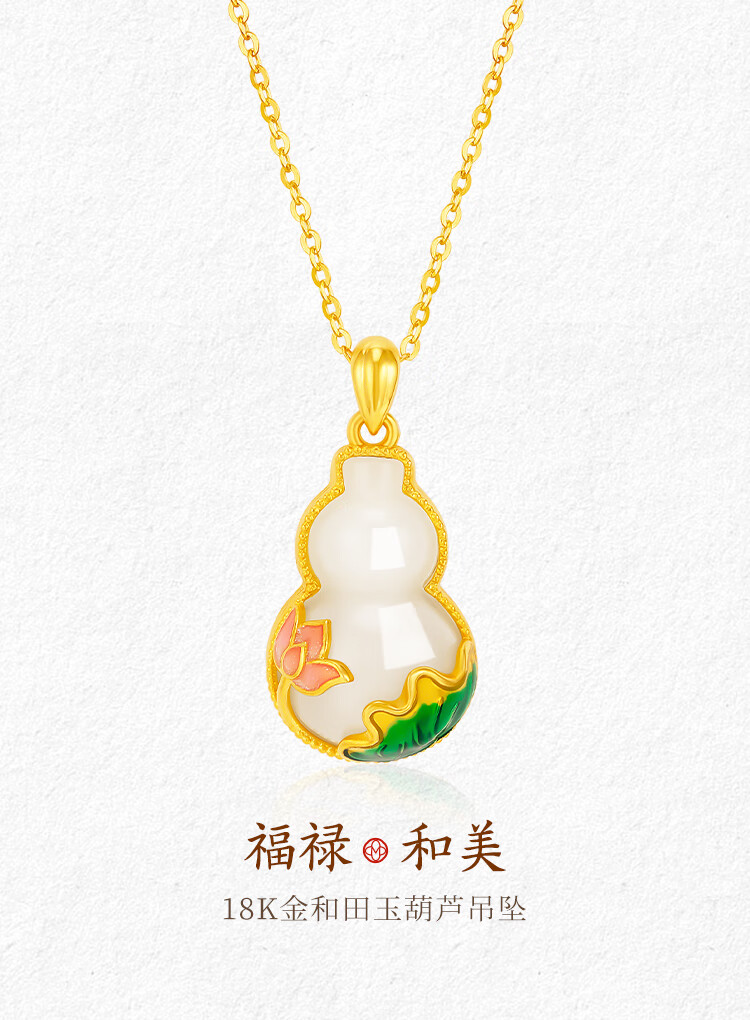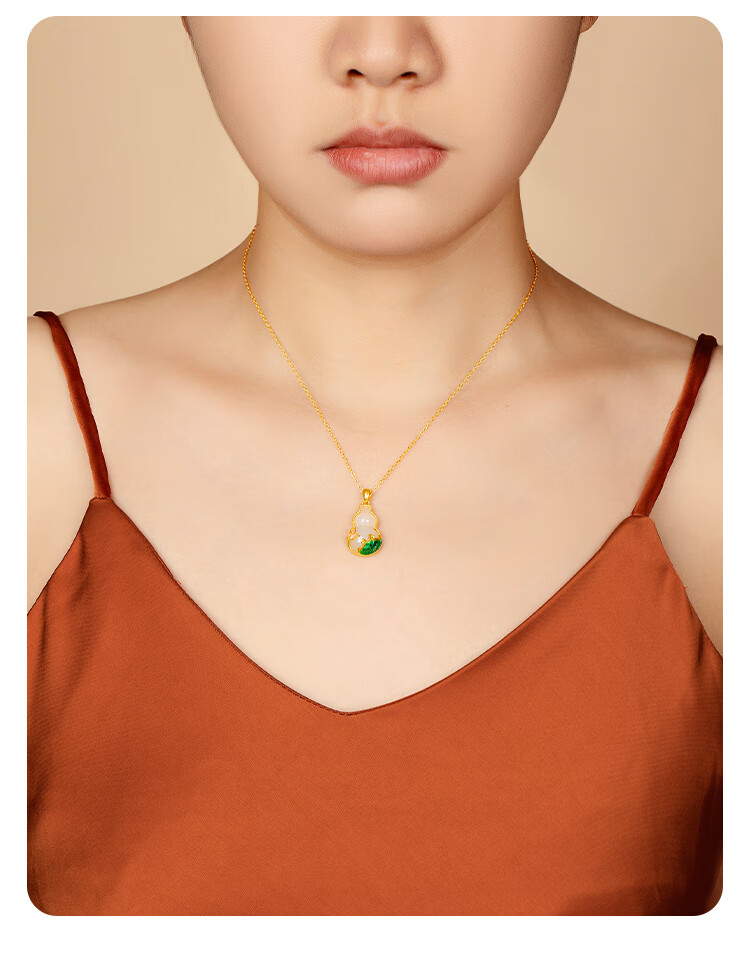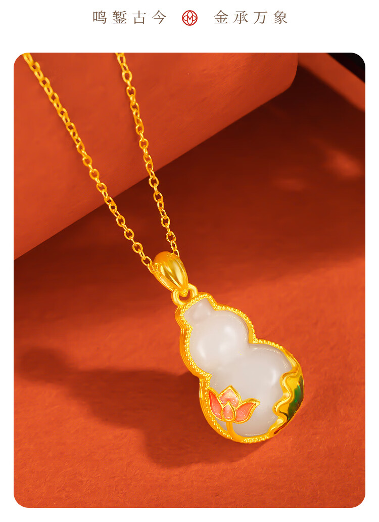 Mingzuan International 18K gold Hetian jade gourd pendant female au750 pendant necklace clavicle chain new birthday gift for girlfriend