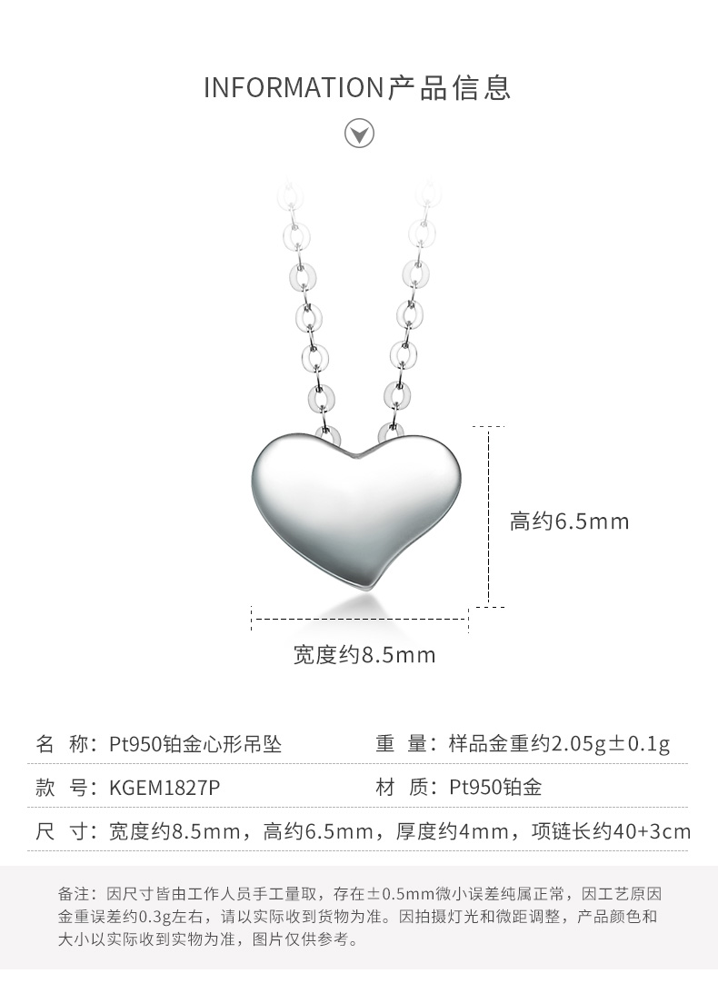 Avani PT950 platinum necklace for women heart-shaped platinum clavicle chain pendant set chain for girlfriend heart-shaped platinum necklace