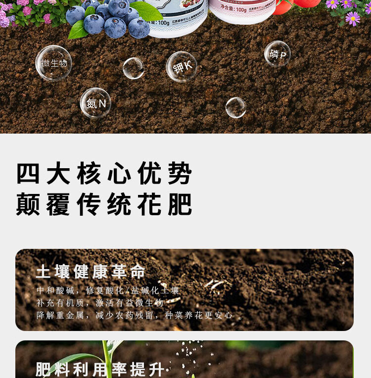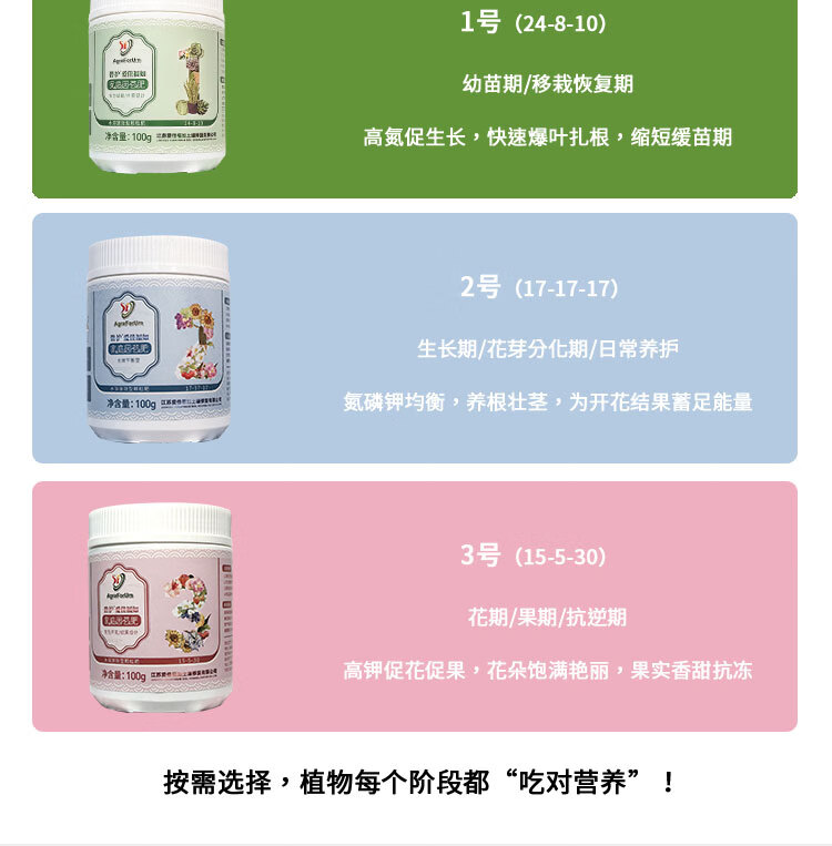 碧护家庭园艺复合肥料植物化肥花肥水溶速效型颗粒氮磷钾组套100g*3瓶