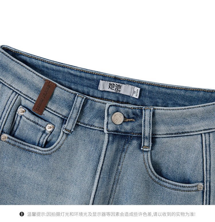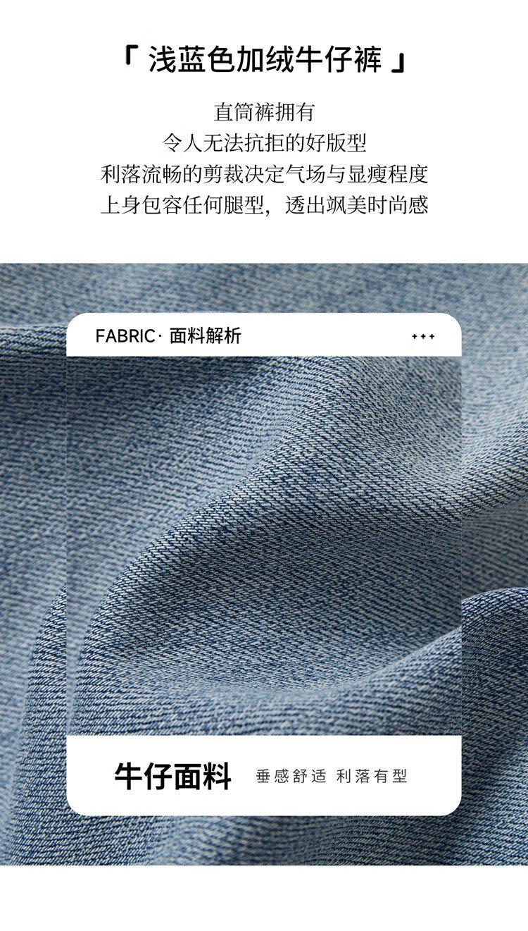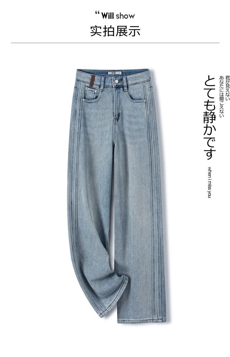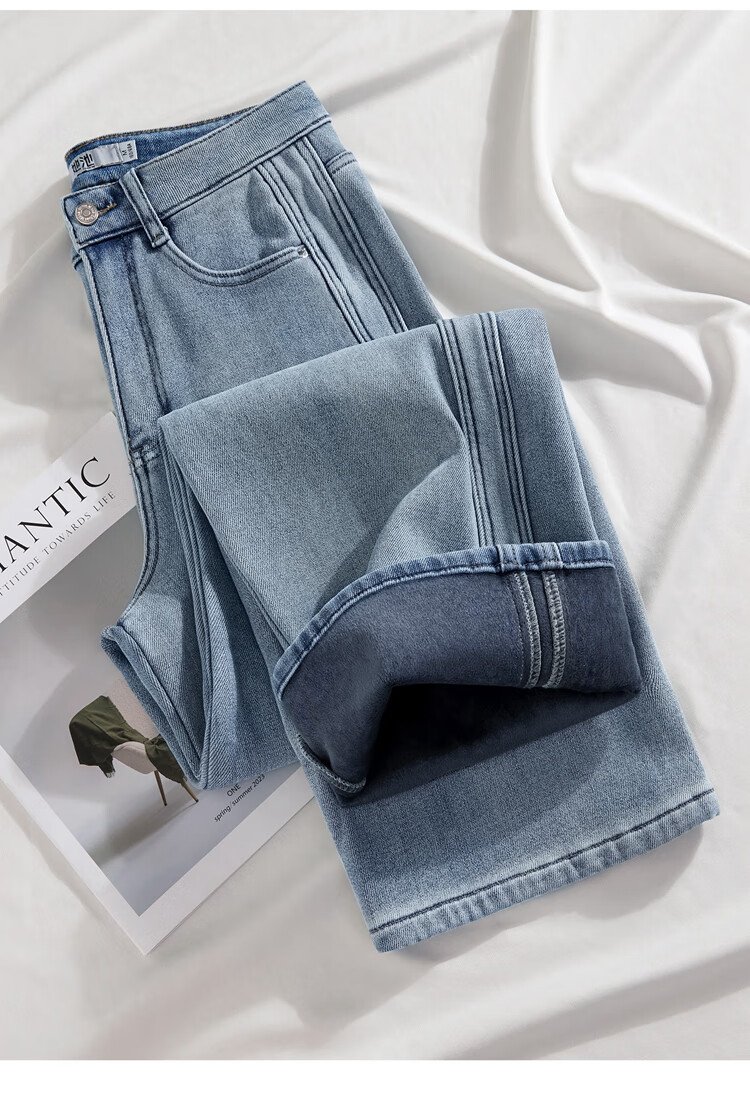 Shechi plus velvet warm straight jeans women's 2025 winter new style retro high-waisted slim trousers