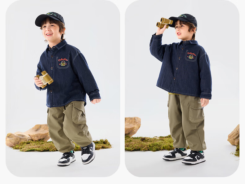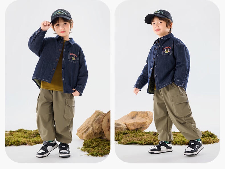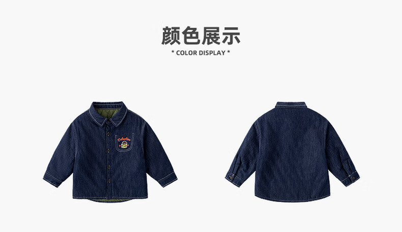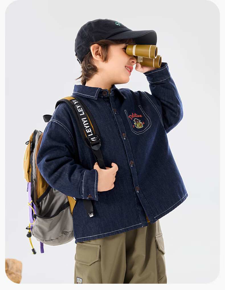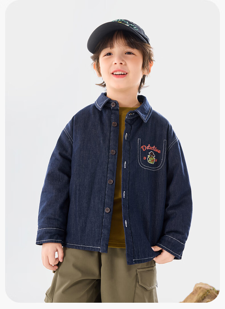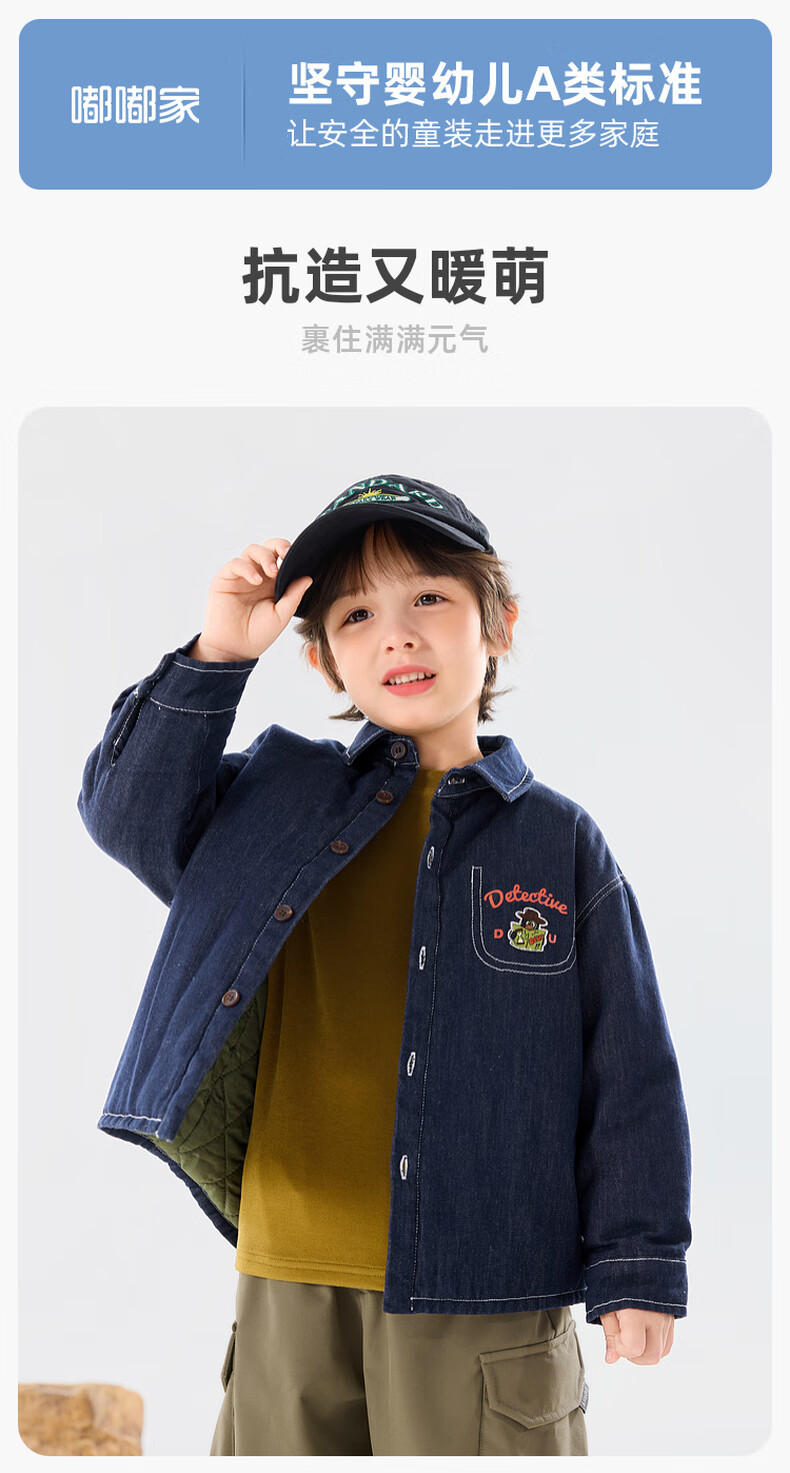 Dudujia anti-fading boys' denim shirt winter children's three-layer quilted jacket baby winter top blue 120
