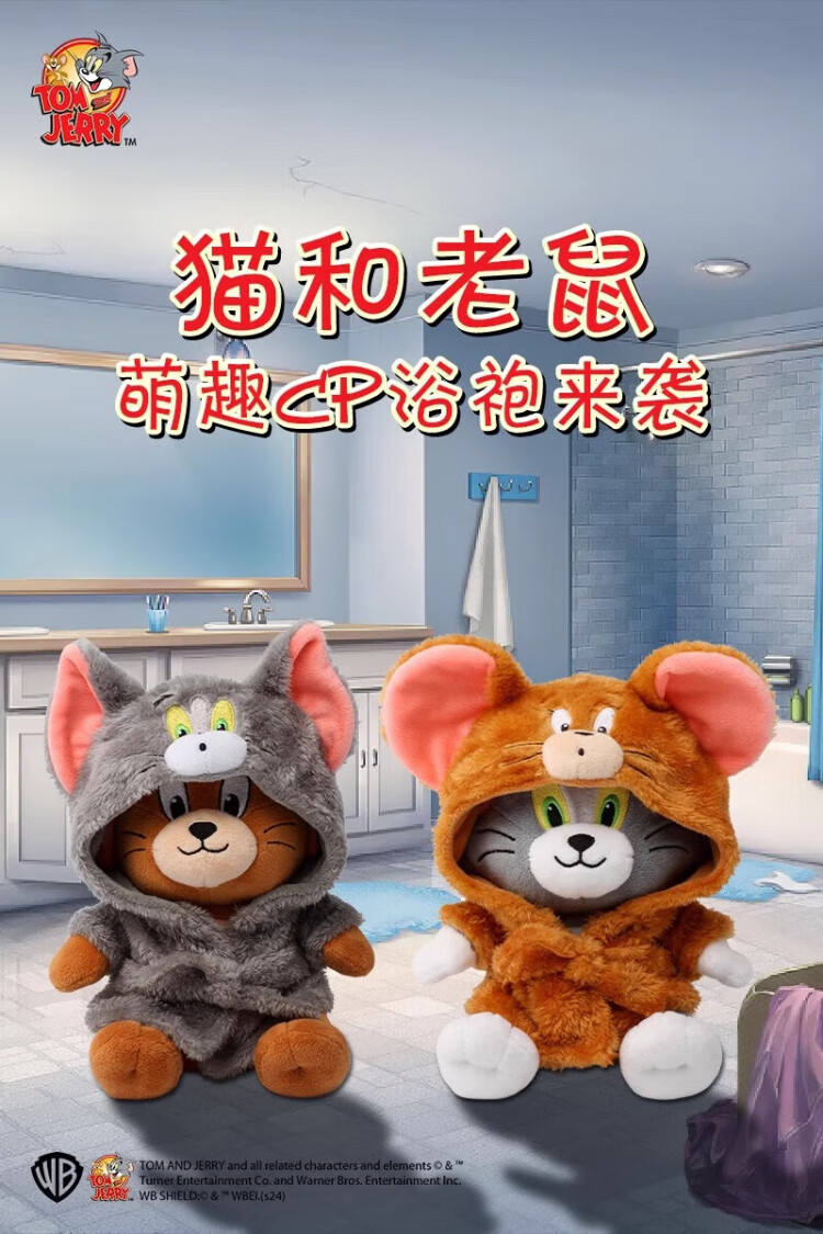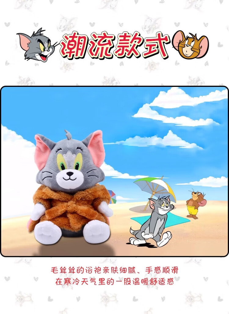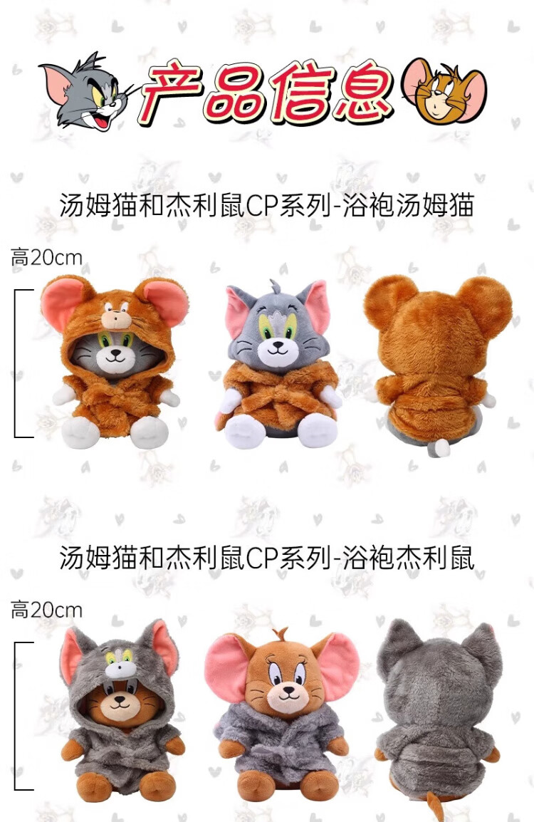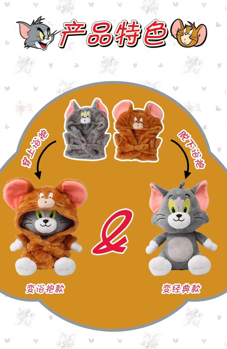 Tom and Jerry plush toy cute CP bathrobe Tom cat doll healing doll birthday gift plush toy for girls
