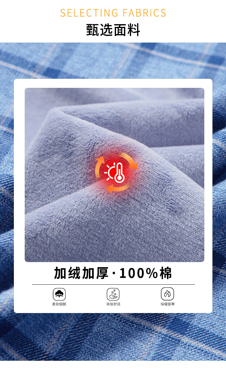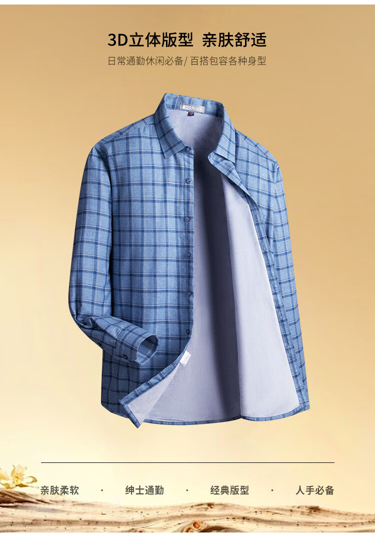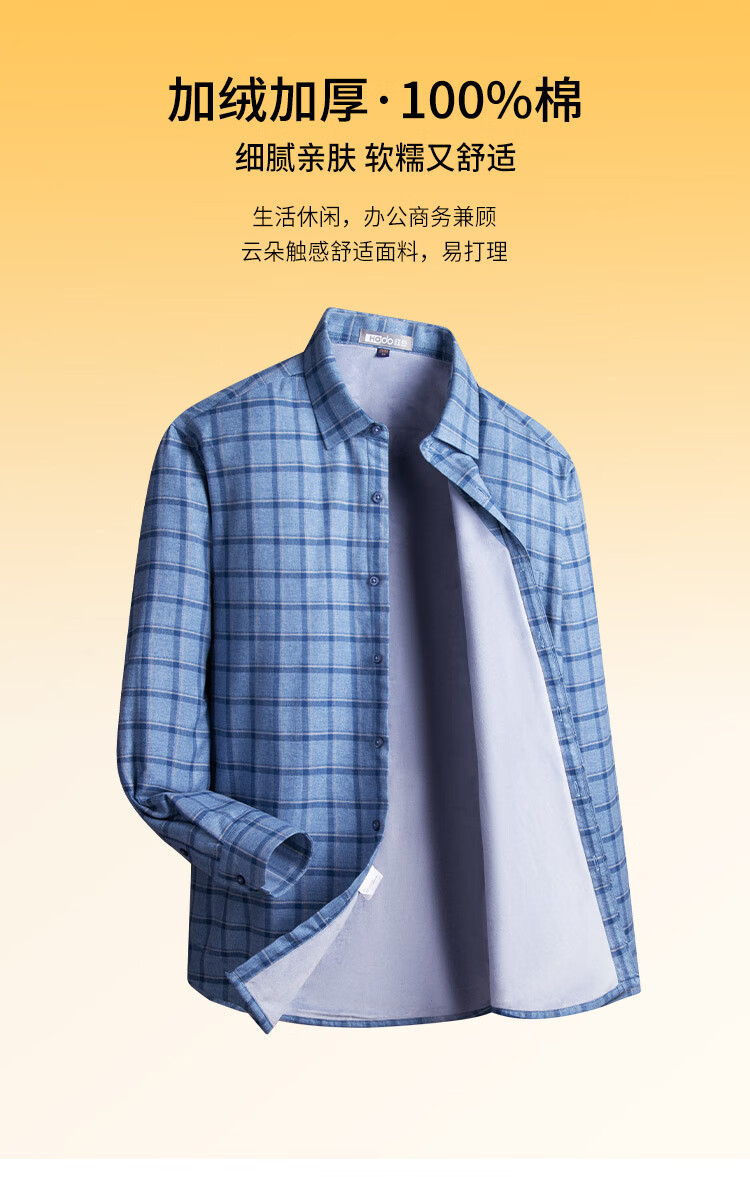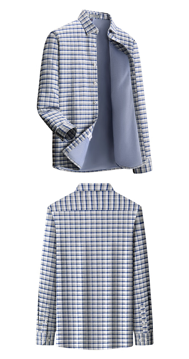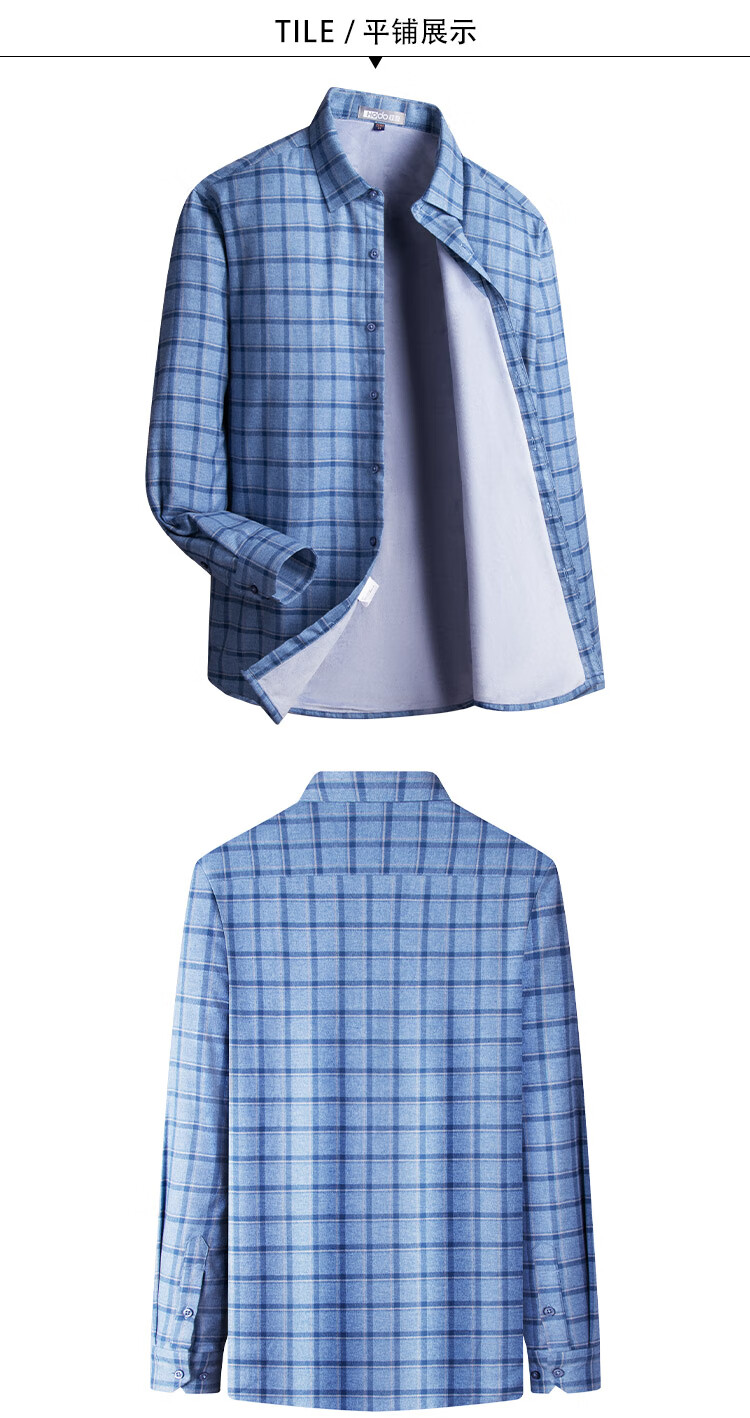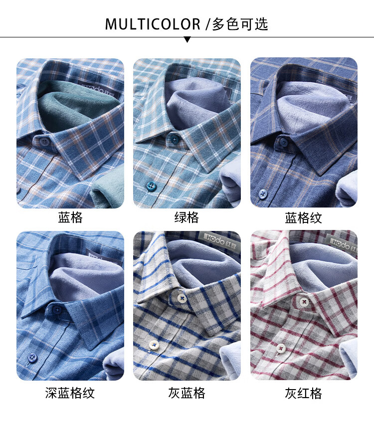 Hodo velvet 100% cotton light luxury plaid autumn and winter men's long-sleeved shirt business casual warm thickened shirt