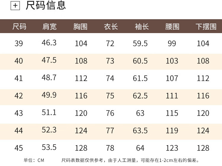 Size (cm) 42 44 46 48 50