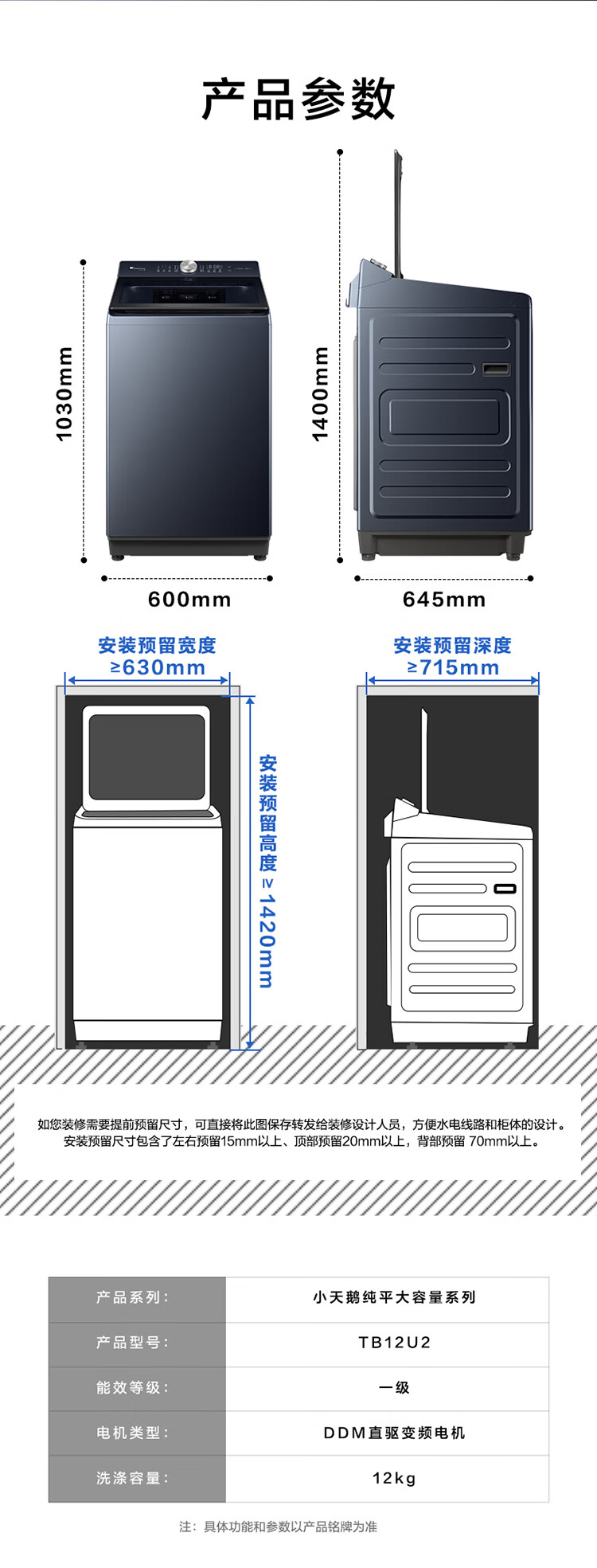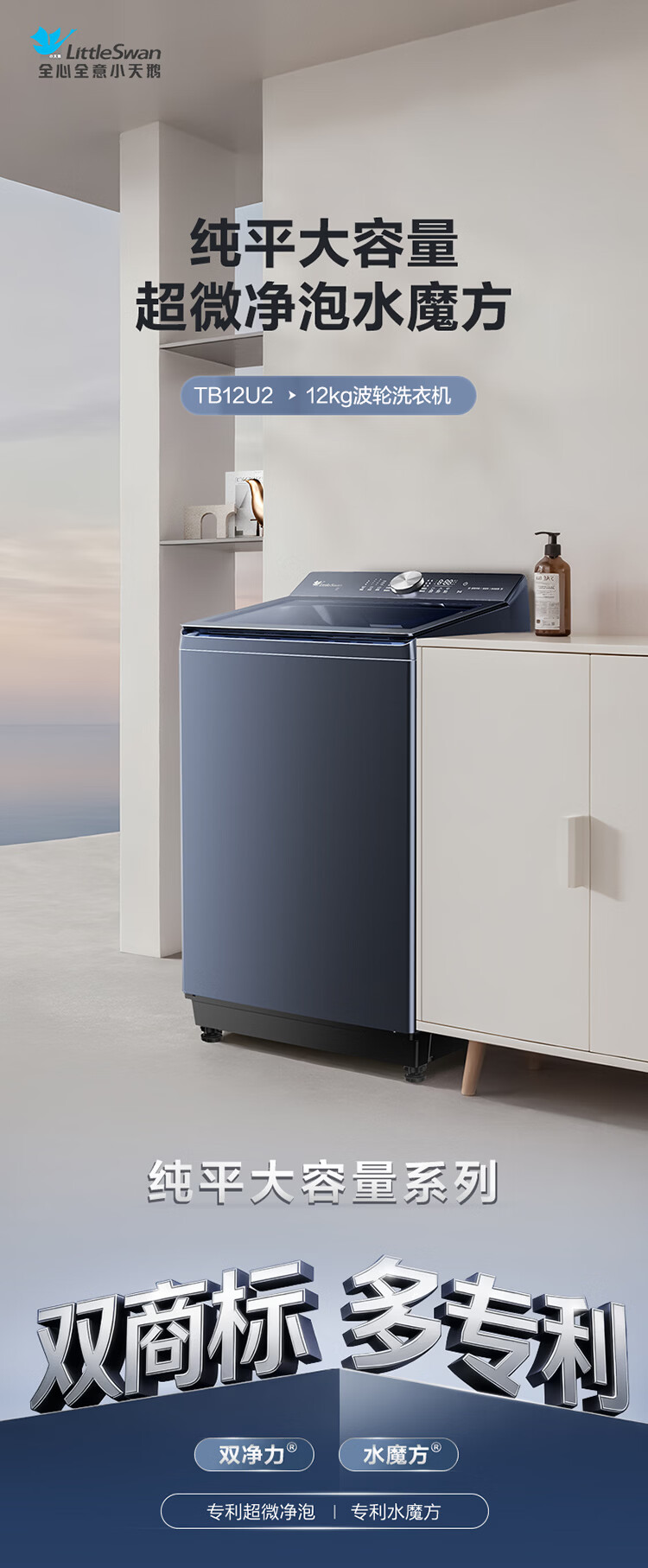 LittleSwan pulsator washing machine fully automatic home 12KG large capacity flat screen water magic cube anti-winding ultra-fine bubble cleaner TB12U2 trade-in national subsidy OCC