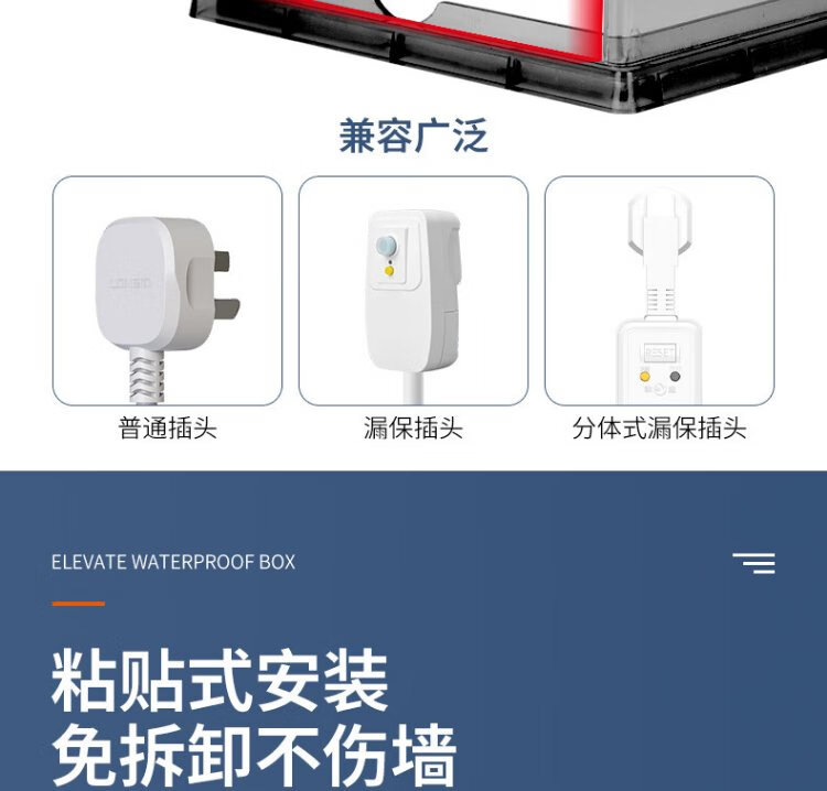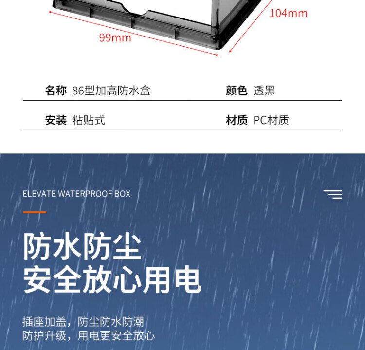 SAILiPU switch socket waterproof box 86 type bathroom toilet power socket splash-proof box water heater plug heighten dustproof protective cover self-adhesive black transparent