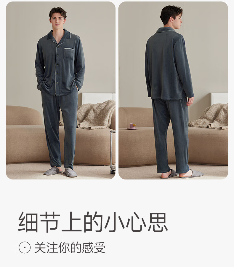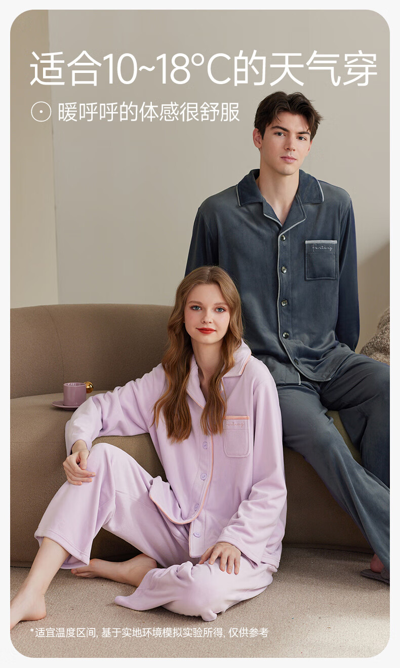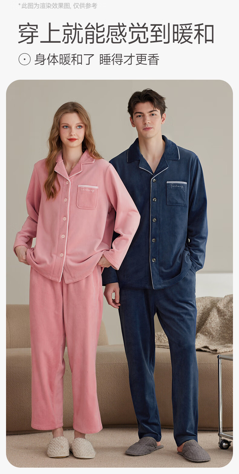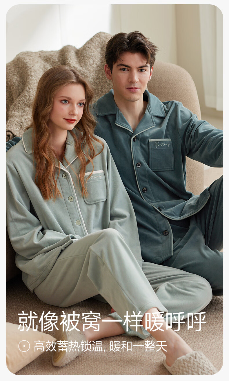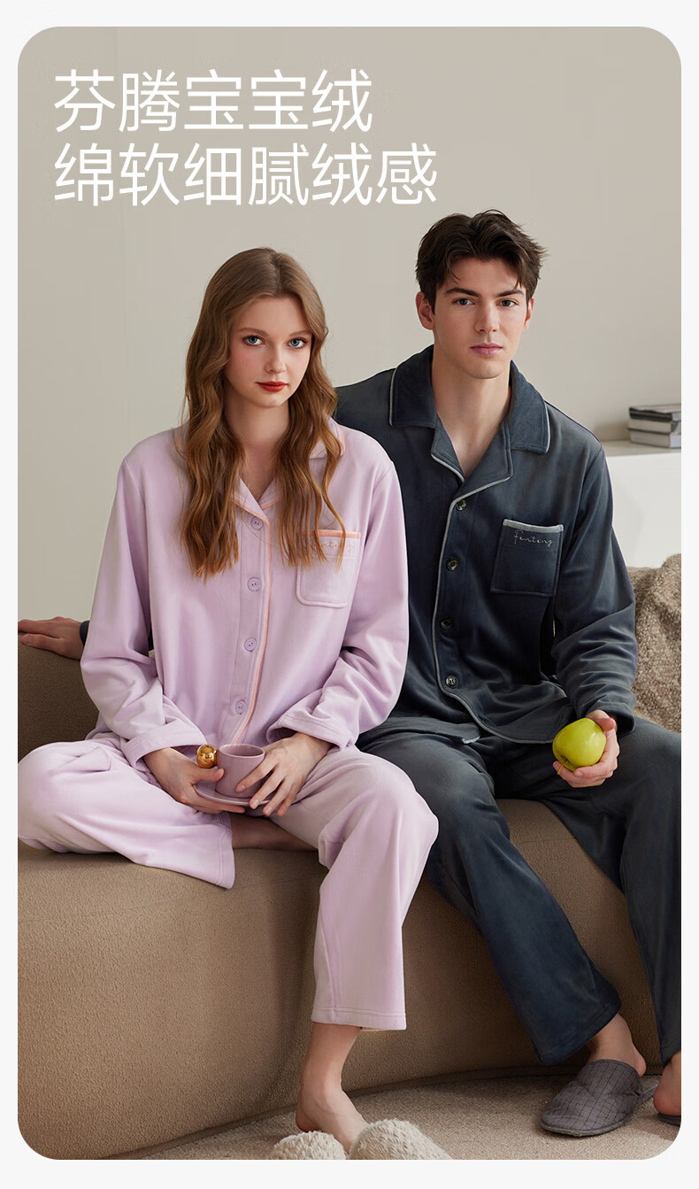 Fenten Island Velvet Couple Pajamas Autumn and Winter New Warm Women's Suit Antistatic Thickened Coral Velvet Home Clothing for Men