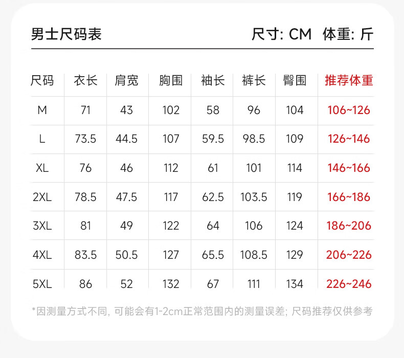 China (cm) 160-165/84-86 165-170 / 88-90 167-172 / 92-96 168-173 / 98-102 170-176 / 106-110