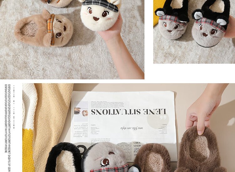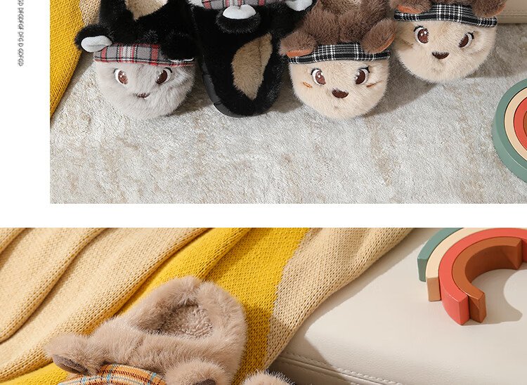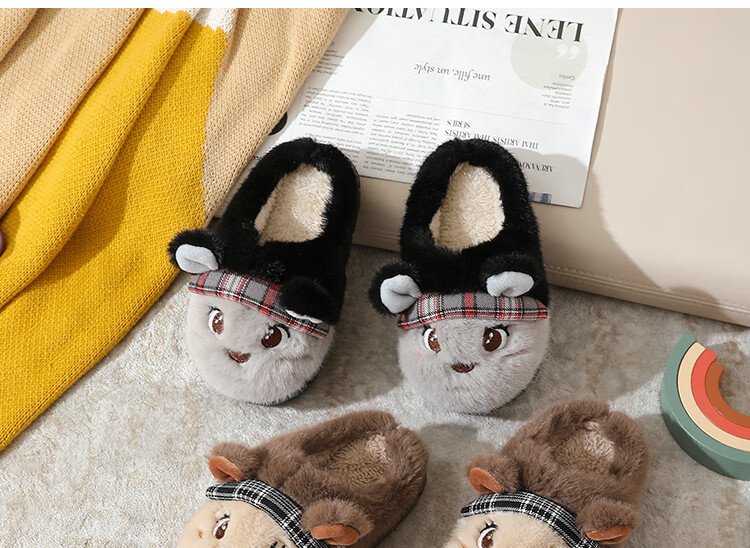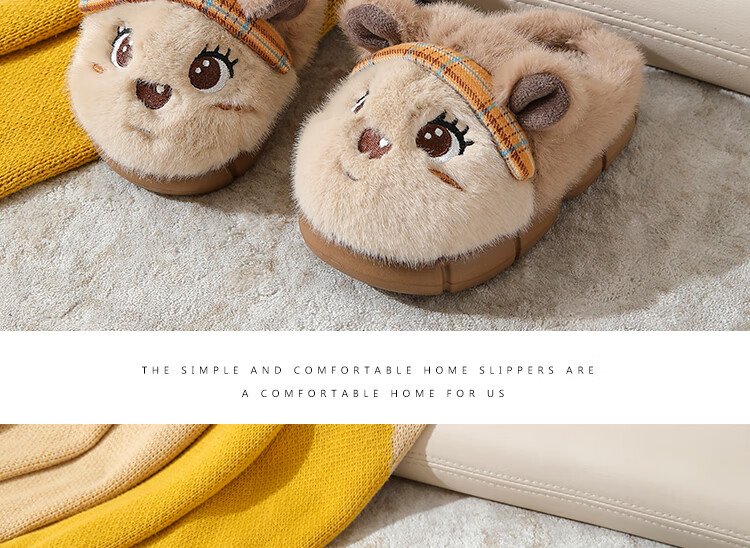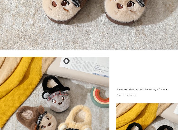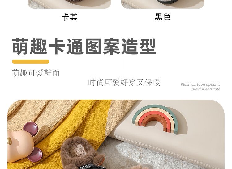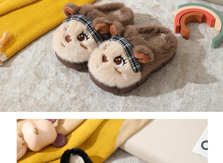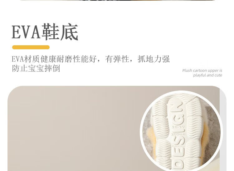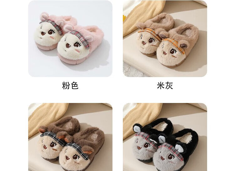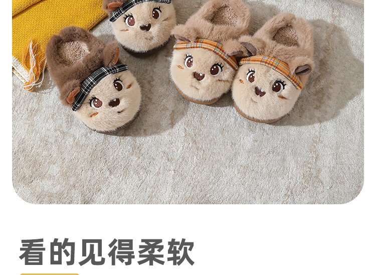 Piggy Banner (PEPCO) boys and girls children indoor and outdoor wear home warm soft-soled cartoon cute plush cotton slippers khaki 36