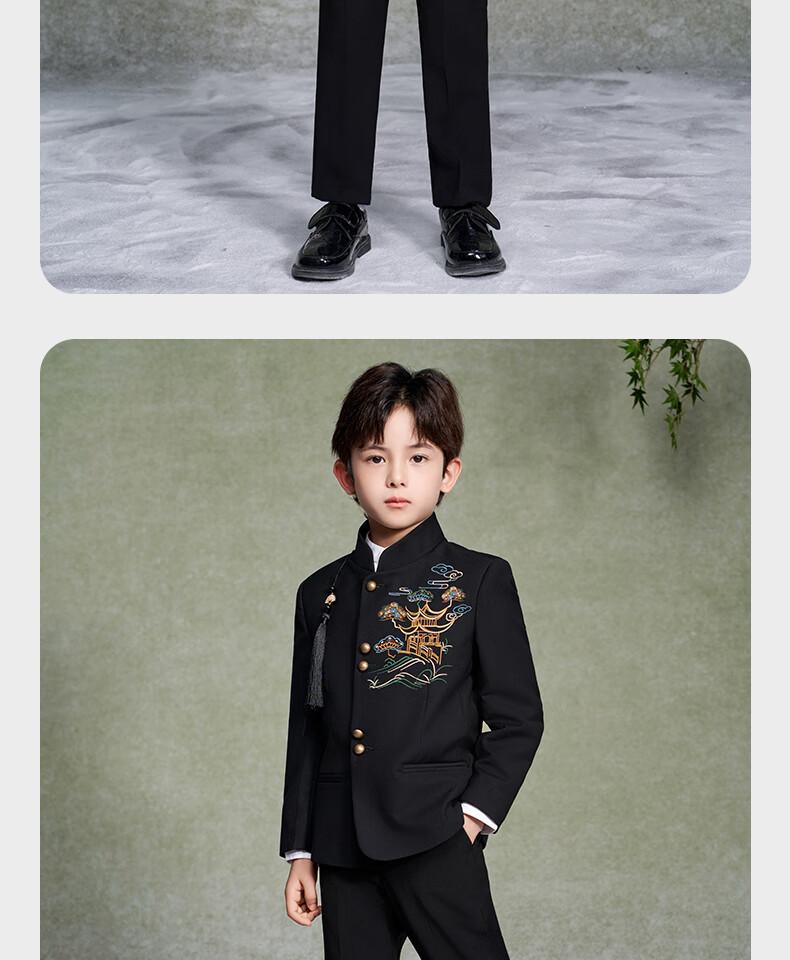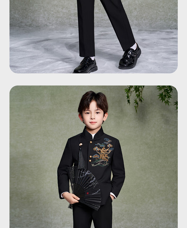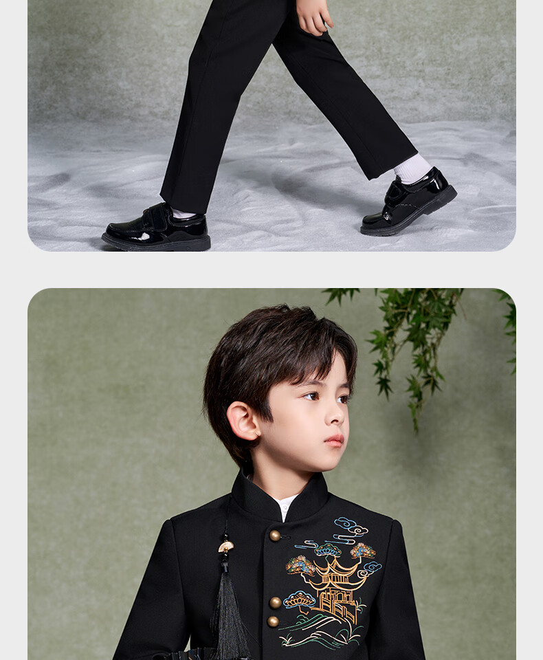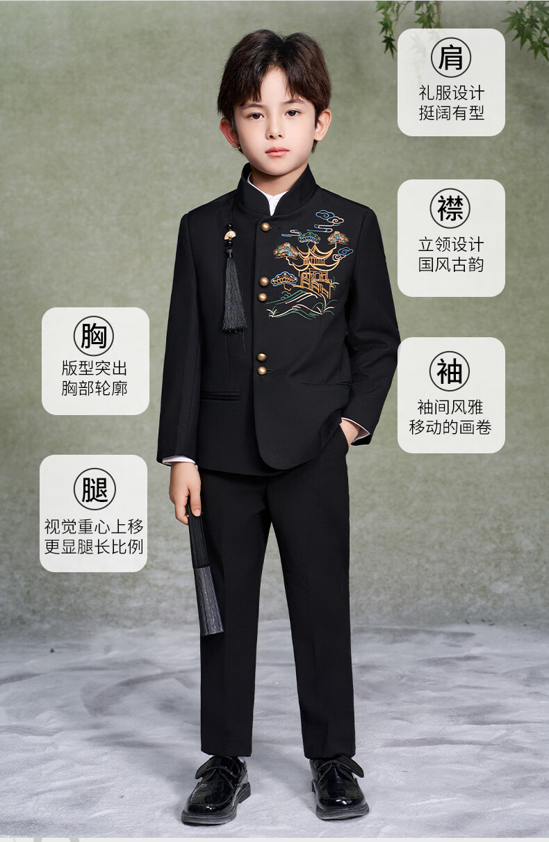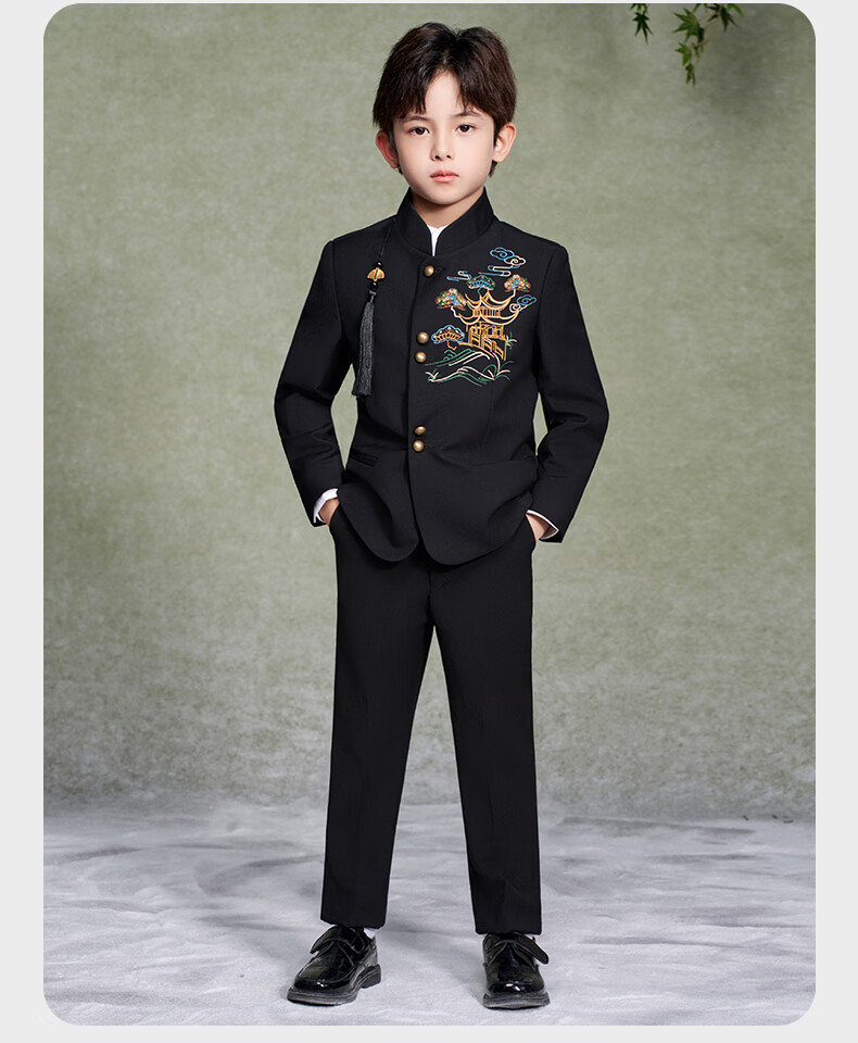 Luo Meng Boys' New Chinese Suit Jacket Tang Suit Chinese Style Tunic Suit Children's Suit Performance Clothing Black 160