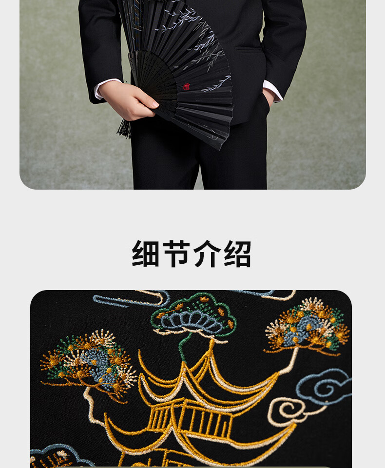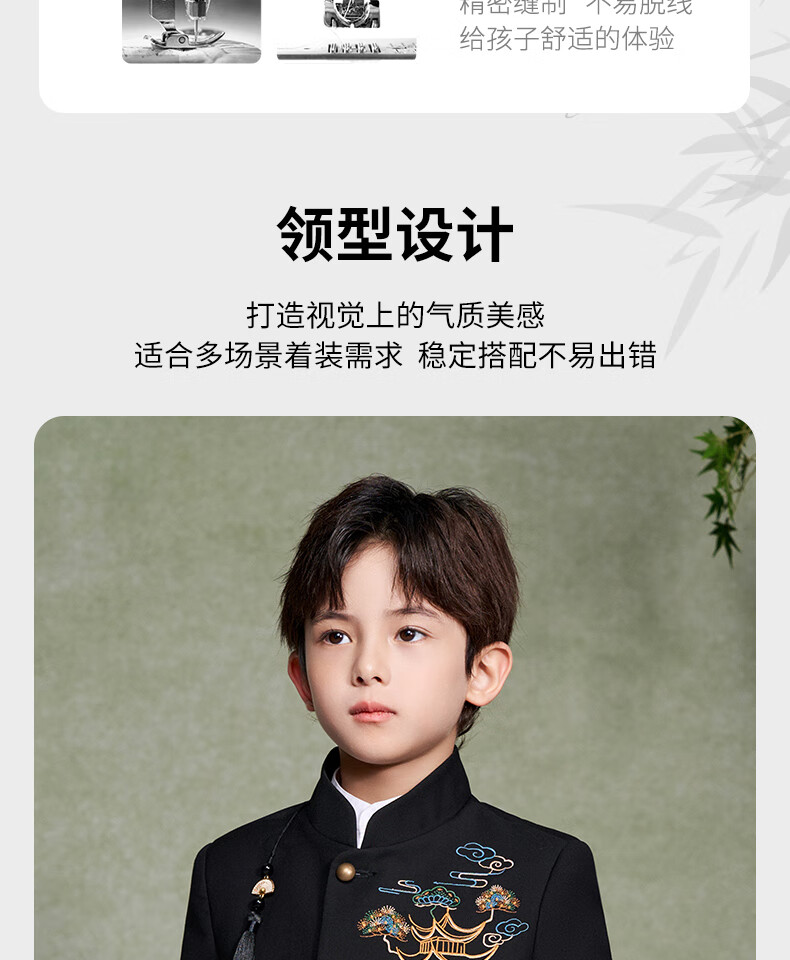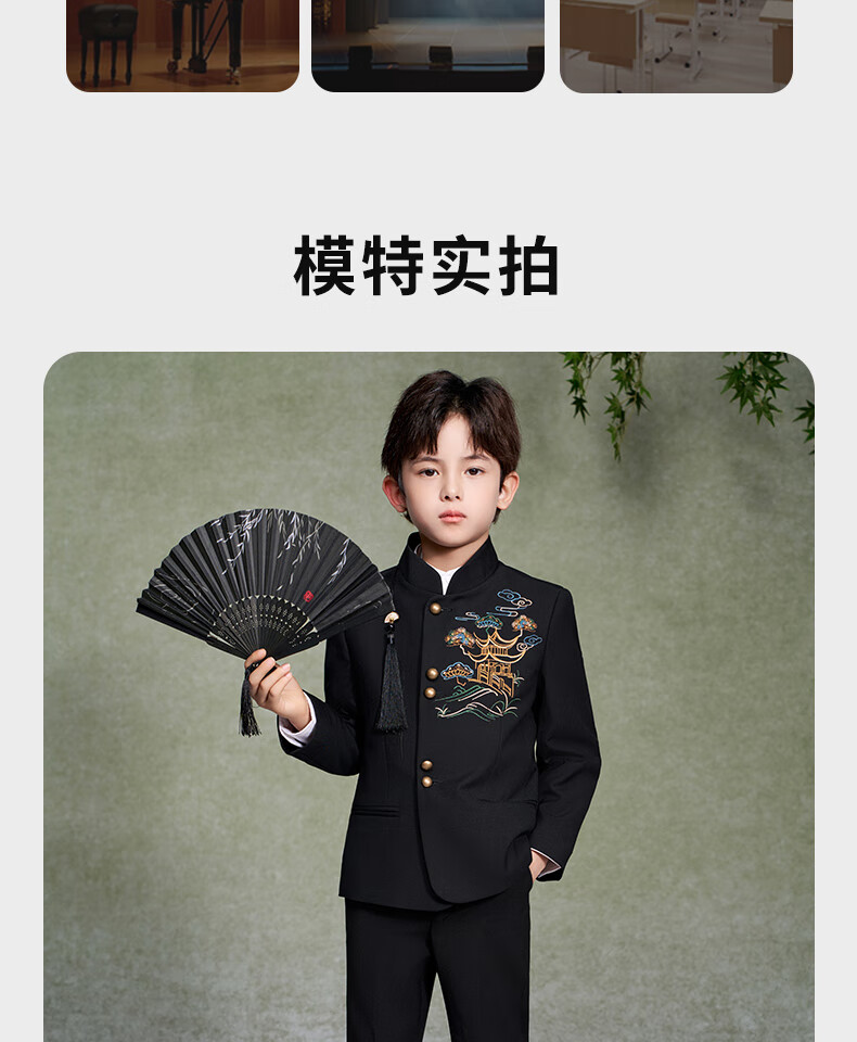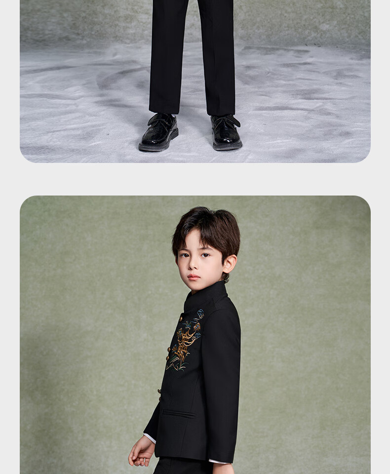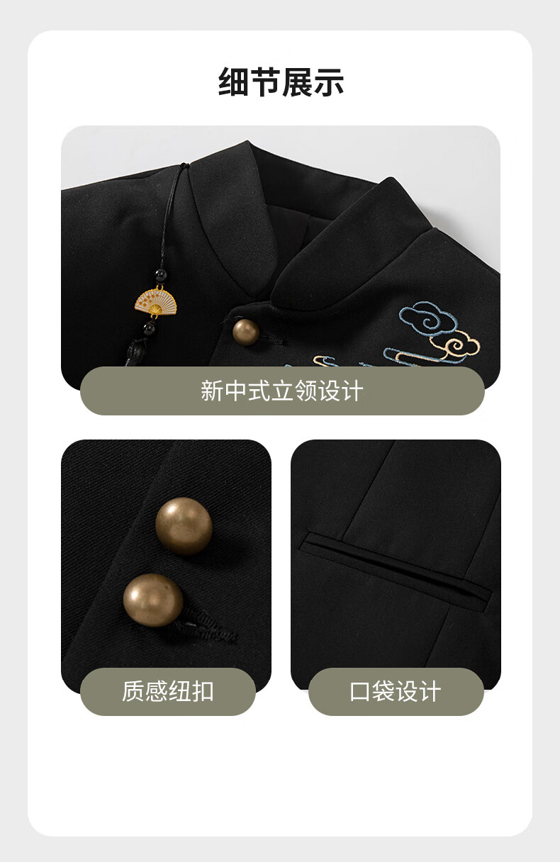 Luo Meng Boys' New Chinese Suit Jacket Tang Suit Chinese Style Tunic Suit Children's Suit Performance Clothing Black 160