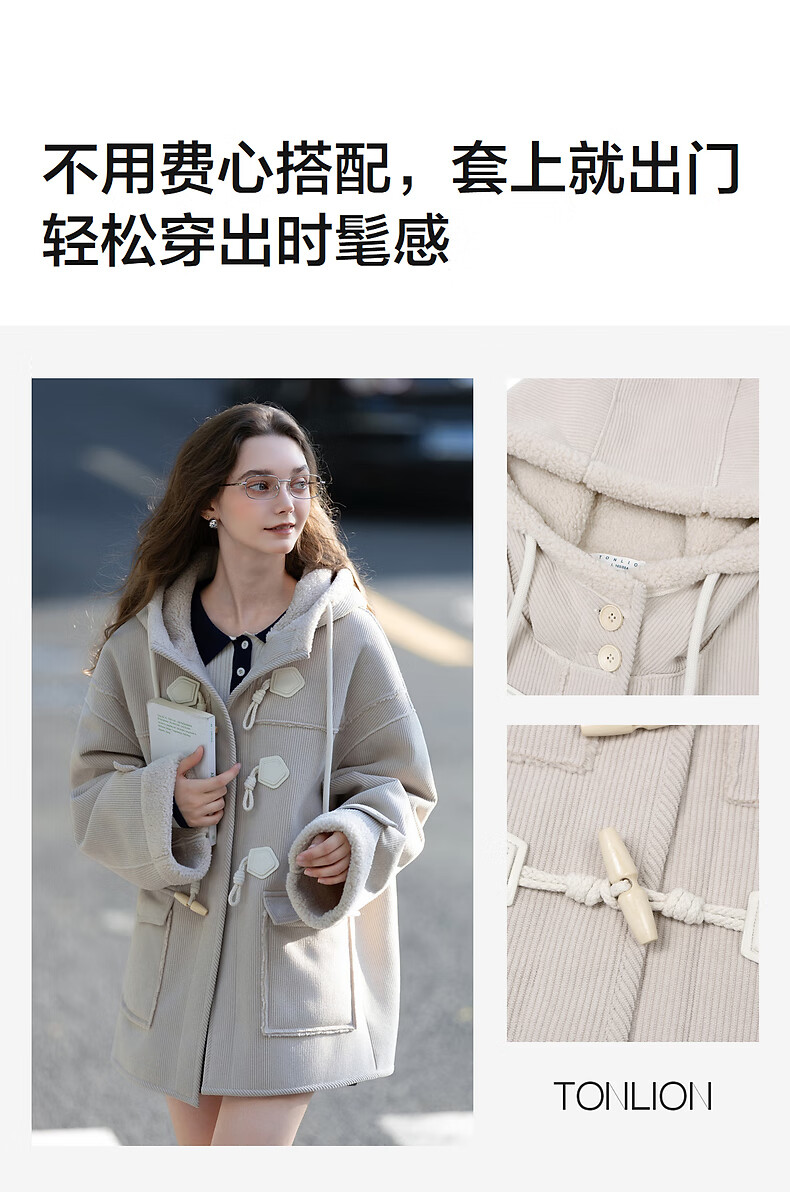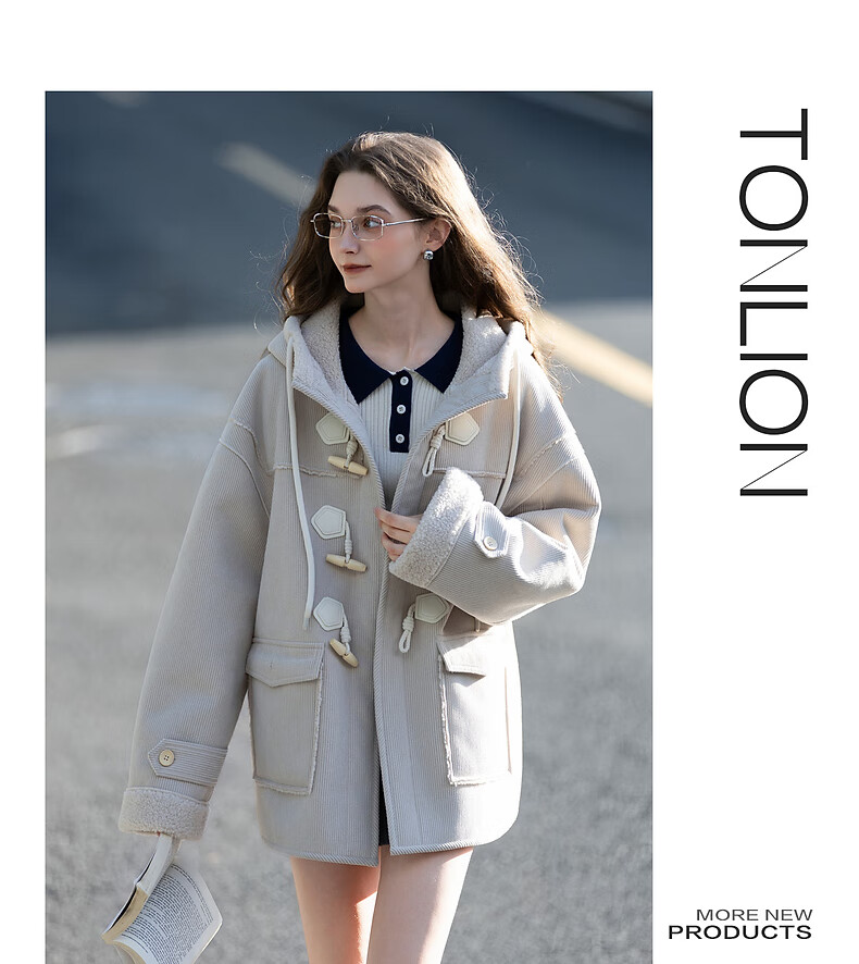 TonLion 2025 winter women's hooded imitation lamb hair composite one-hand length coat