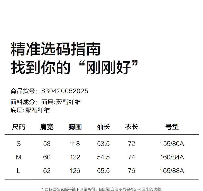 China (cm) 160-165/84-86 165-170 / 88-90 167-172 / 92-96 168-173 / 98-102 170-176 / 106-110