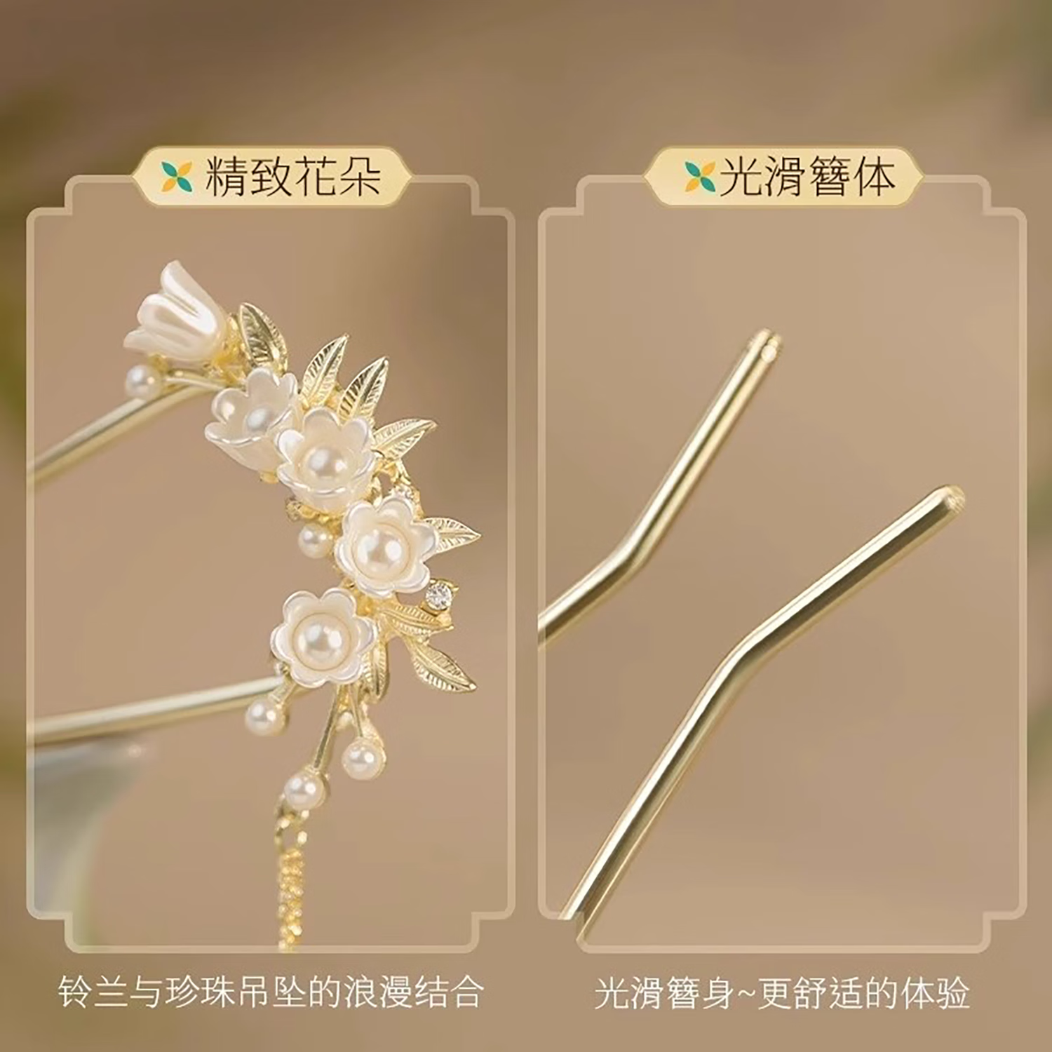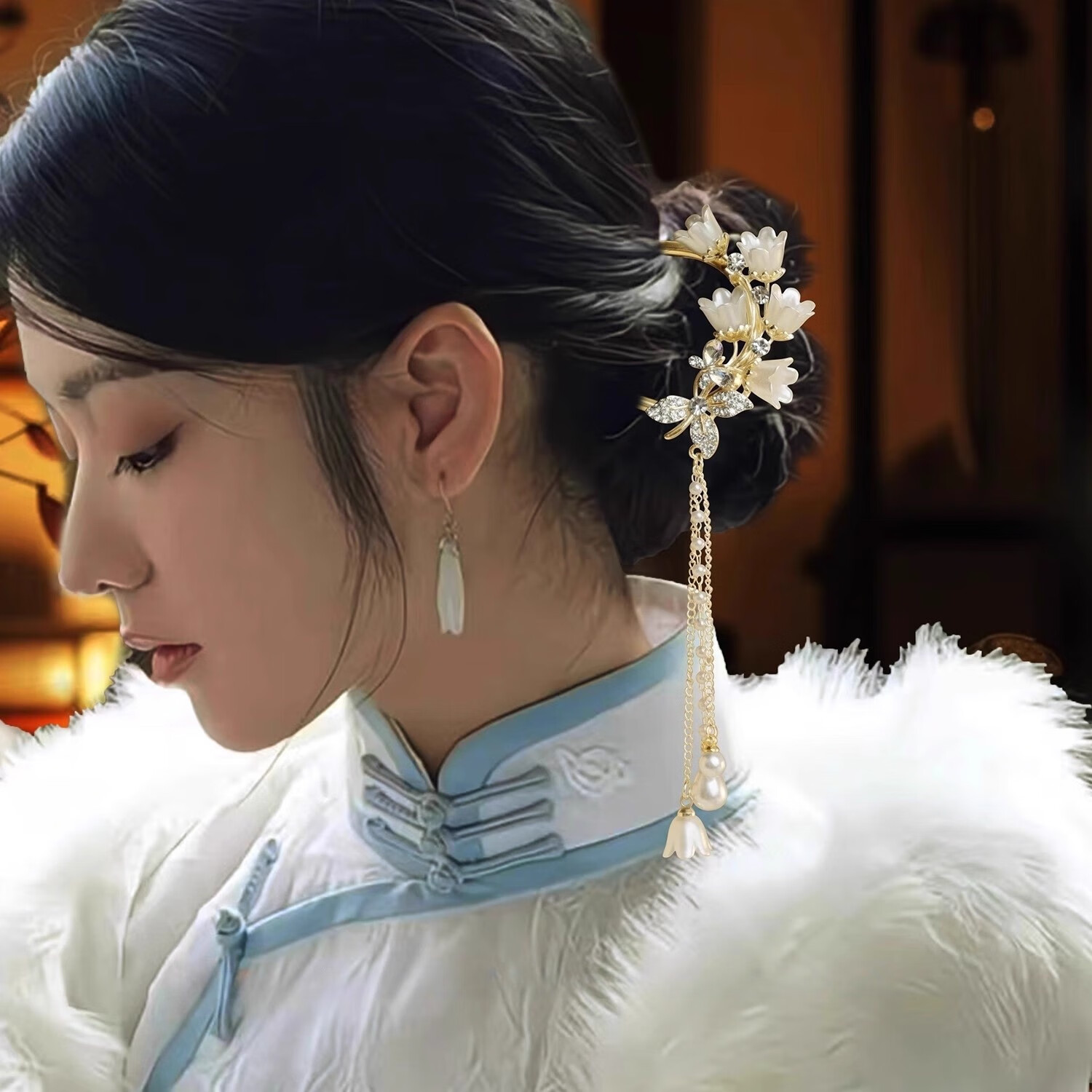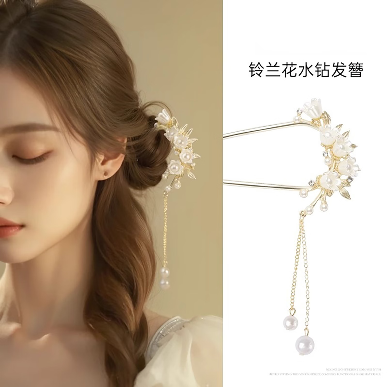 Crystal u-shaped hairpin, tassel hairpin for women, new Chinese style hairpin, ancient style hairpin, ball head, practical hairpin