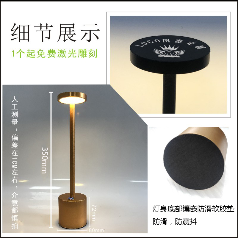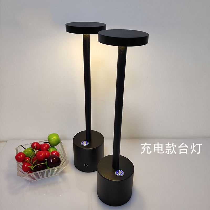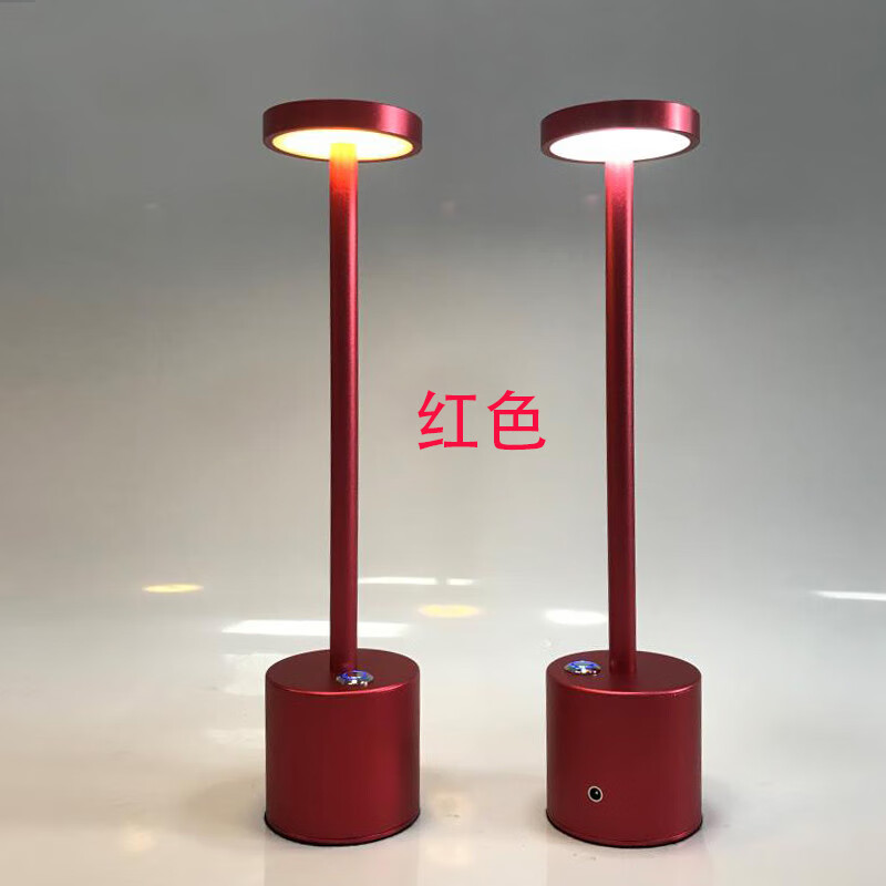 Light luxury high-end creative aluminum alloy KTV bar rechargeable table lamp led cafe restaurant retro nostalgic decorative touch dimming table lamp red button switch