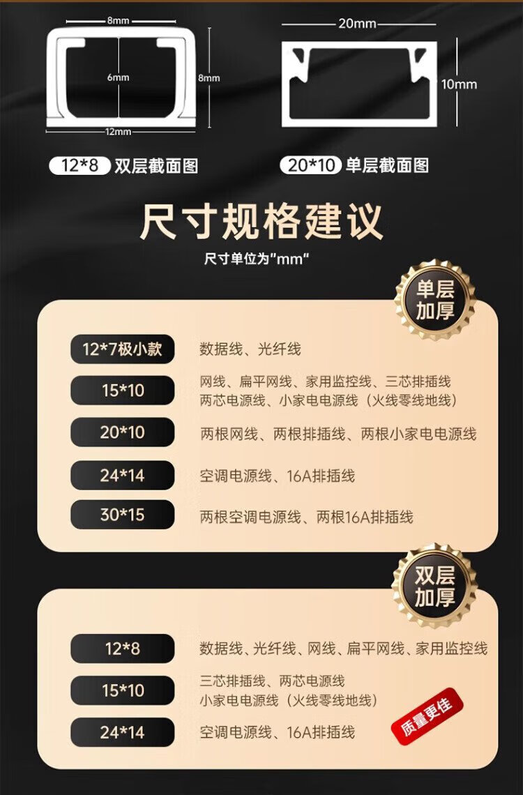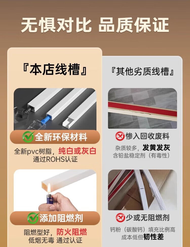 杰仕途 pvc线槽 明装线槽明线走线槽 自粘网线隐藏电线理线槽走线神器 方形线槽20*10mm【5米送6个配件】