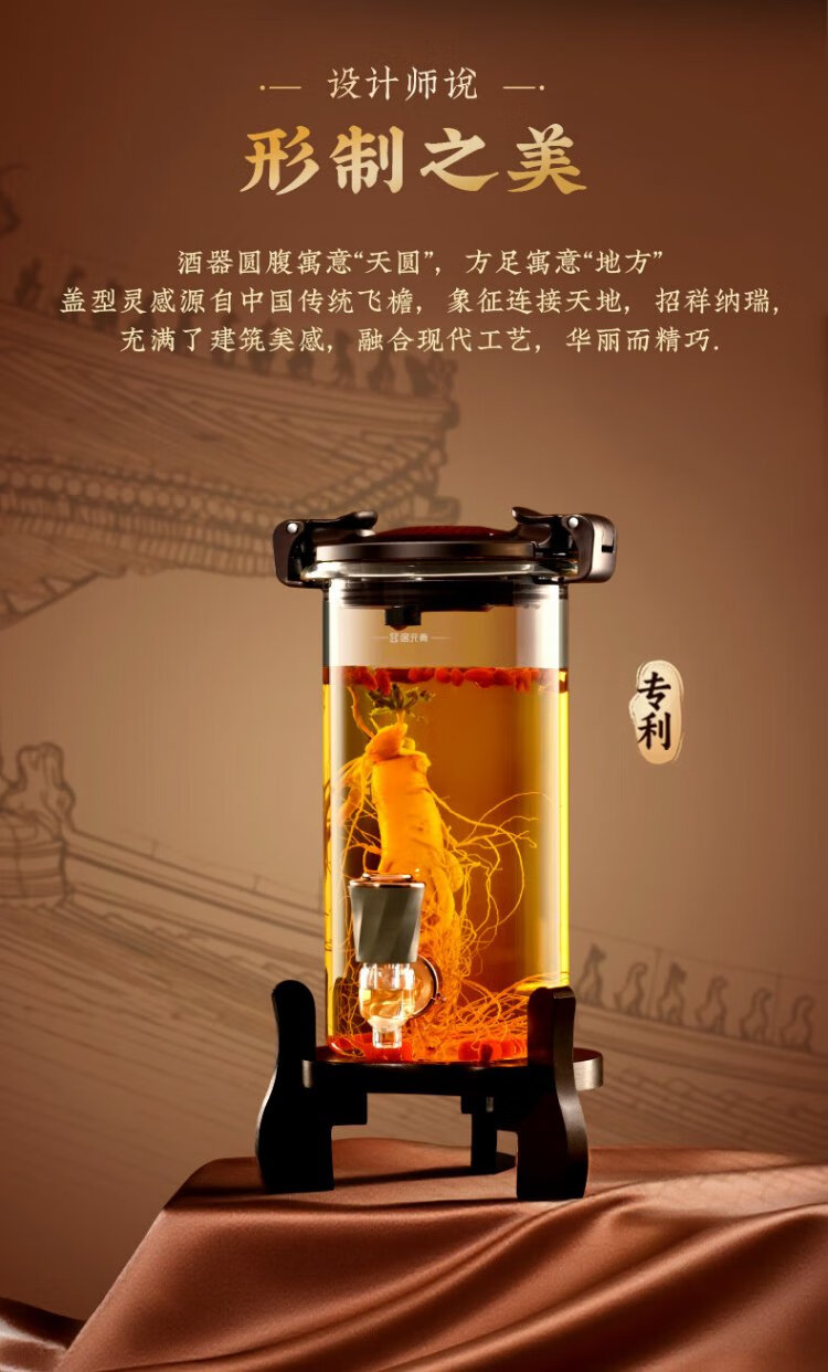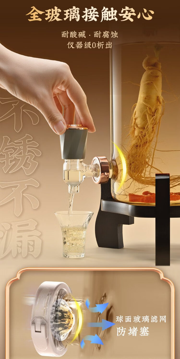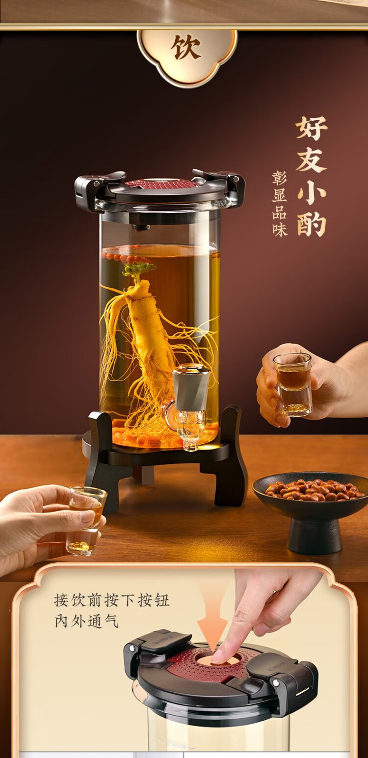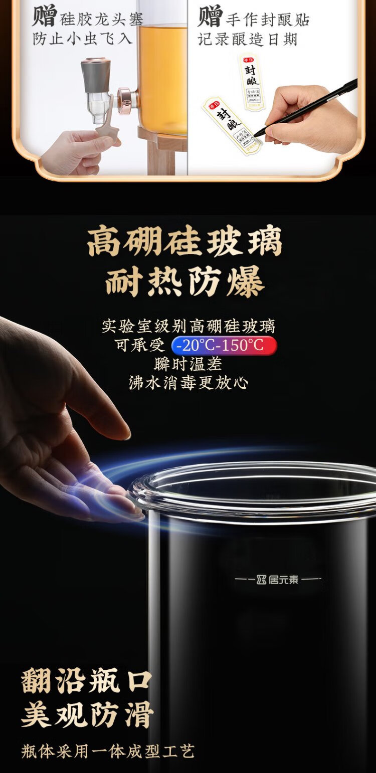 Ju element wine tank high-end thickened glass wine special bottle sealed wine making container glass faucet solid wood base 2.5L