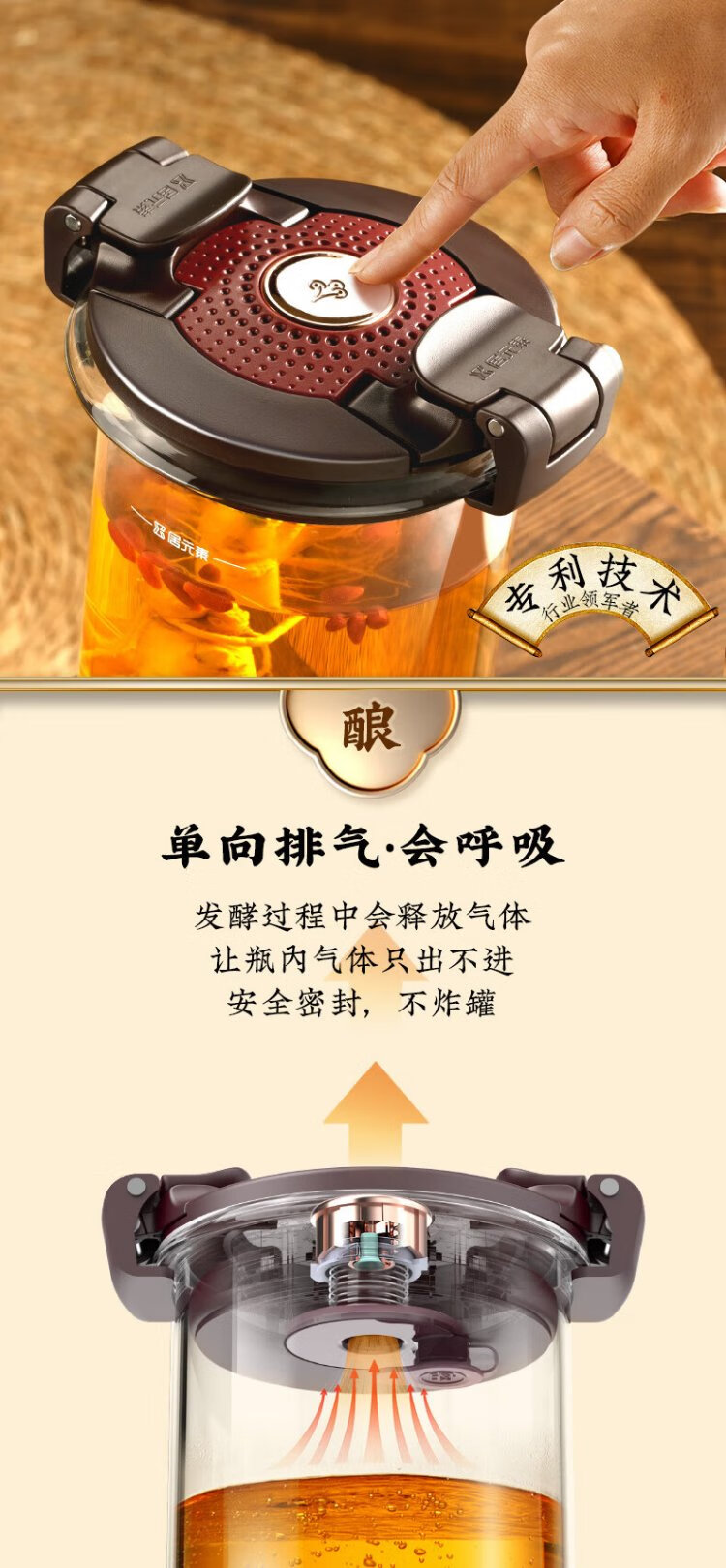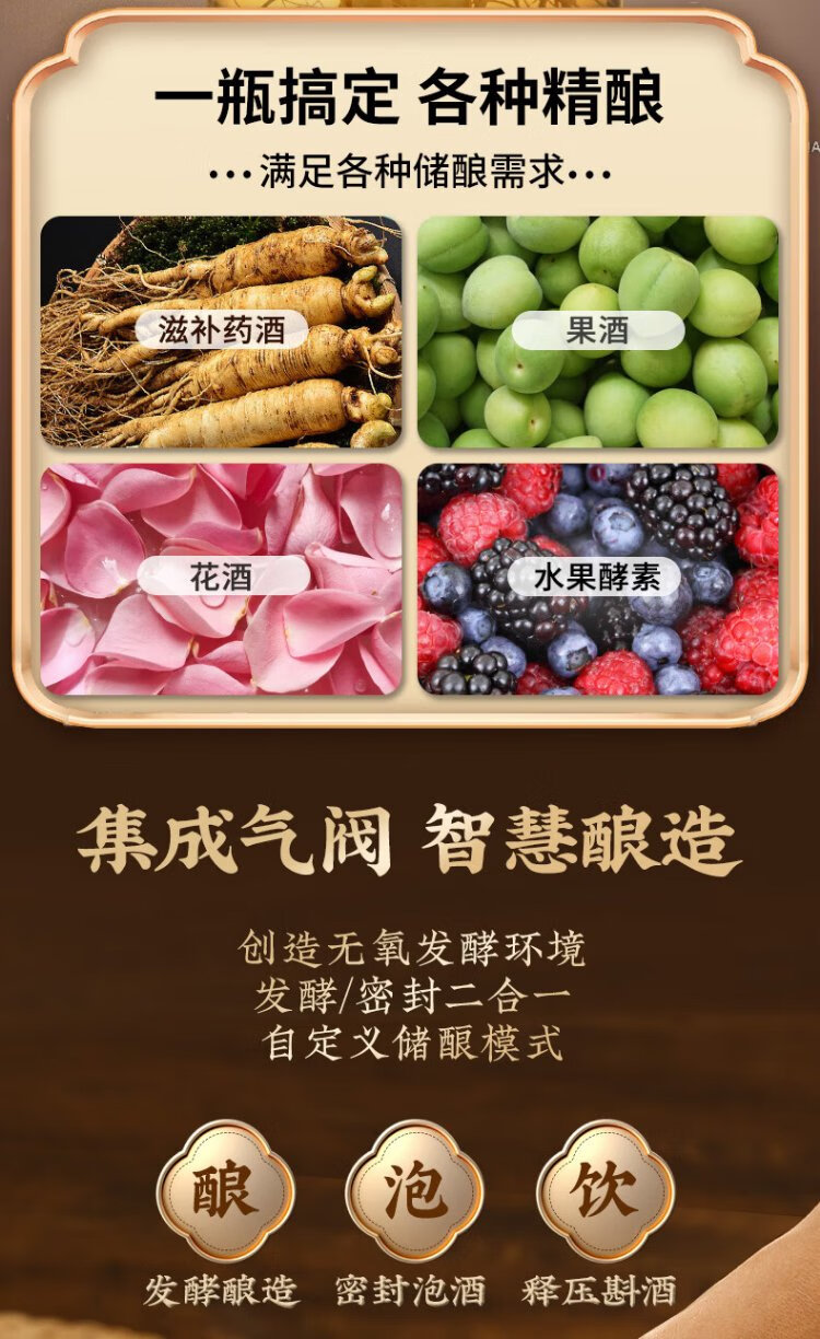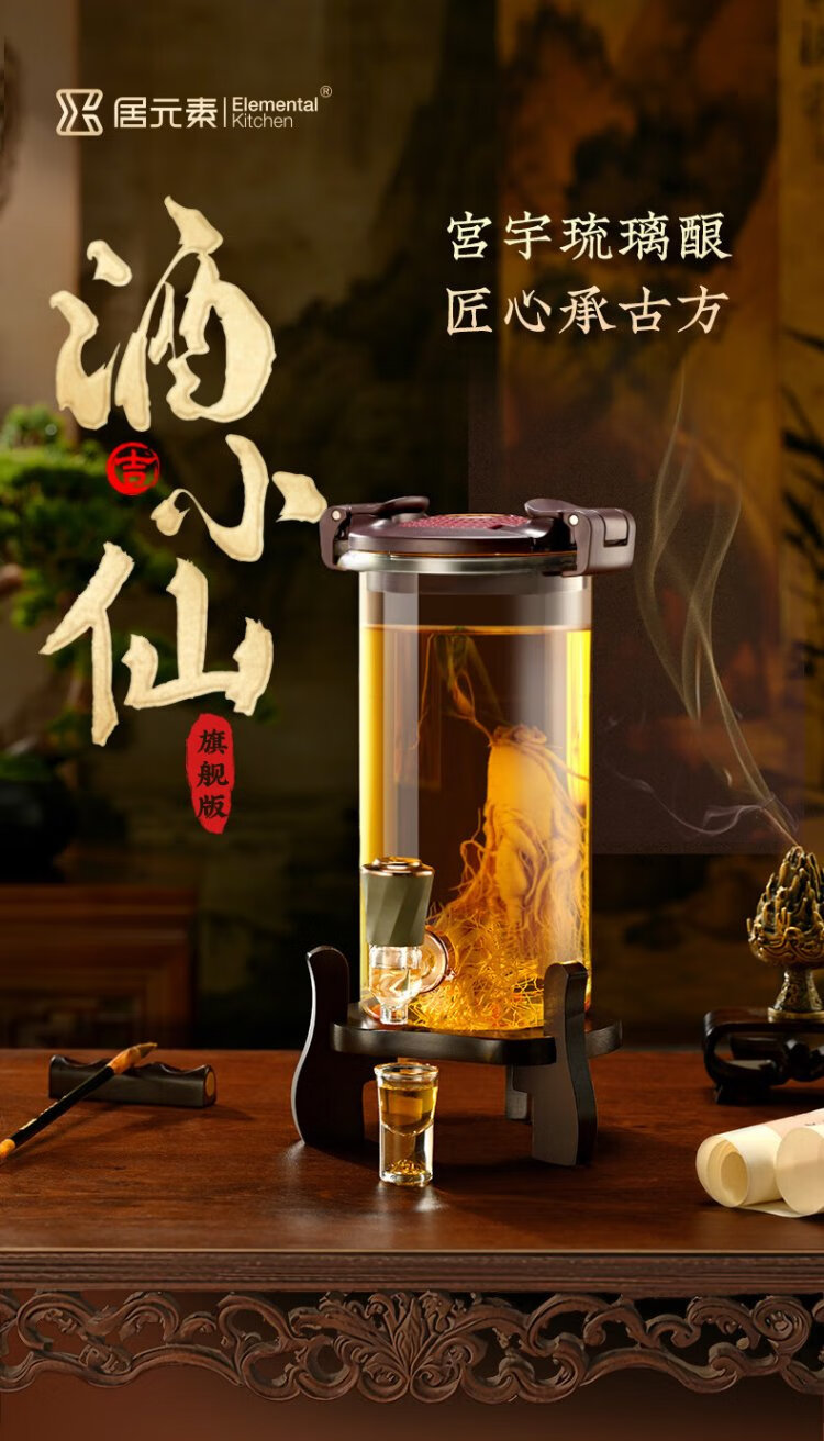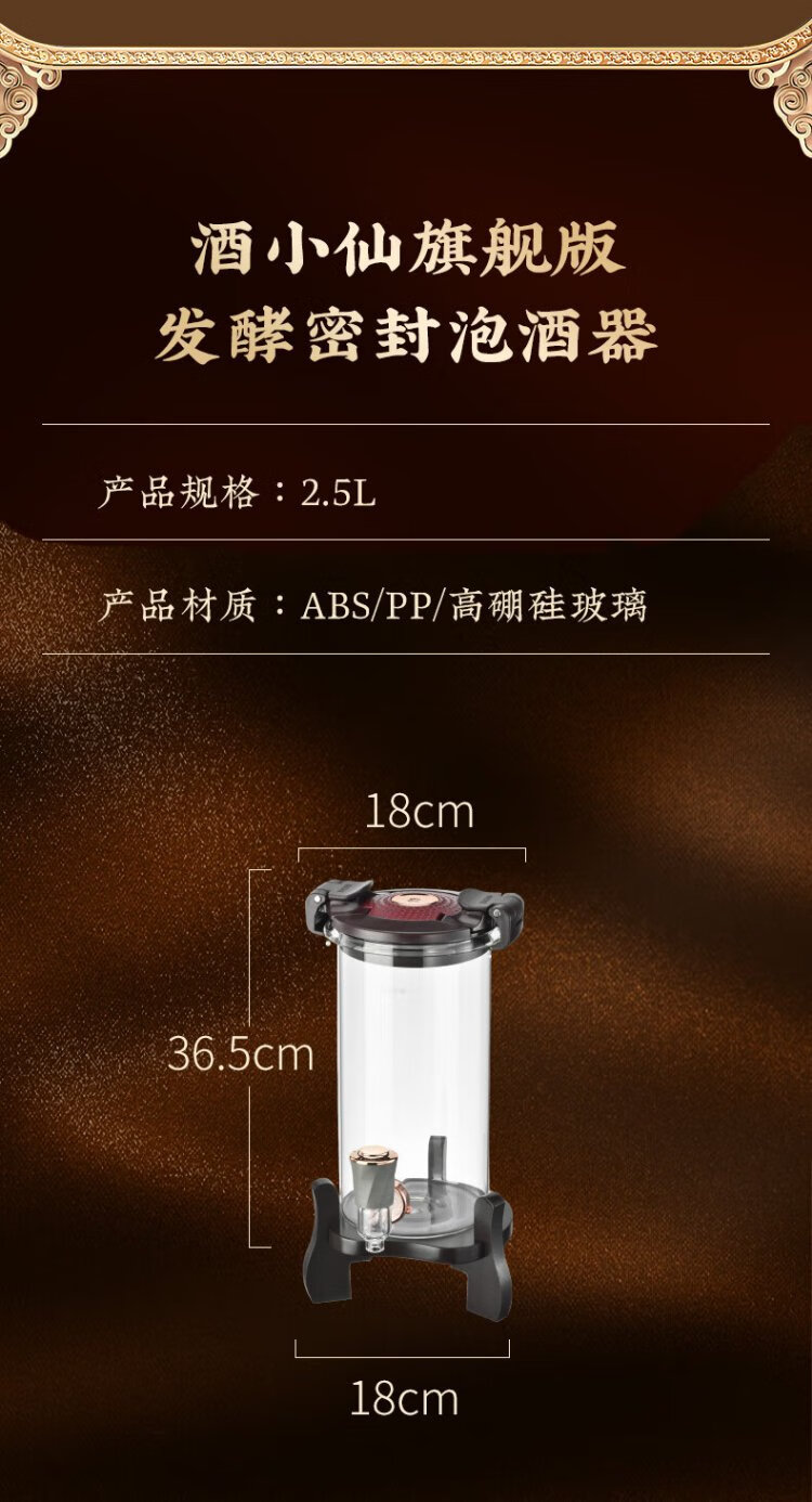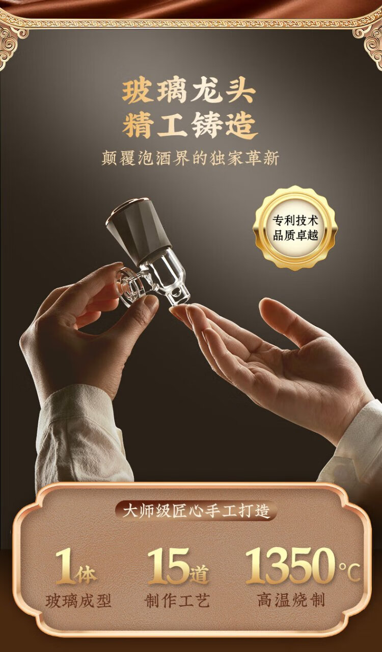 Ju element wine tank high-end thickened glass wine special bottle sealed wine making container glass faucet solid wood base 2.5L