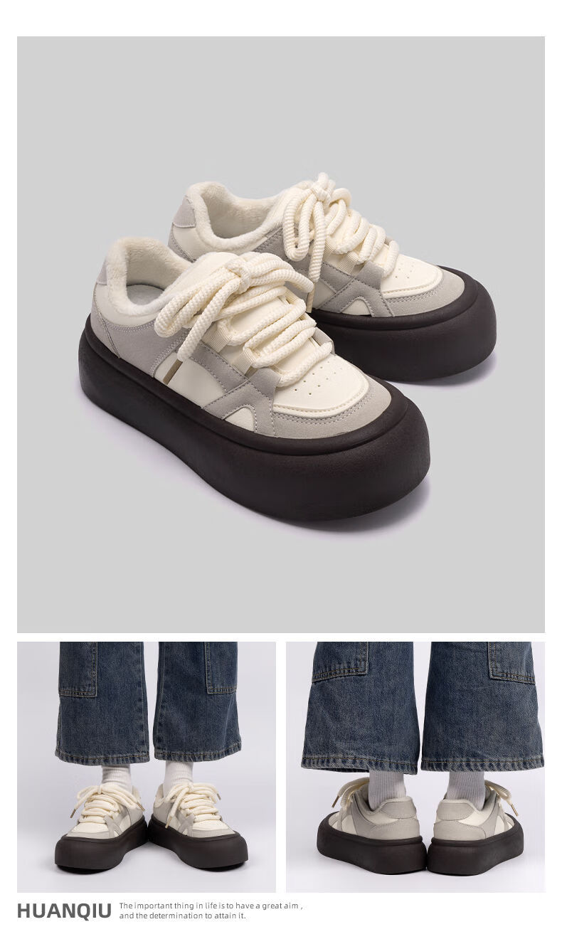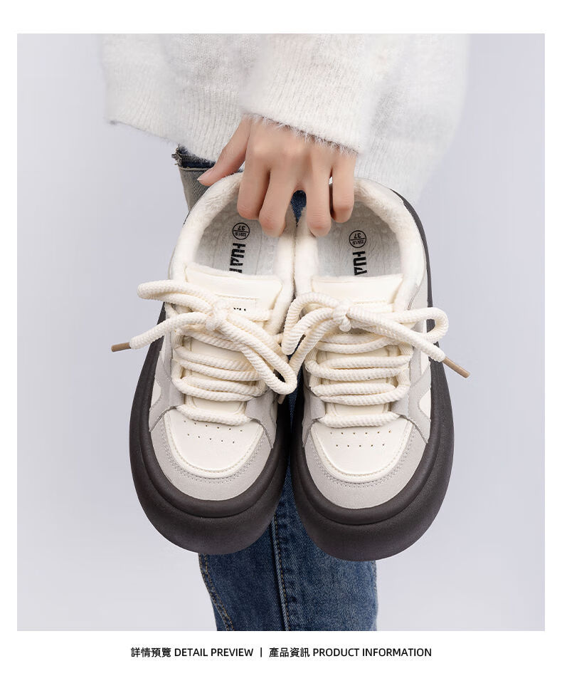 Universal thick-soled cotton shoes, women's white shoes, 2025 winter women's shoes, new velvet shoes, casual popular thickened warm sneakers