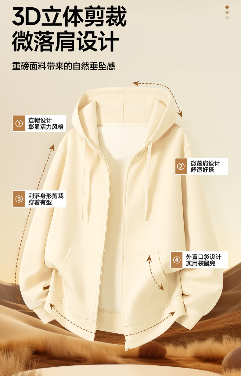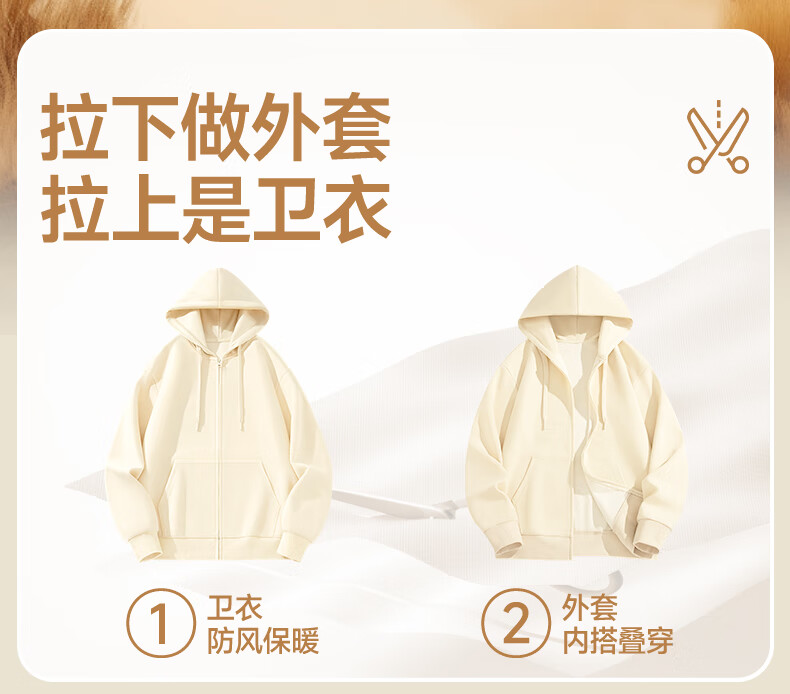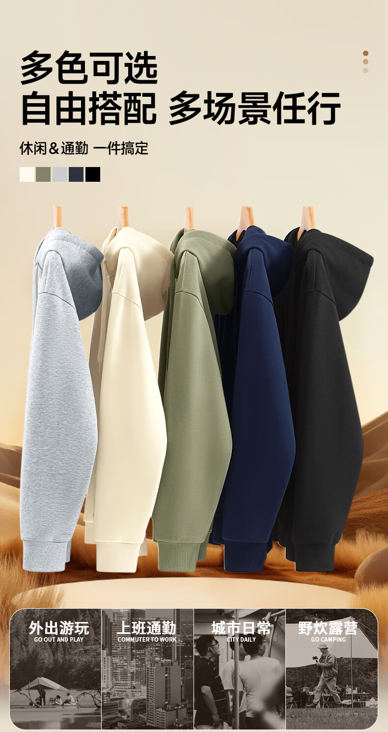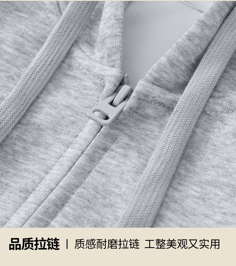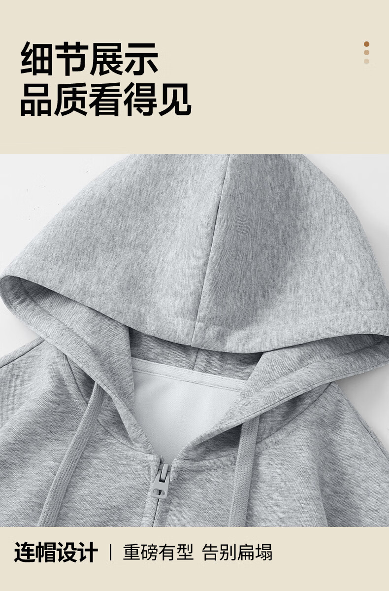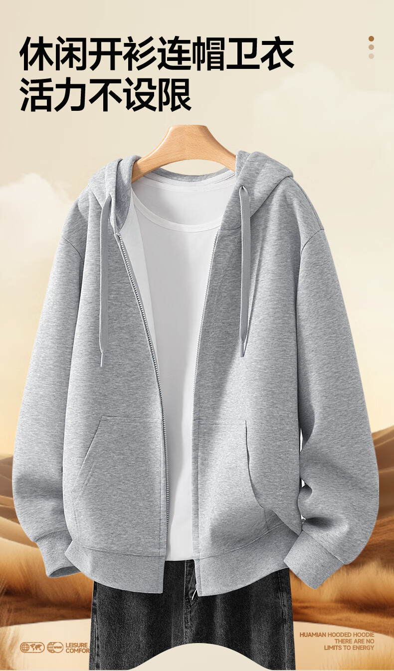 VANCL sweatshirt men's autumn loose heavy Chinese cotton cardigan men's large size casual hooded jacket hemp gray 2XL
