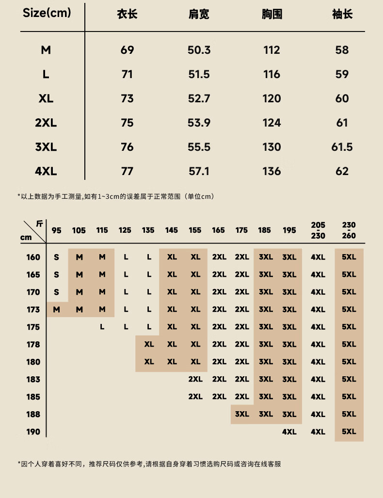 China (cm) 160-165/84-86 165-170 / 88-90 167-172 / 92-96 168-173 / 98-102 170-176 / 106-110