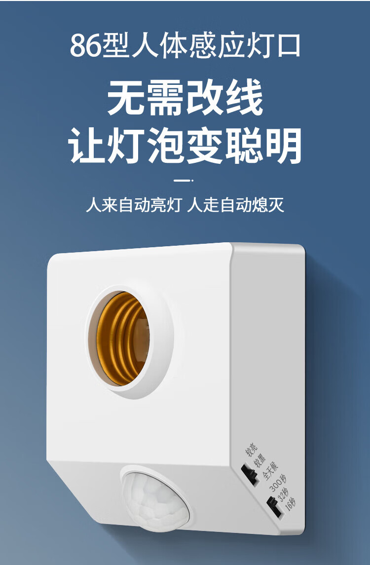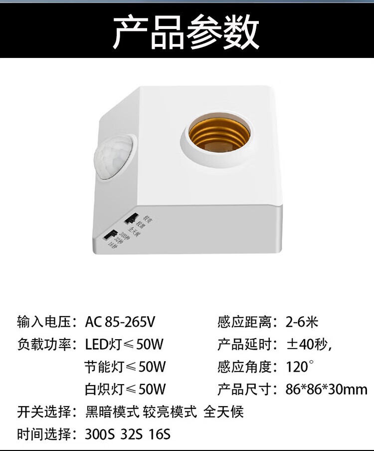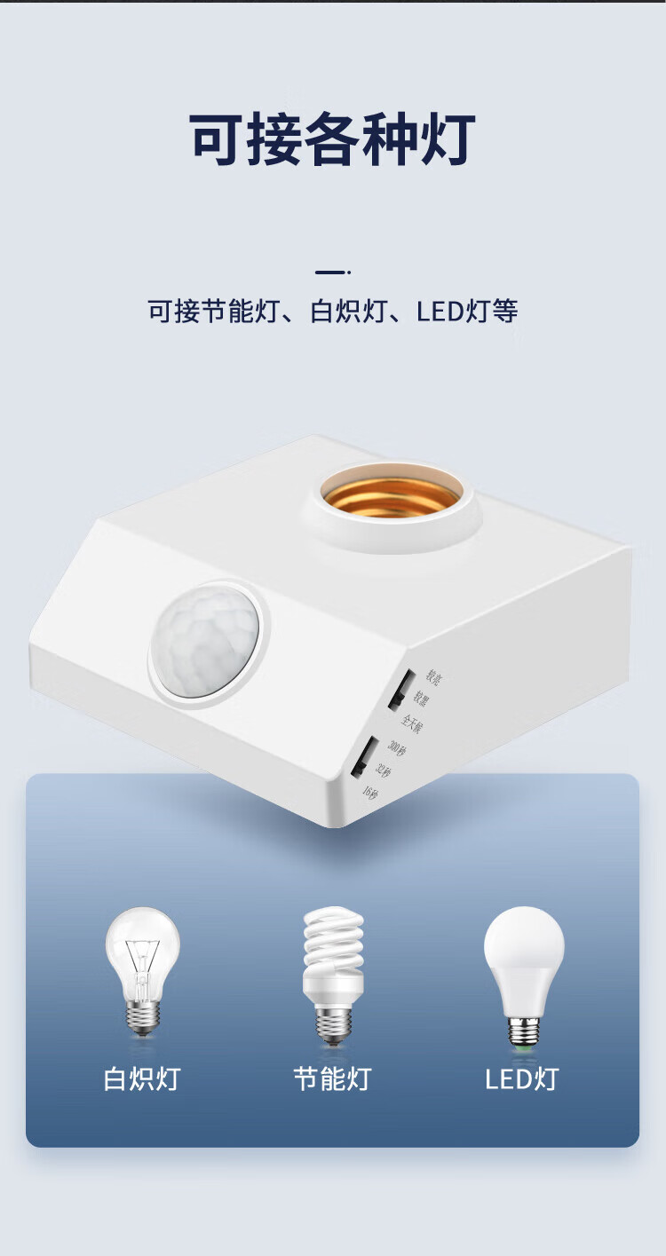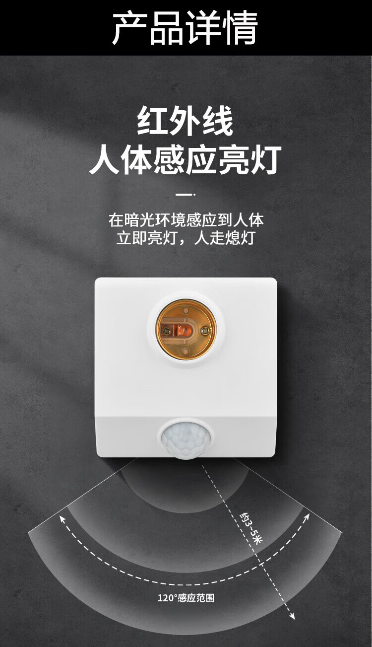 Gongtai infrared human body sensor lamp socket E27 screw socket 220V corridor corridor delay energy-saving lamp head switch round lamp holder GT-RT-E27