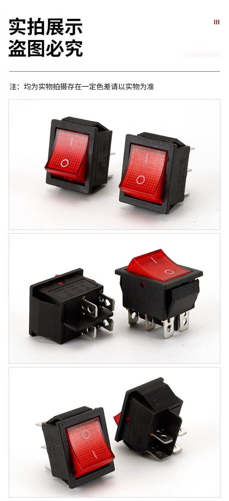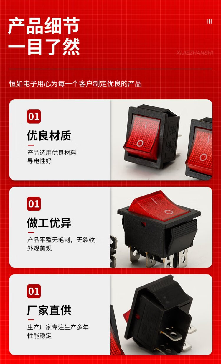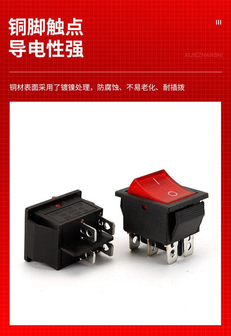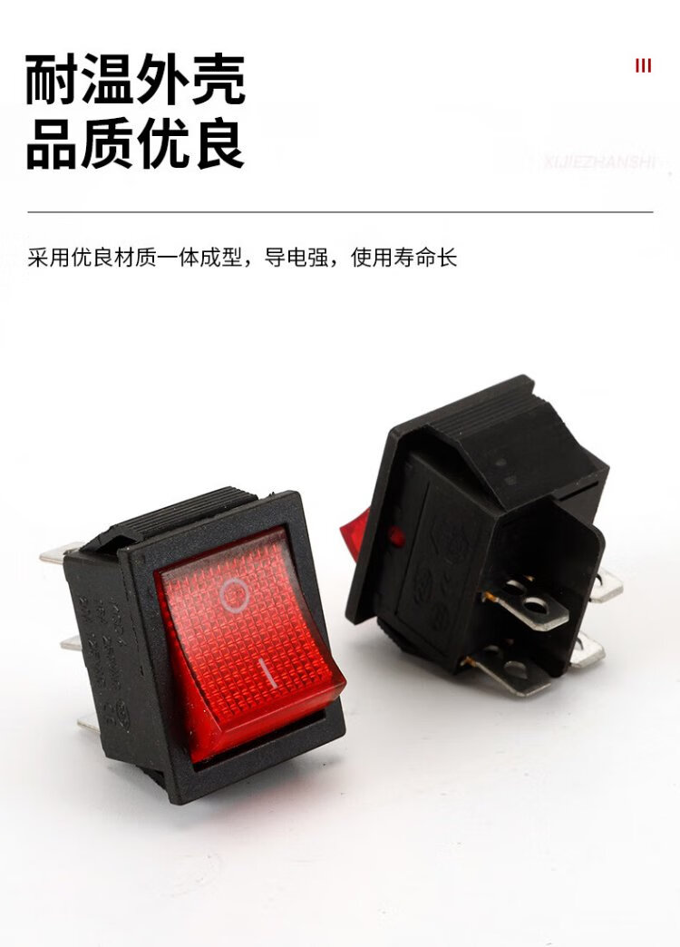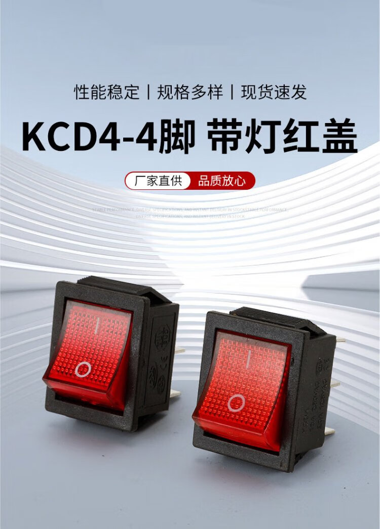 Tianshili KCD4 boat-shaped industrial switch 4-pin with light small rocker power push switch industrial equipment switch KCD4-4-pin with light red cover (5 pieces)