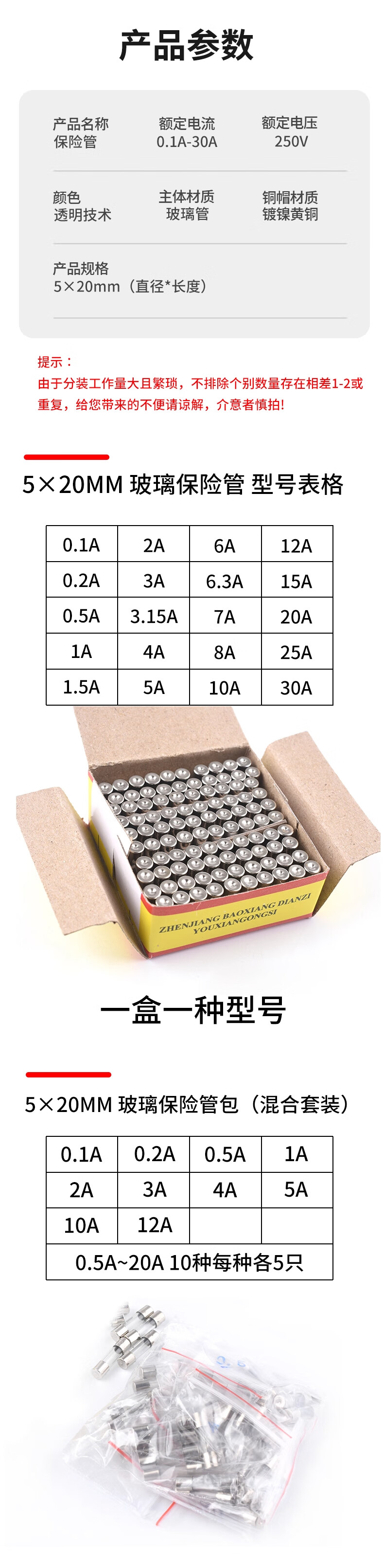 ZAVE fuse glass fuse 6*30mm 10A (100 pieces/box)